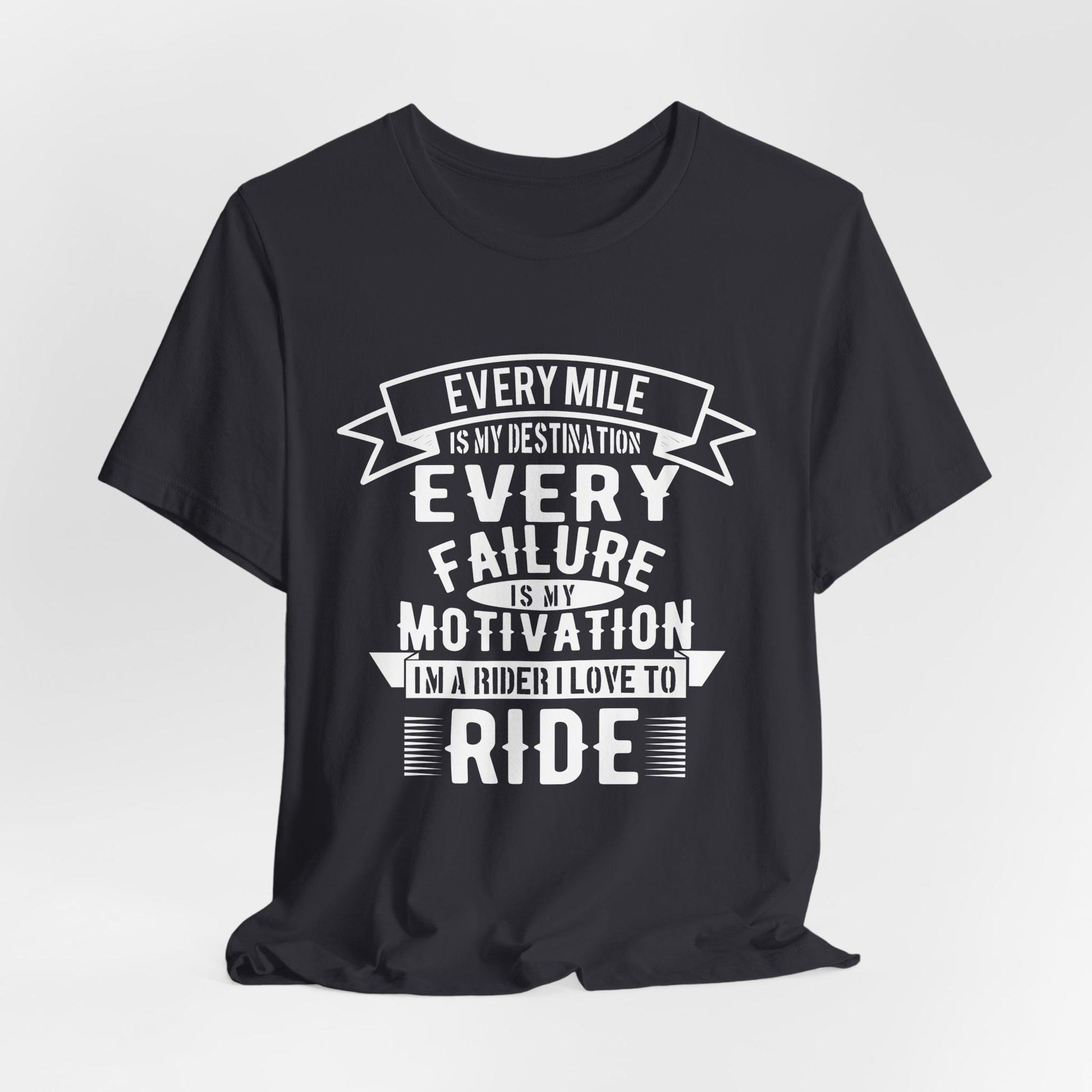 Embrace the journey with the Every Mile is My Destination, Every Failure is My Motivation, I'm a Rider, I Love to Ride tee. Order yours today and wear your passion for riding proudly!