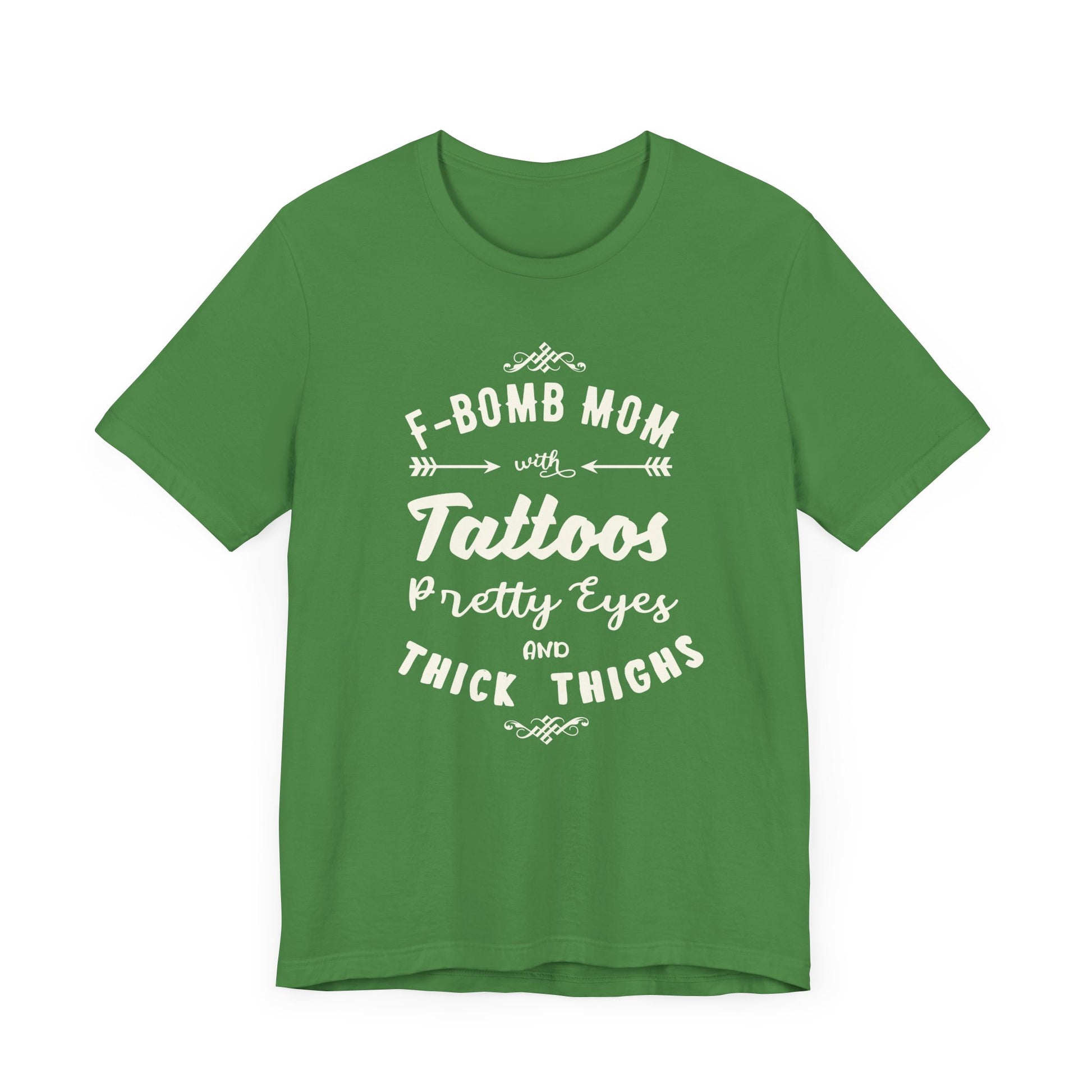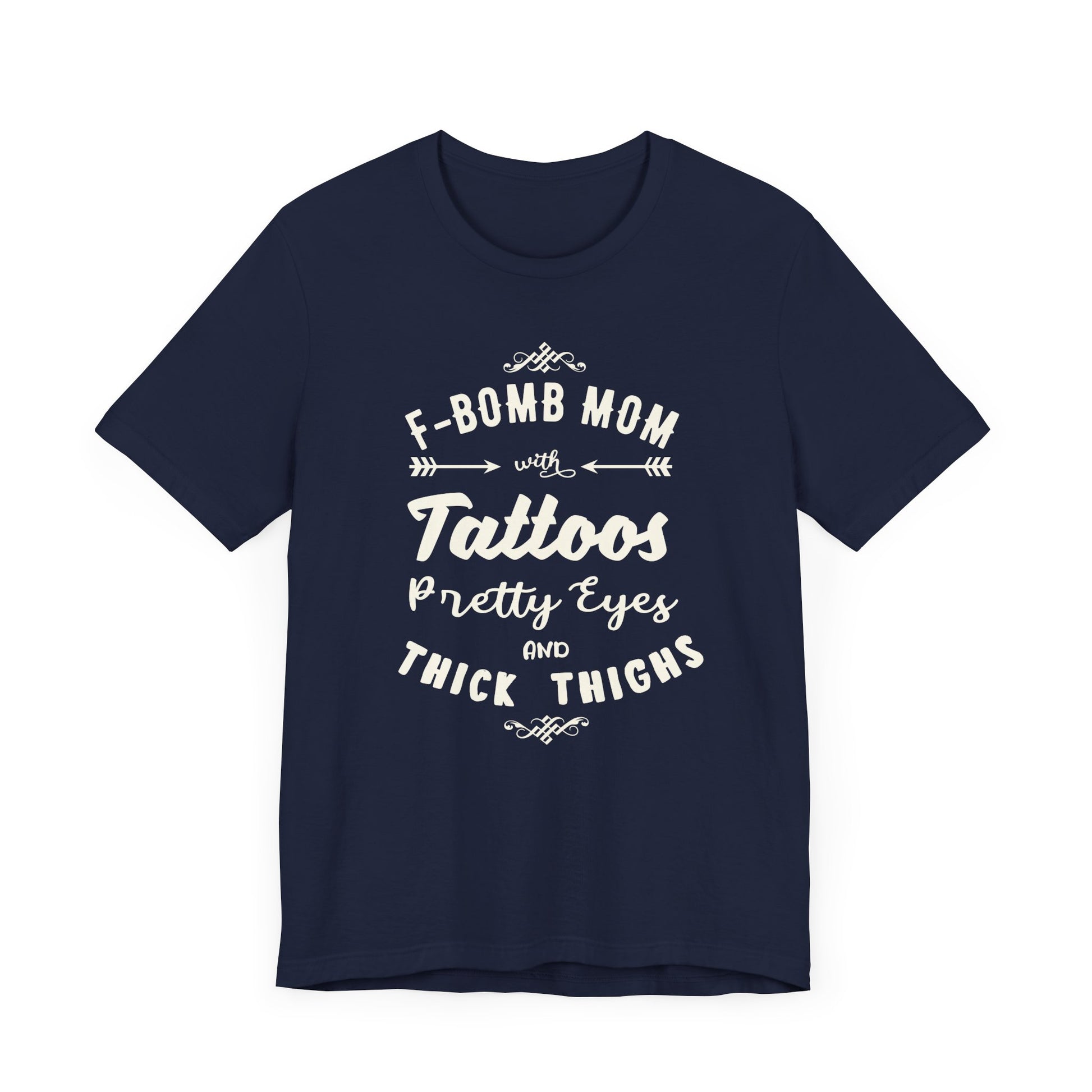 F-Bomb Mom, Tattoos, Pretty Eyes & Think Thighs - Unisex Jersey Short Sleeve Tee - 12979
