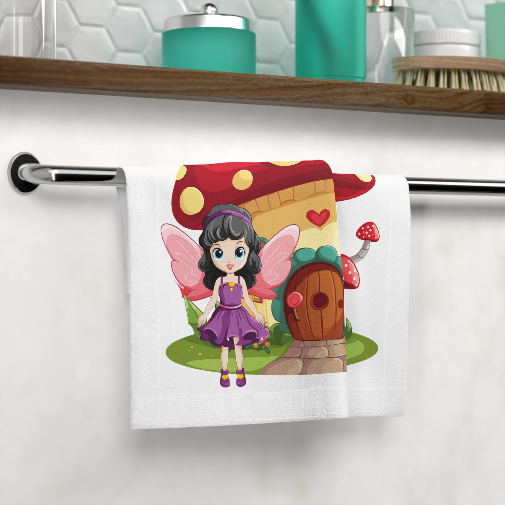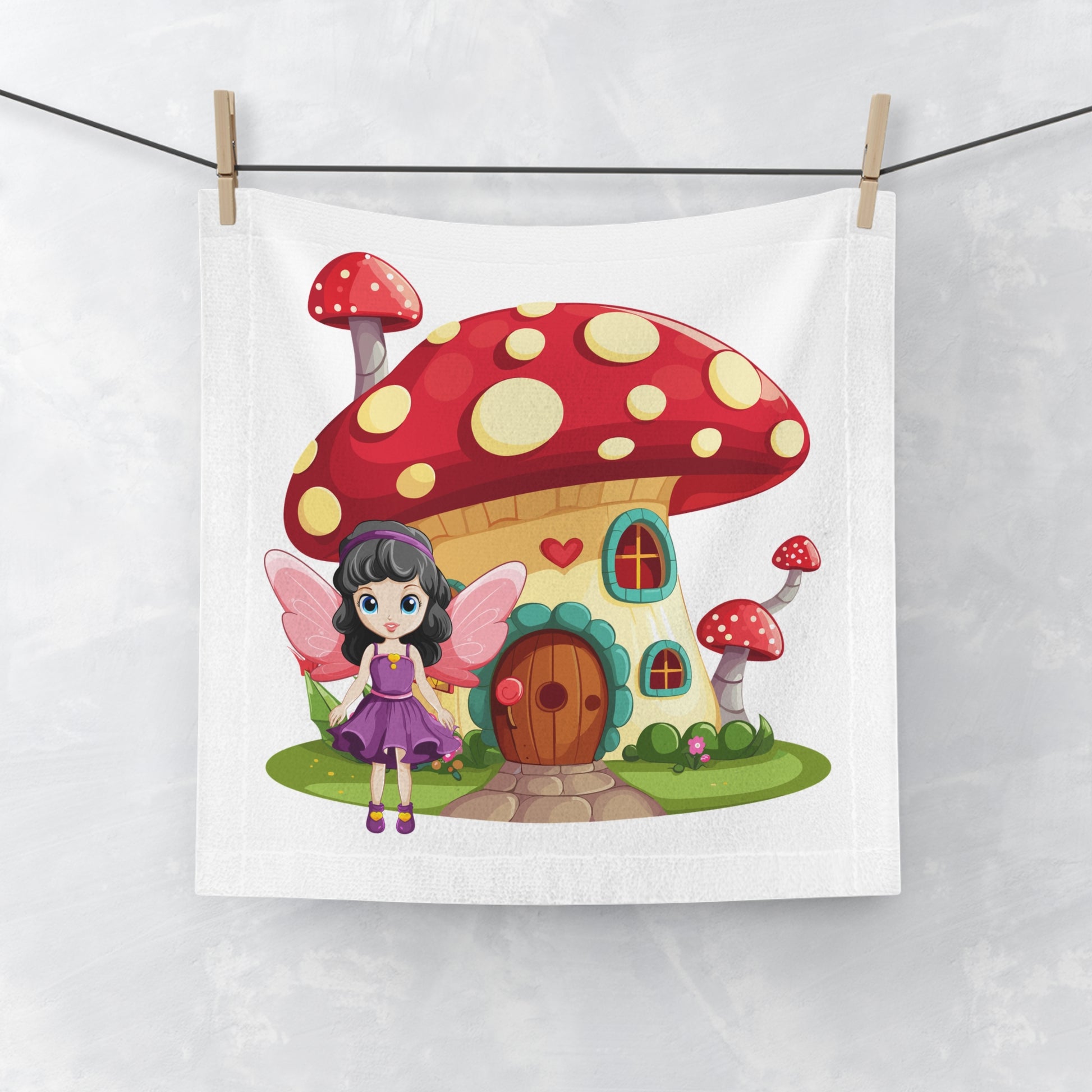 - Whimsical Design: Adorned with a delightful illustration of a fairy mushroom house, this towel brings a touch of fantasy and charm to your everyday essentials.
