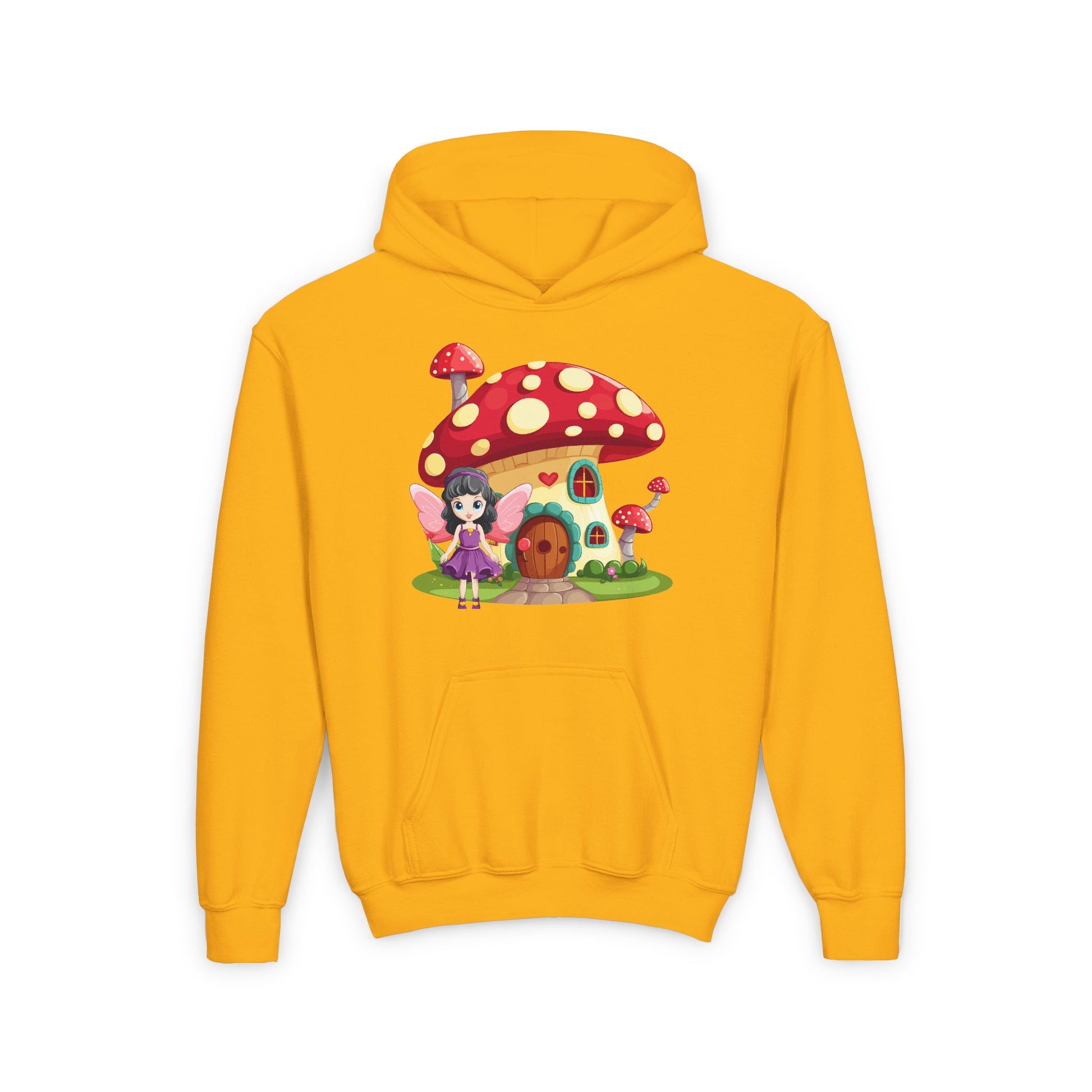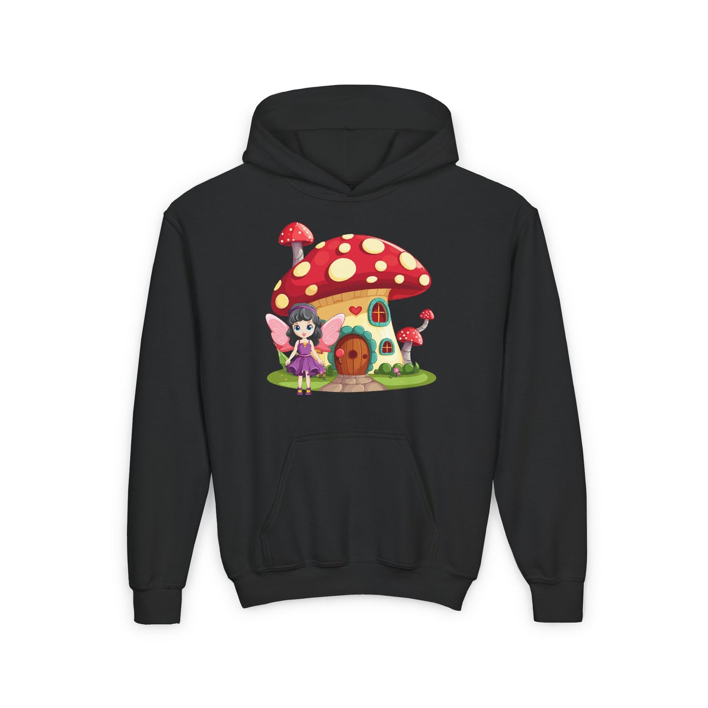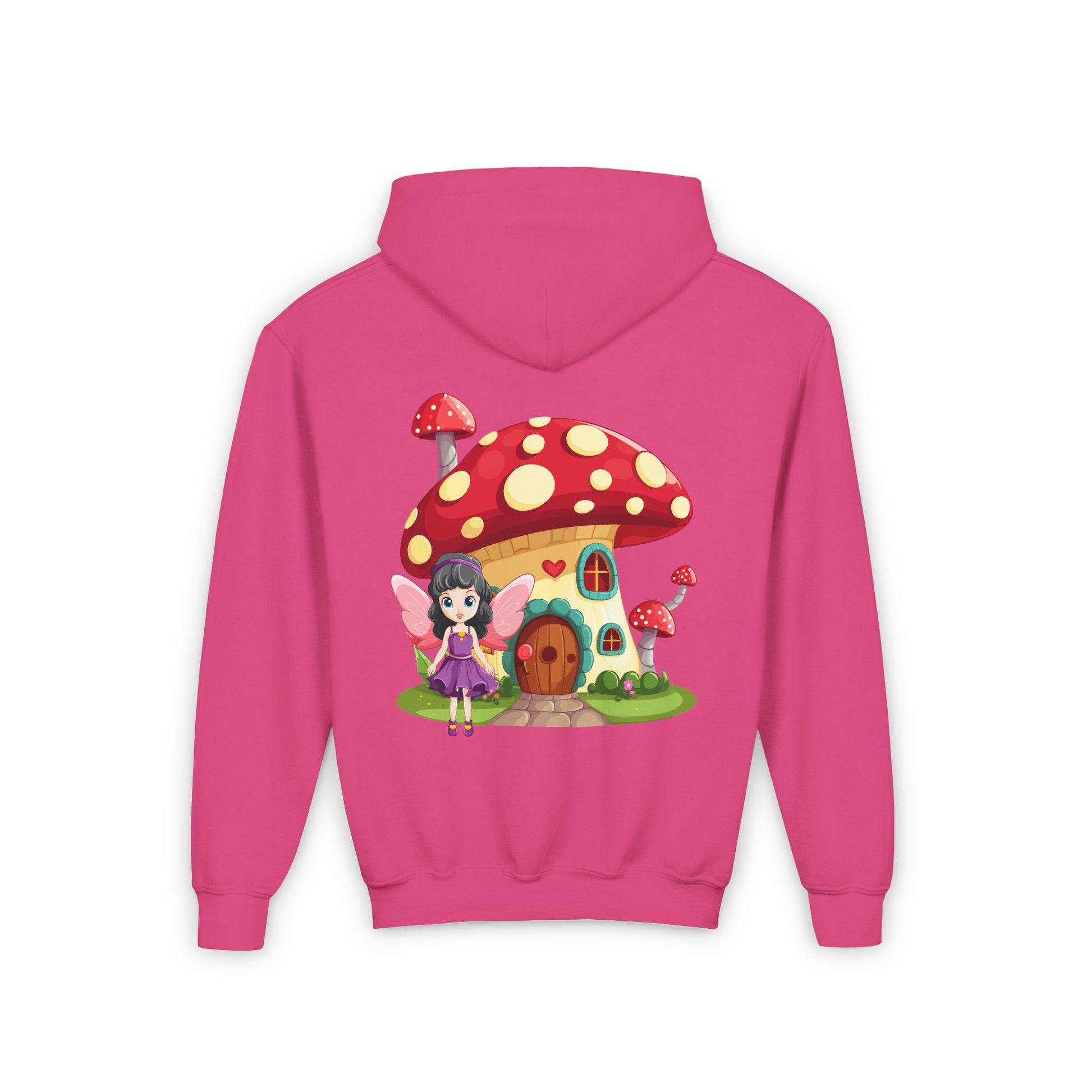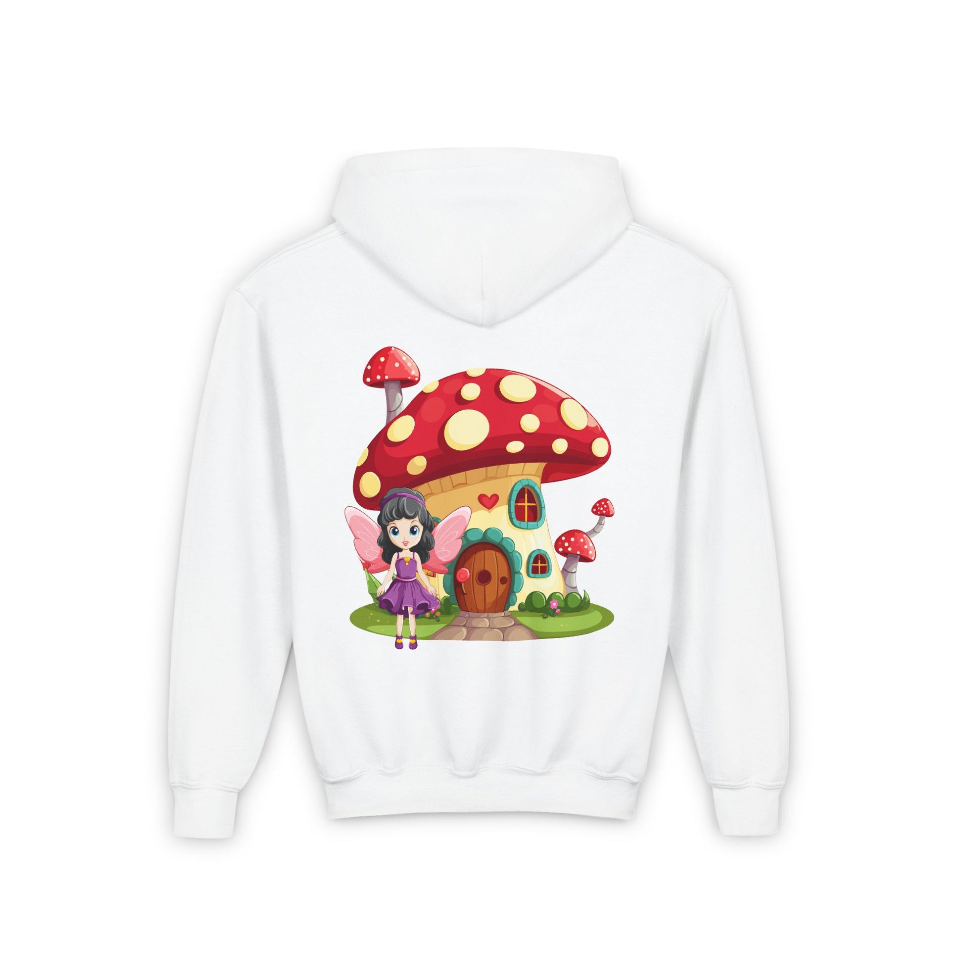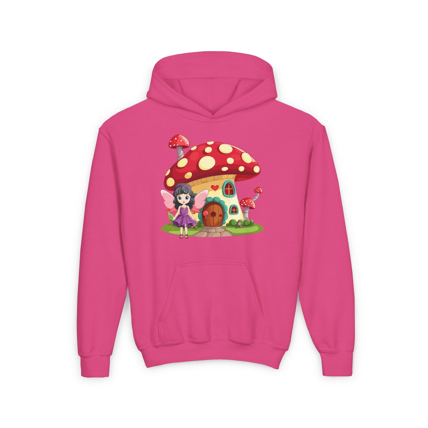Step into a world of magic with the Fairy Mushroom House Youth Heavy Blend Hooded Sweatshirt. This cozy hoodie features a whimsical fairy mushroom house nestled in an enchanted forest, sparking the imagination of every young dreamer. Perfect for chilly days, it’s designed to keep kids warm and comfortable while adding a touch of fairy-tale charm to their wardrobe.