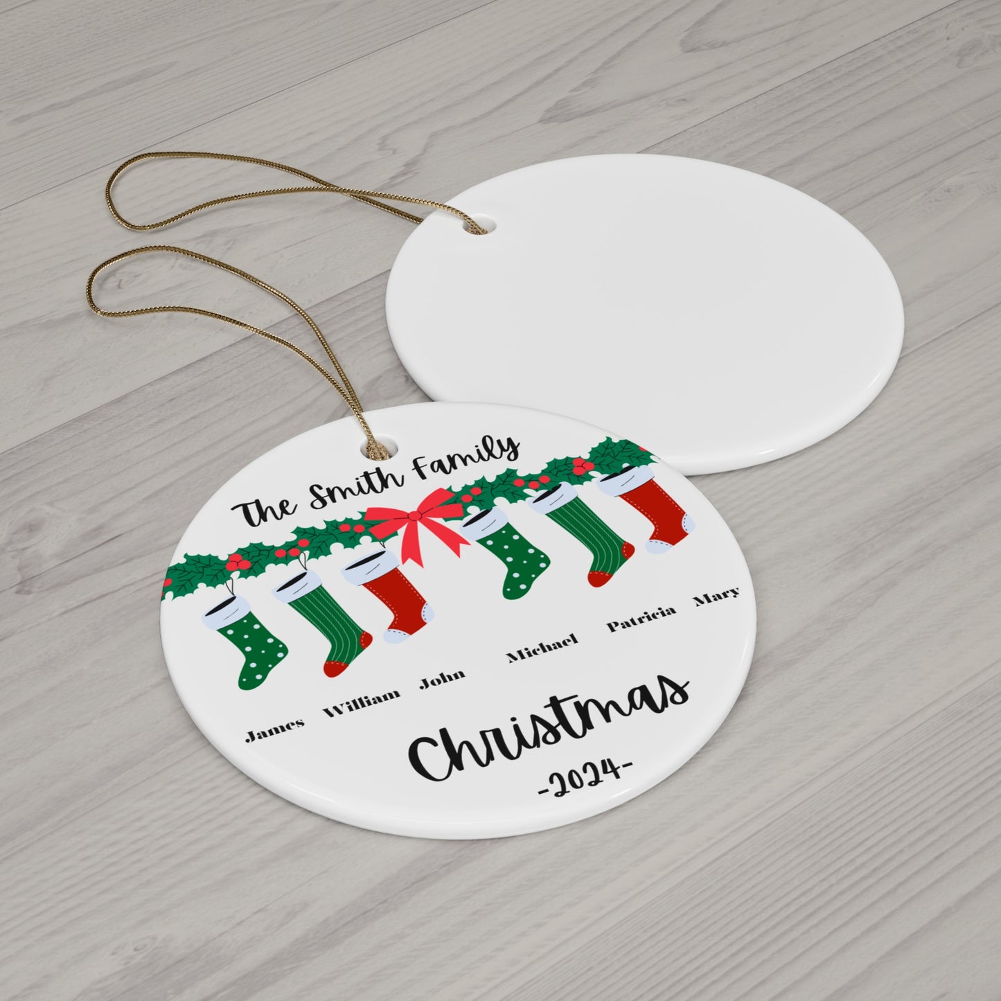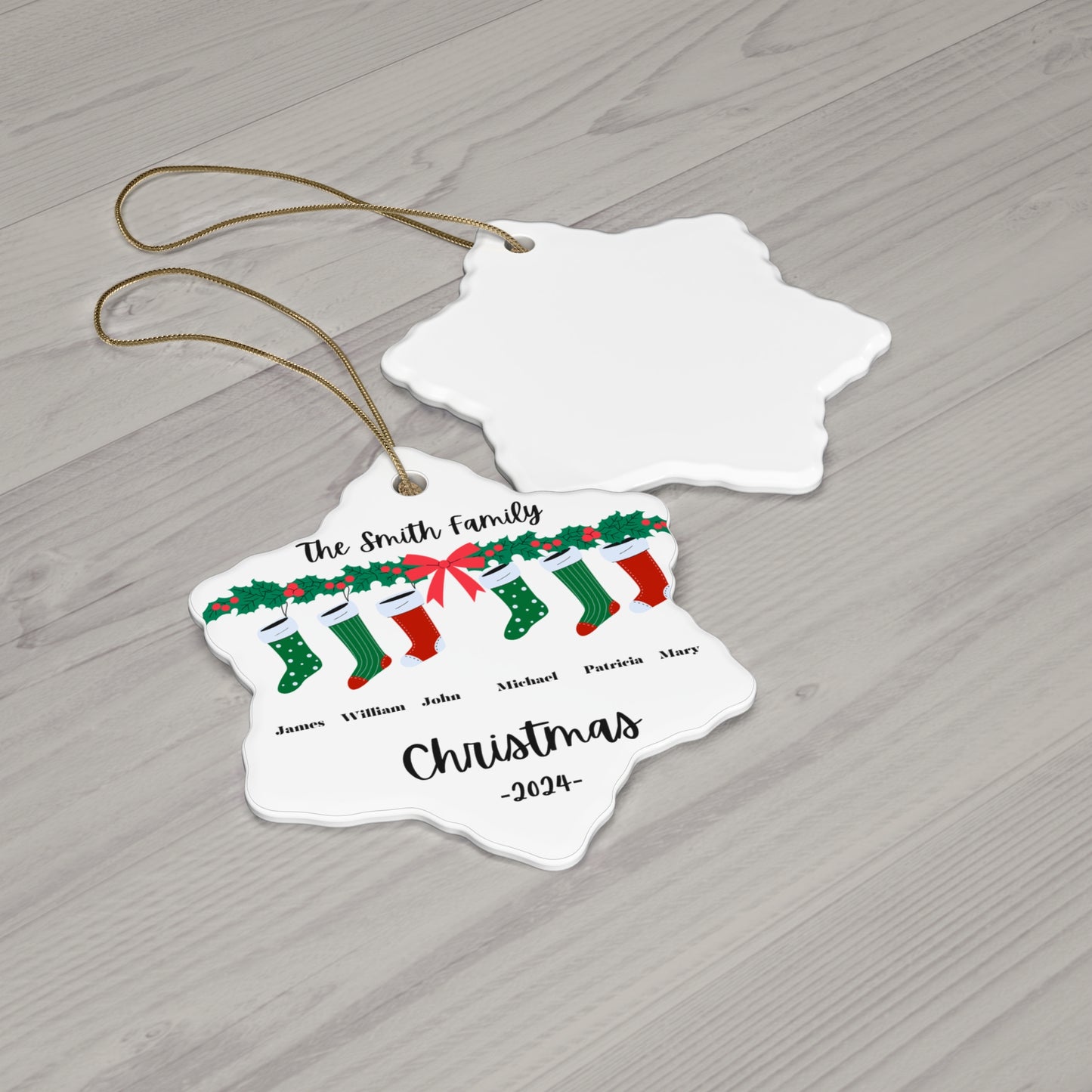 Stockings, Family of 6 - Ceramic Ornament, 2 Shapes, Circle & Snowflake - 10092