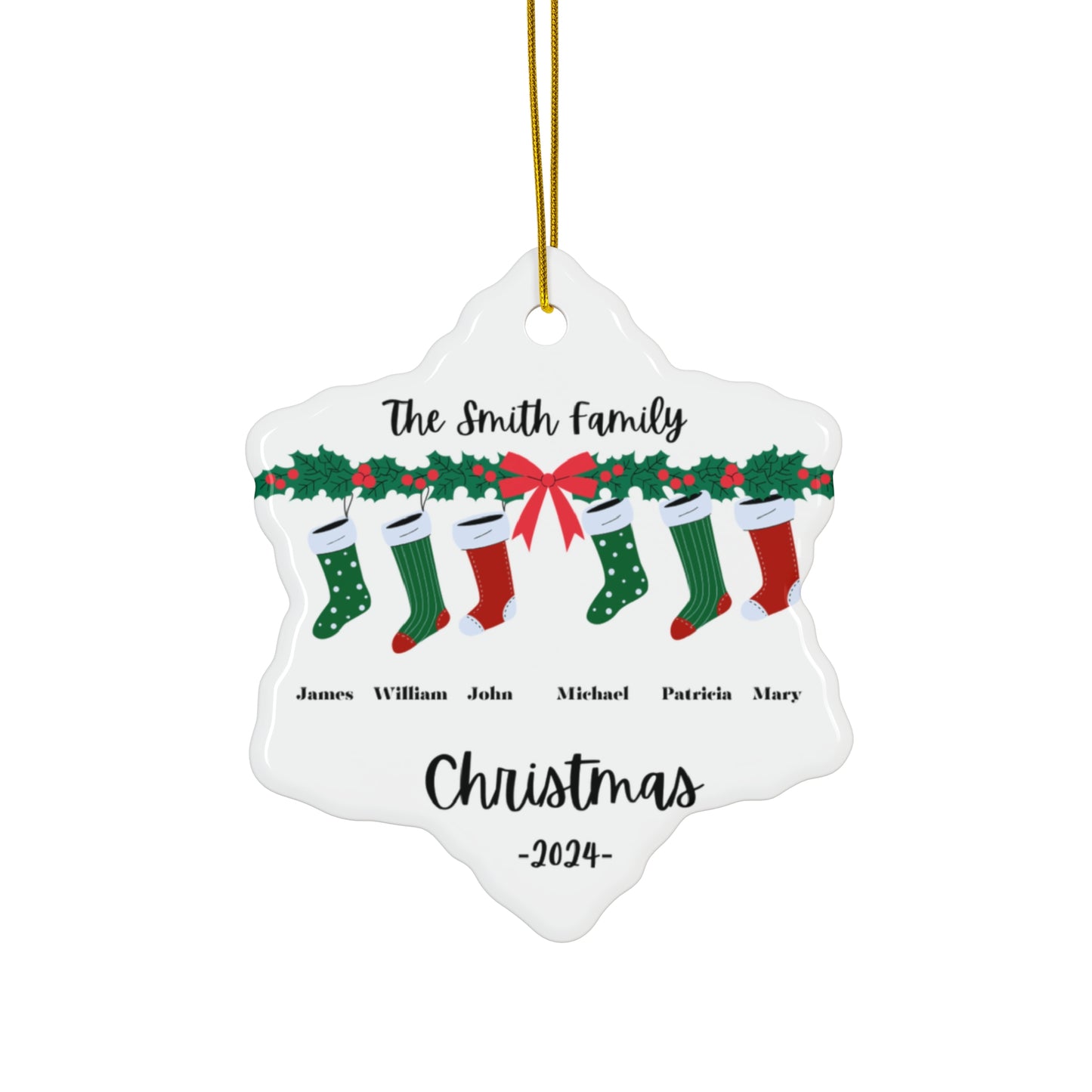 Celebrate togetherness this holiday season with our Family Stocking Ornament designed for families of six! Available in two beautiful shapes—classic Circle and charming Snowflake—this ceramic ornament adds a personal touch to any Christmas tree. Each stocking is crafted with love, symbolizing each member of the family, making this ornament a timeless keepsake to cherish for years.