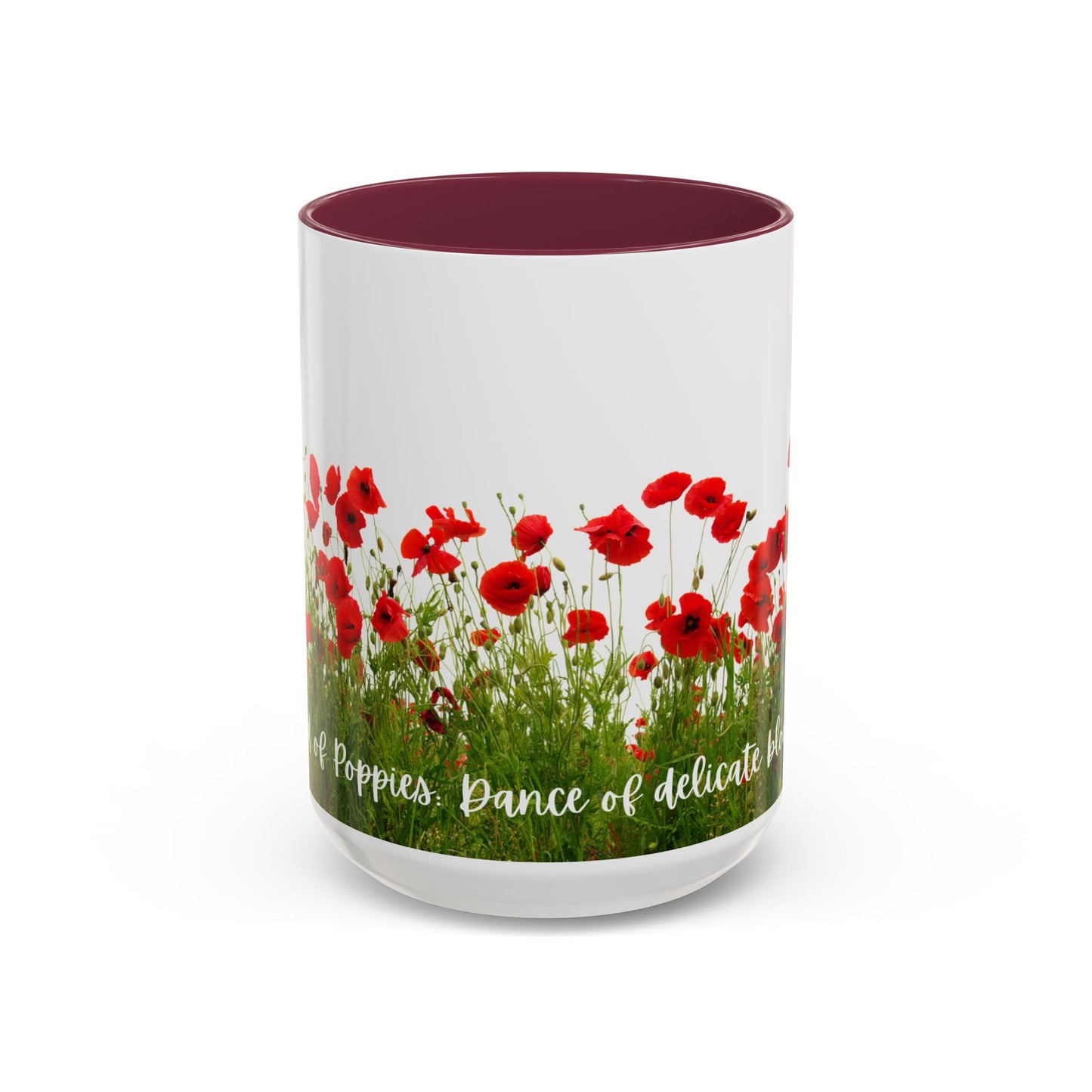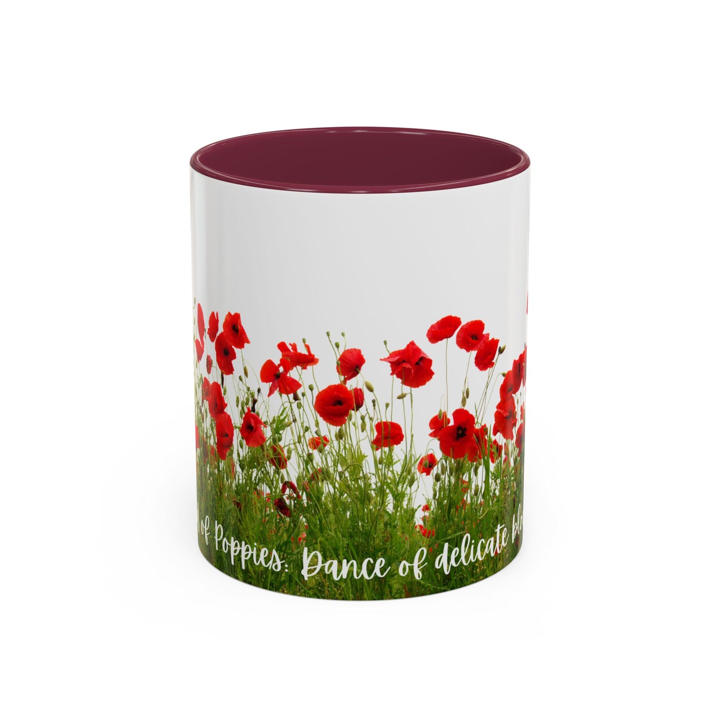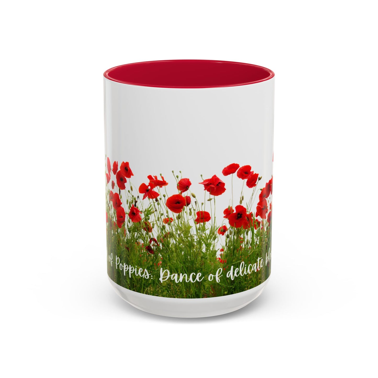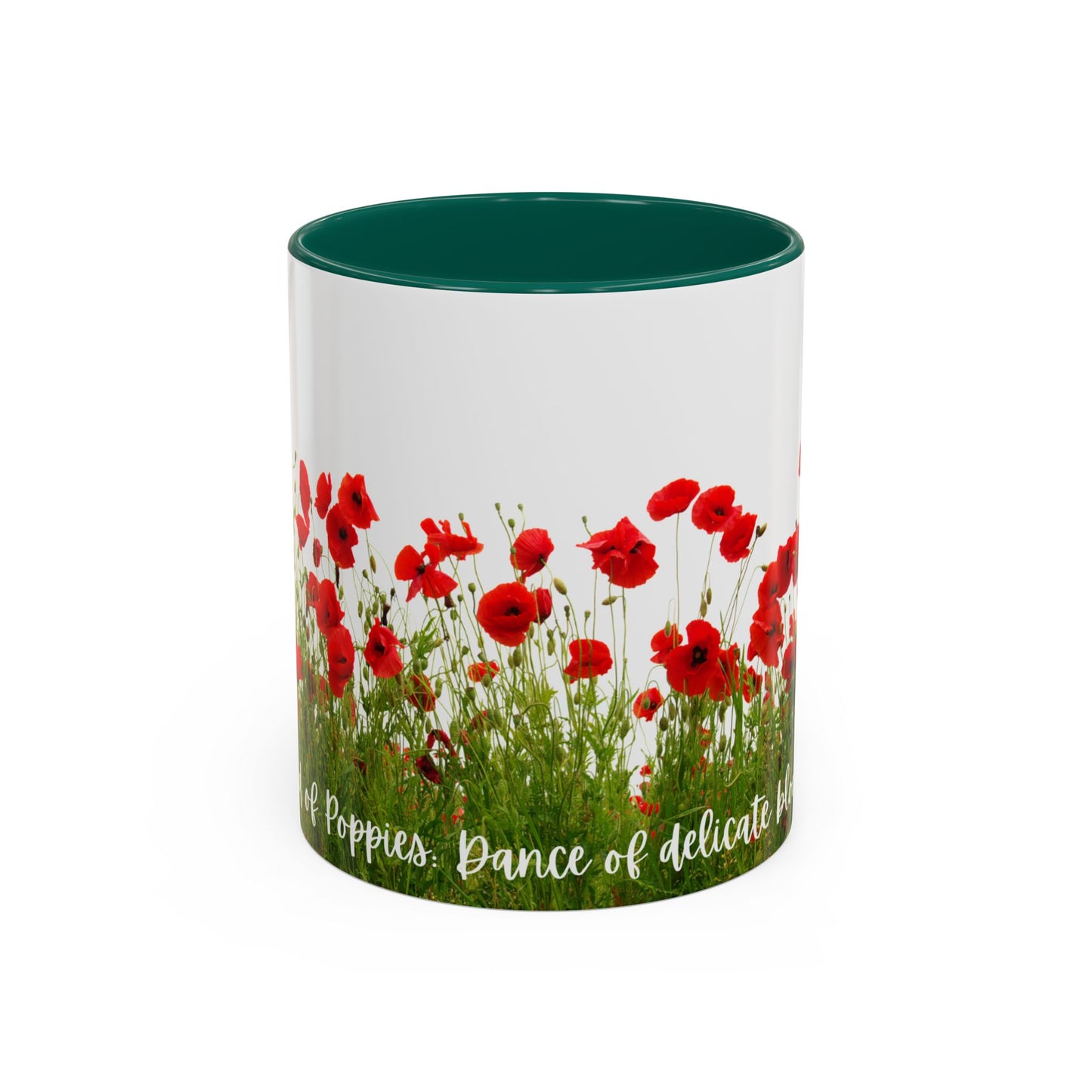 Stunning Floral Design: Each mug is adorned with a mesmerizing field of poppies, capturing the essence of a picturesque meadow in full bloom. The vibrant red petals against lush green stems create a captivating visual feast.