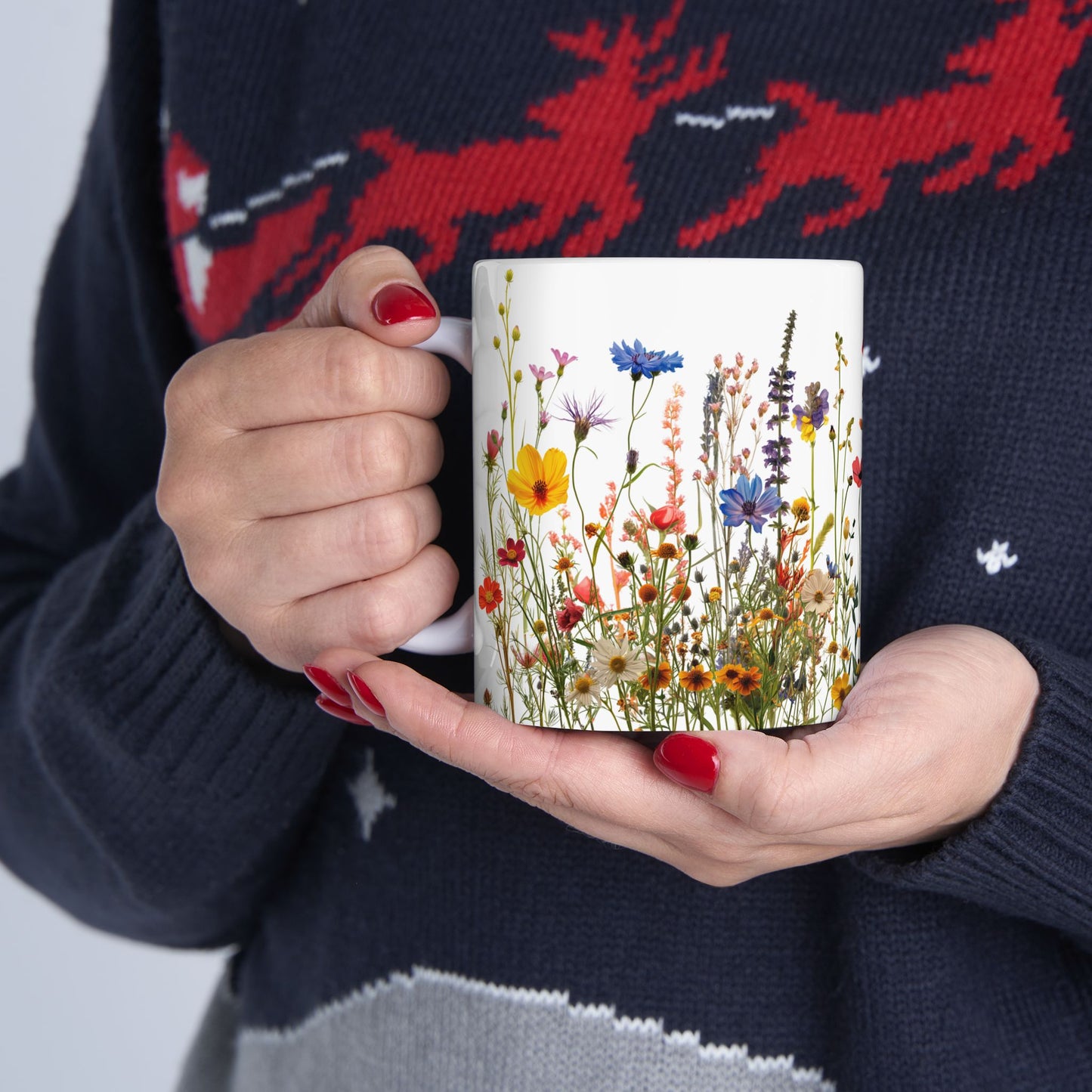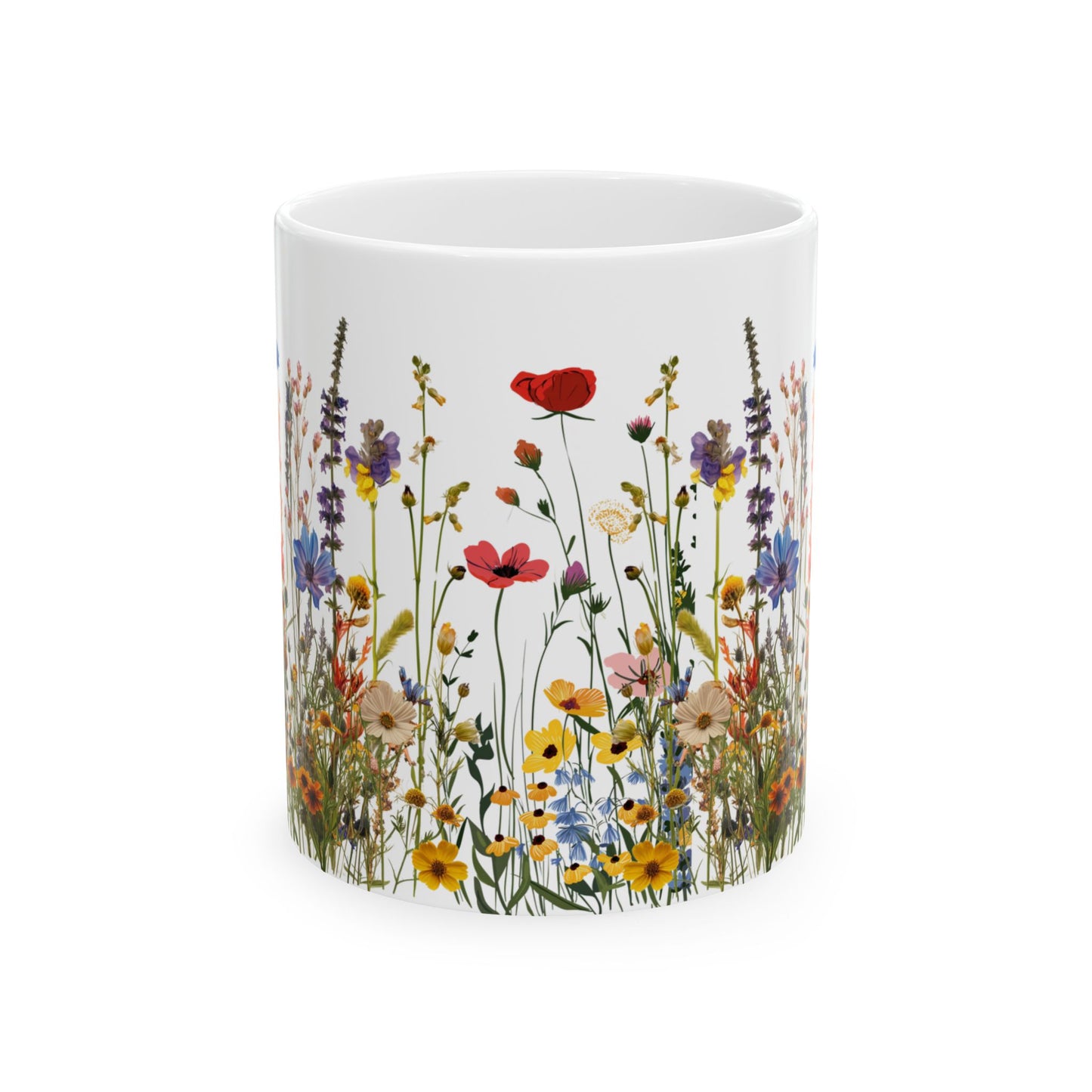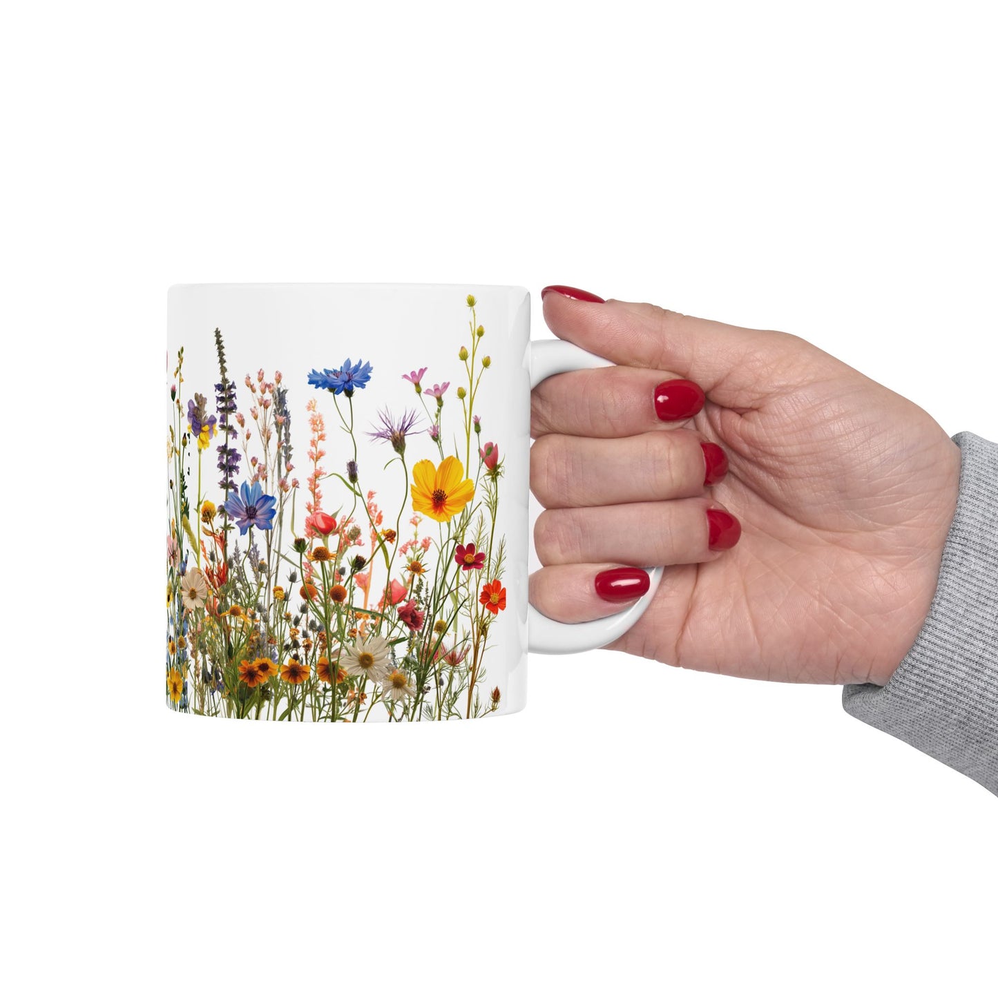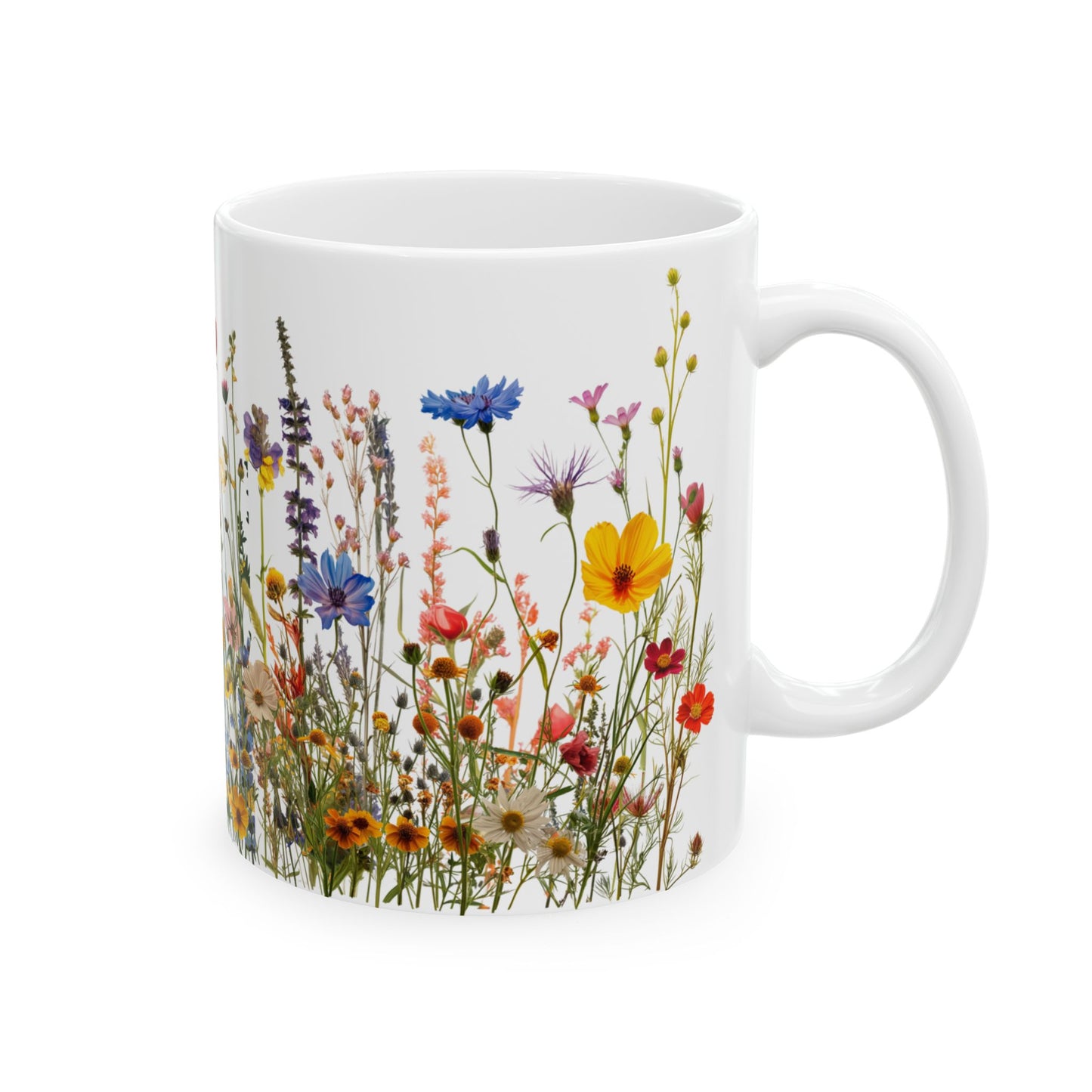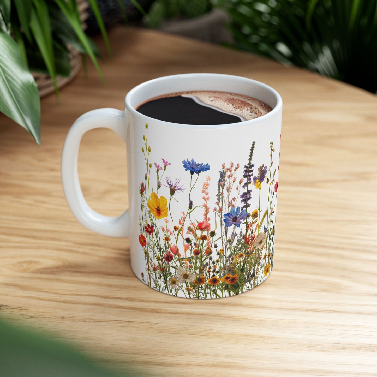 🌼 Stunning Wildflower Artwork: Featuring a vibrant field of wildflowers, this mug captures the essence of nature's beauty. The intricate design and rich colors bring a refreshing and calming vibe to your coffee or tea time.
