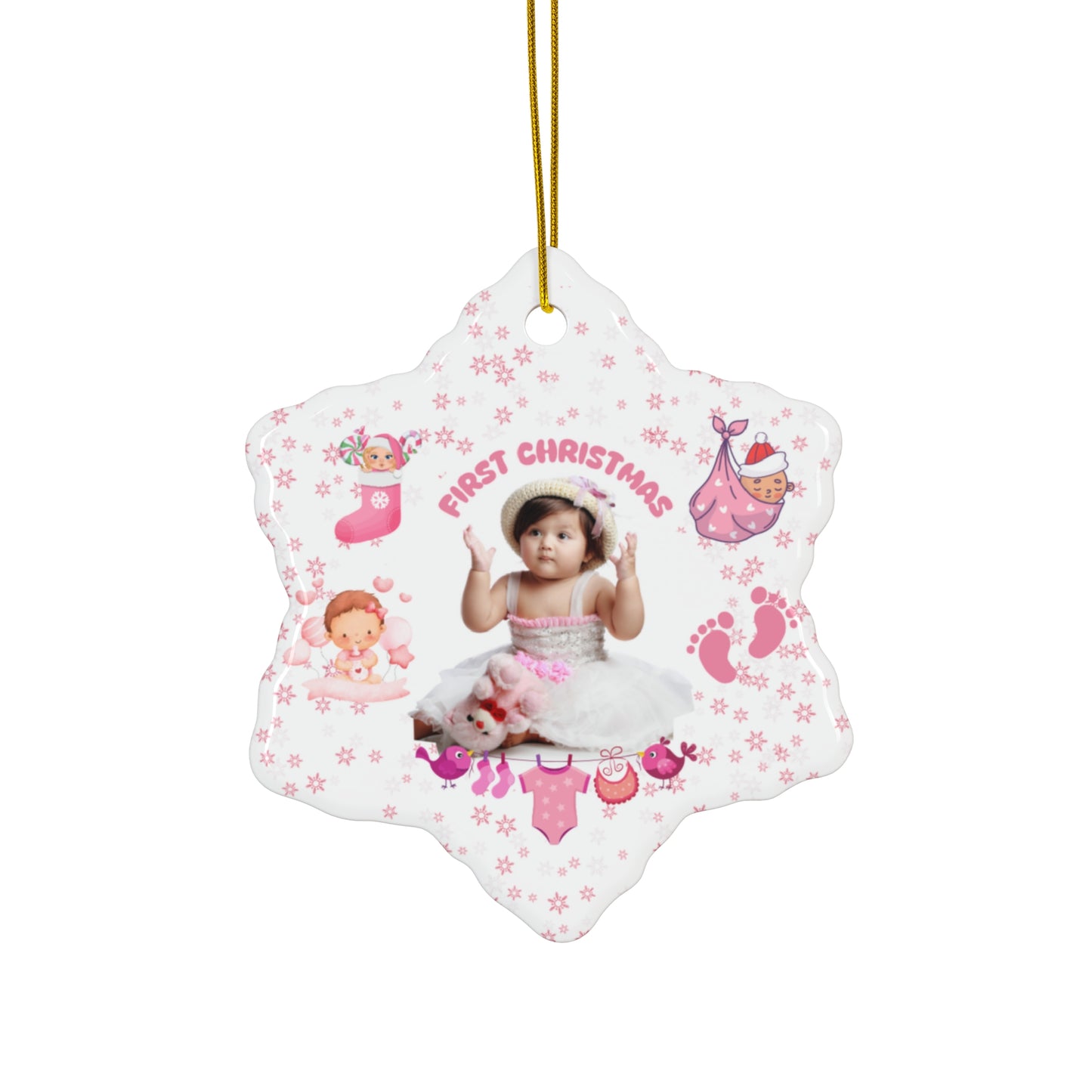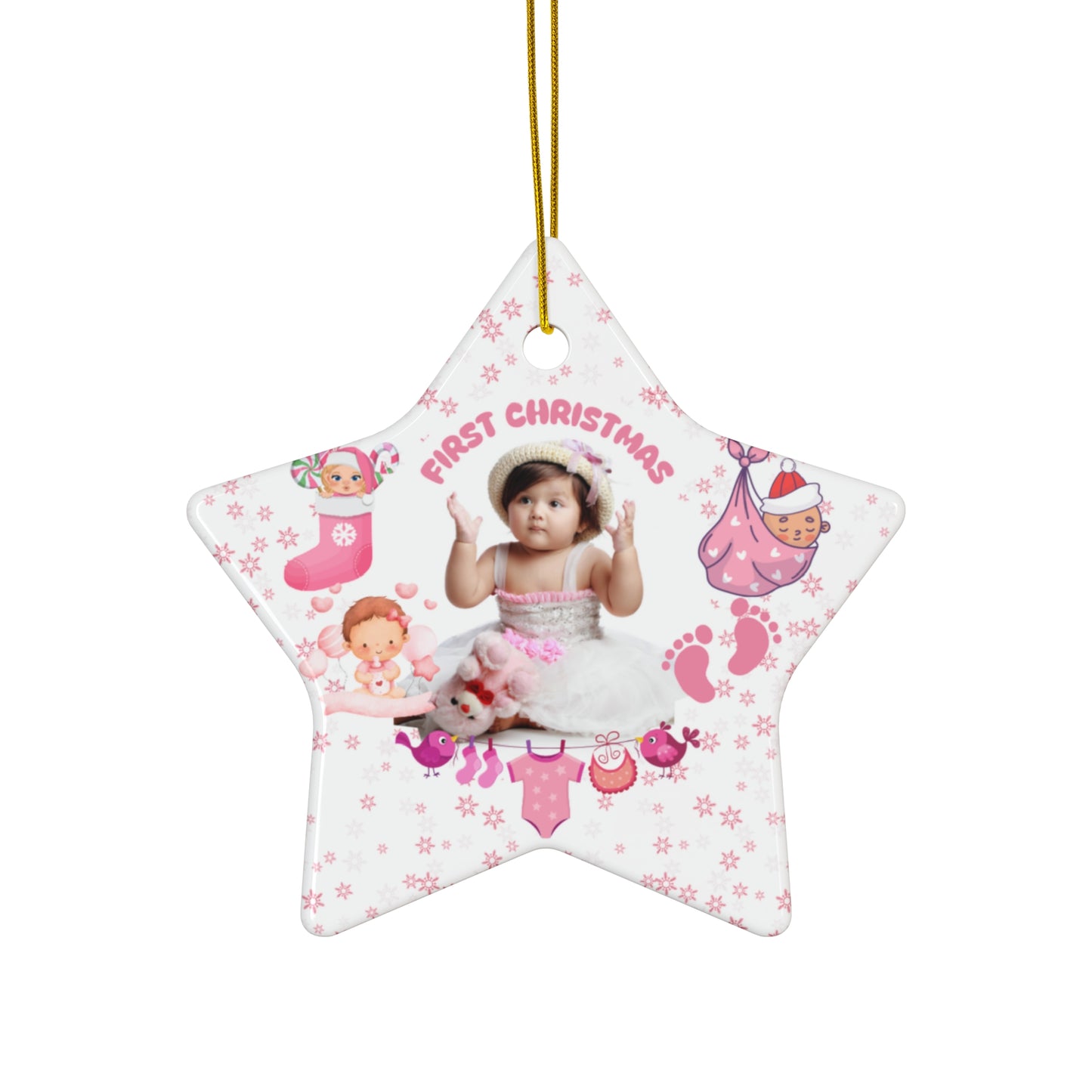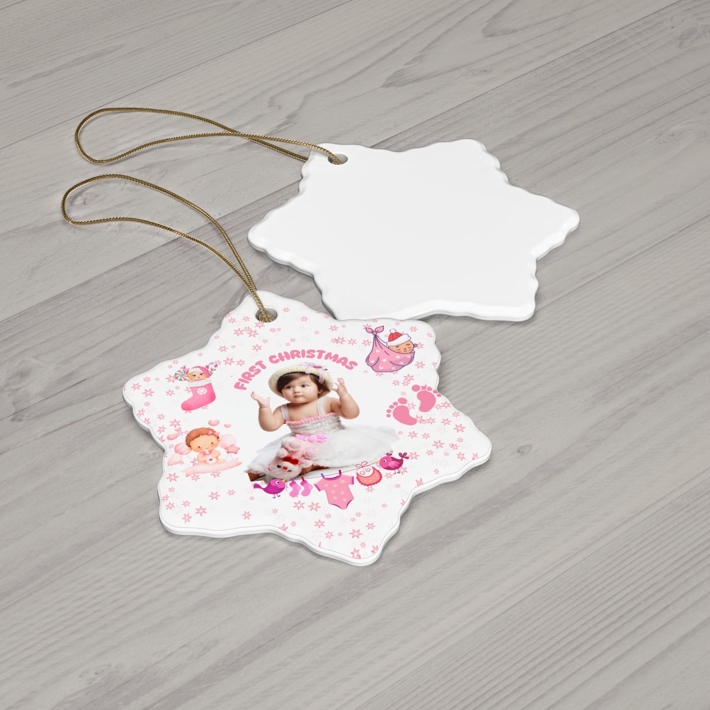 First Christmas, Baby Girl, Customizable - Ceramic Ornament, 4 Shapes - 10017