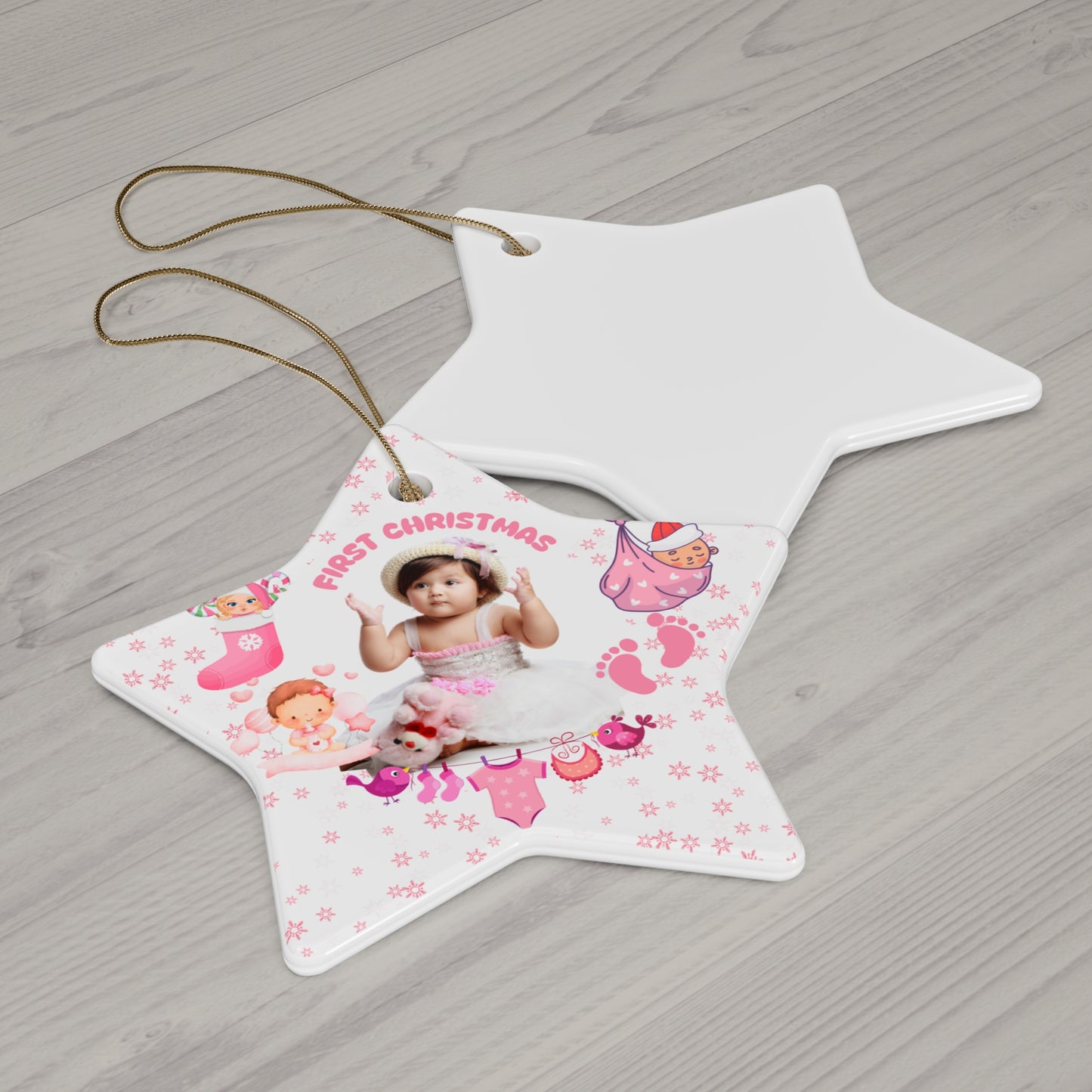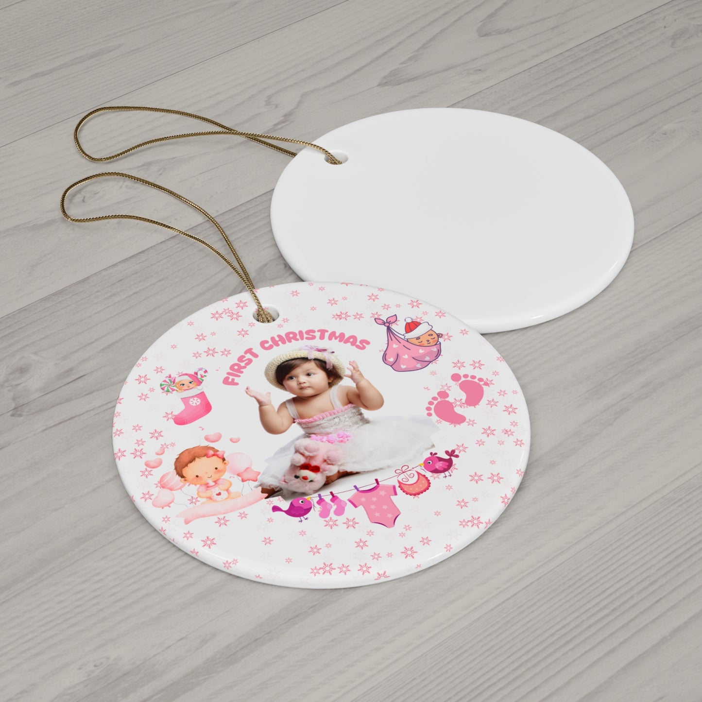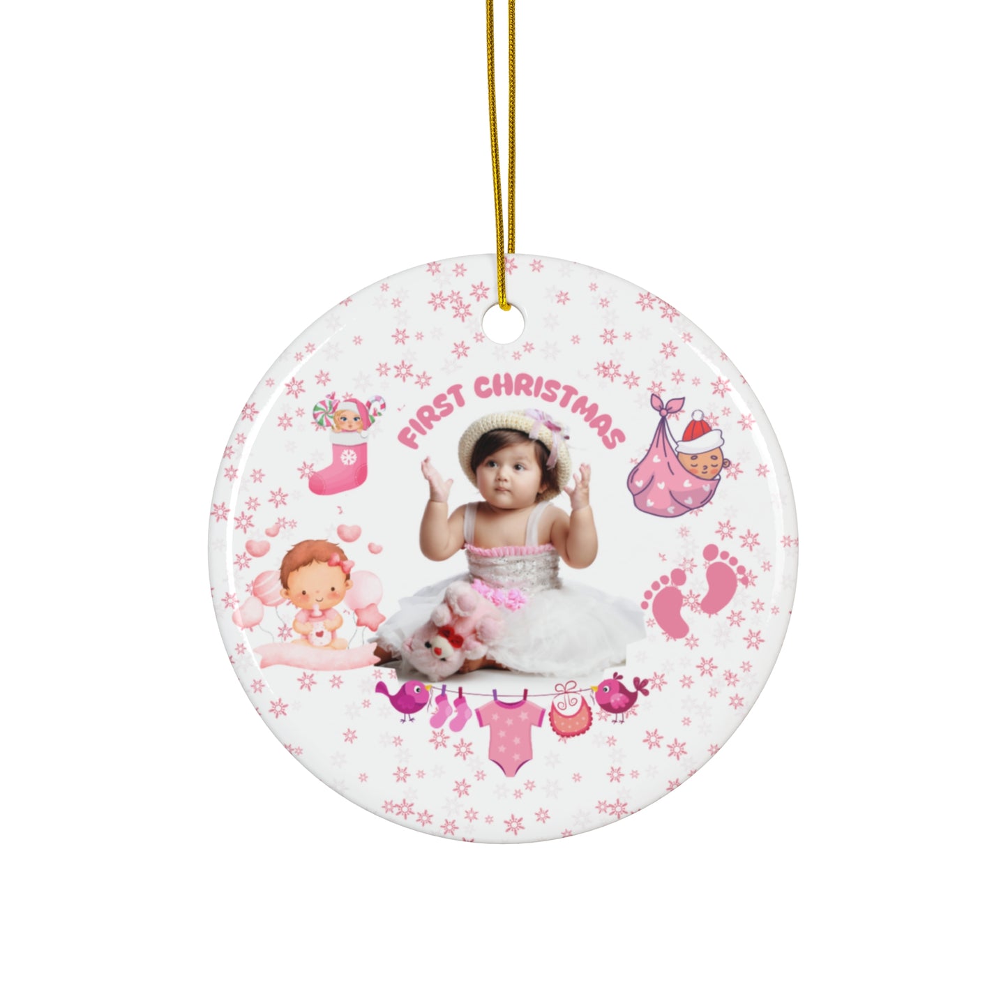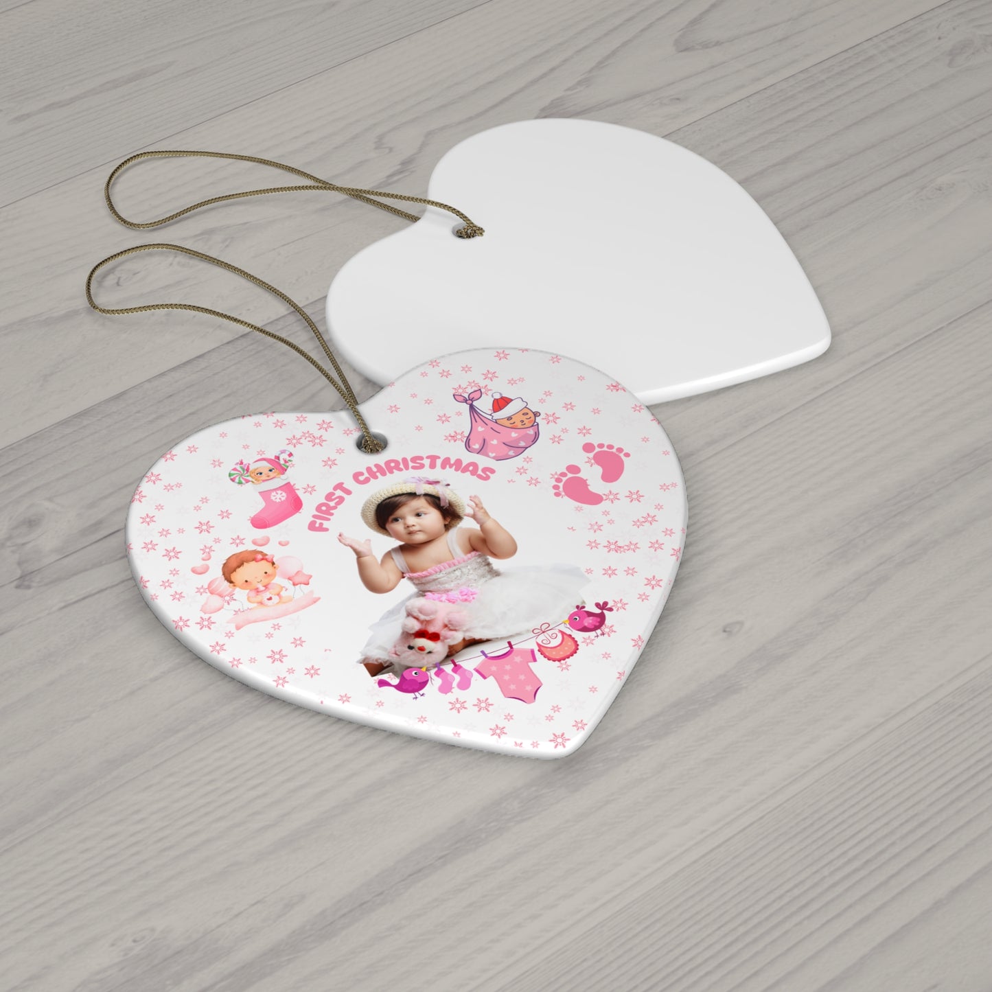 First Christmas, Baby Girl, Customizable - Ceramic Ornament, 4 Shapes - 10017