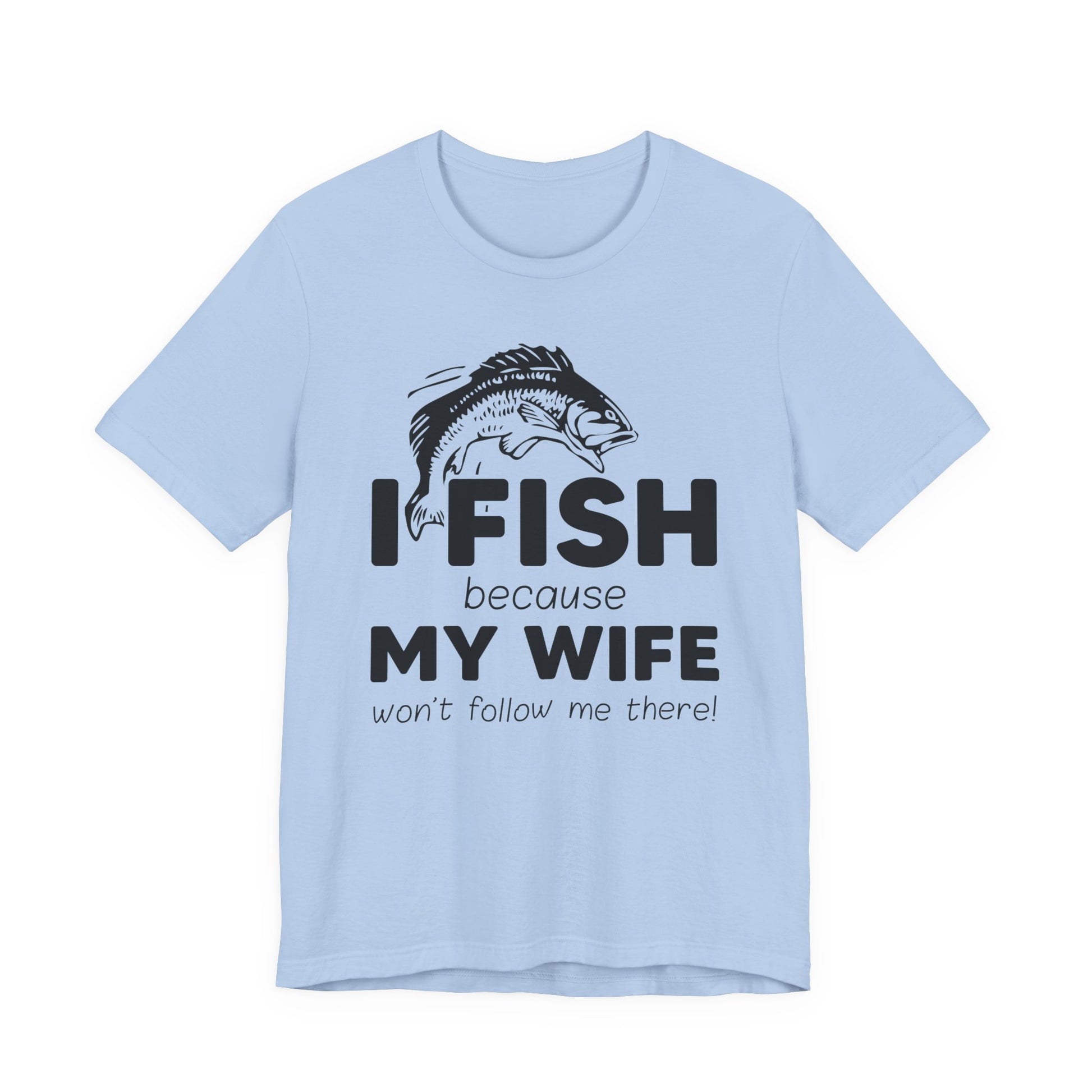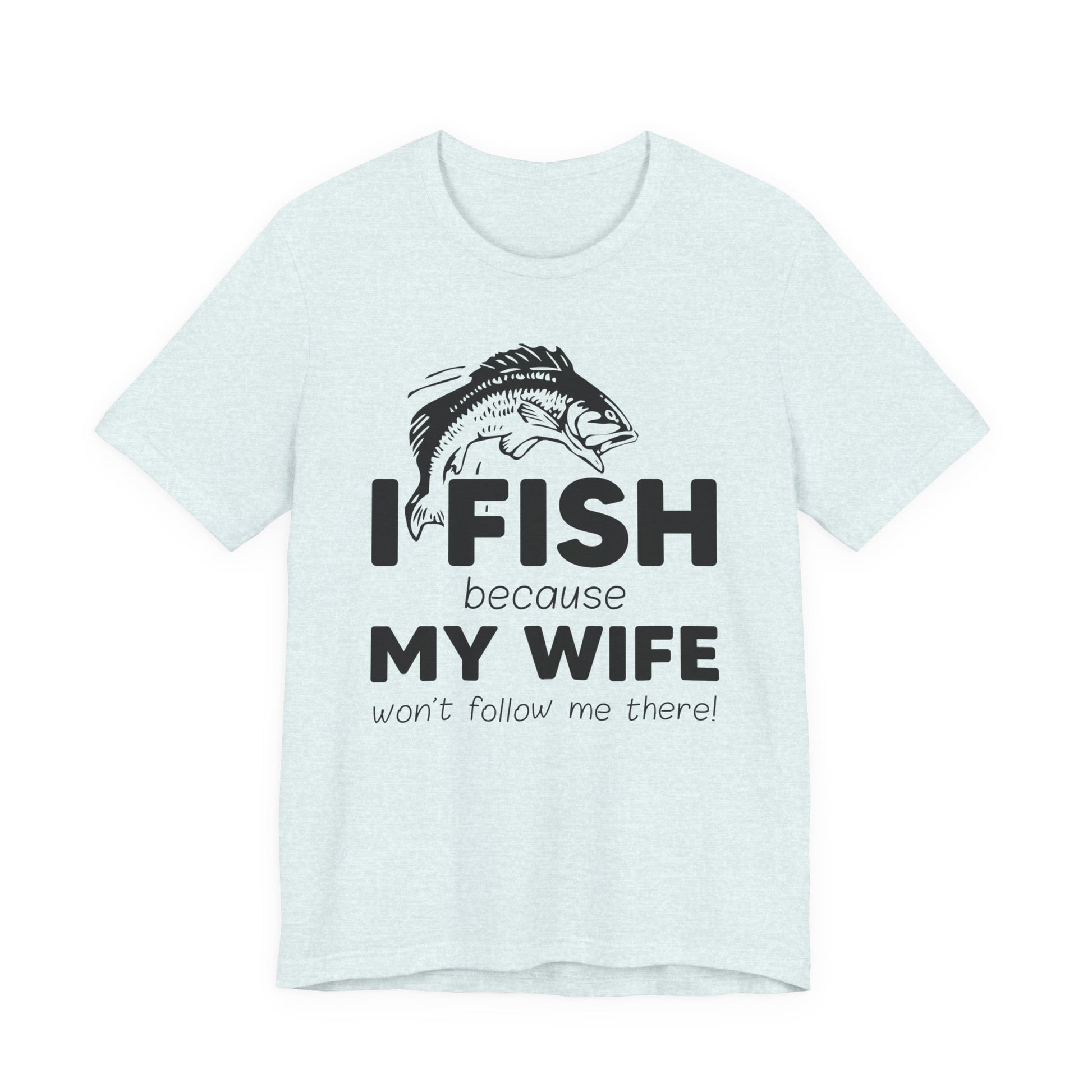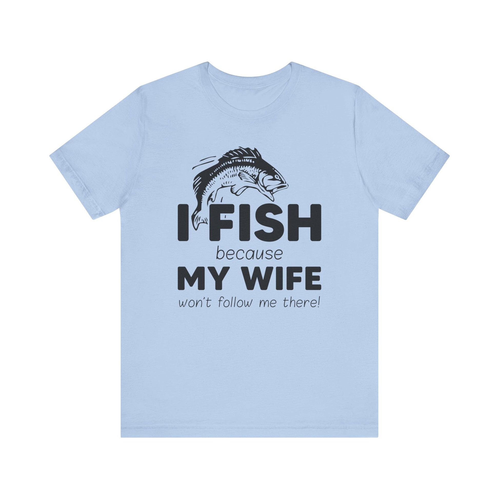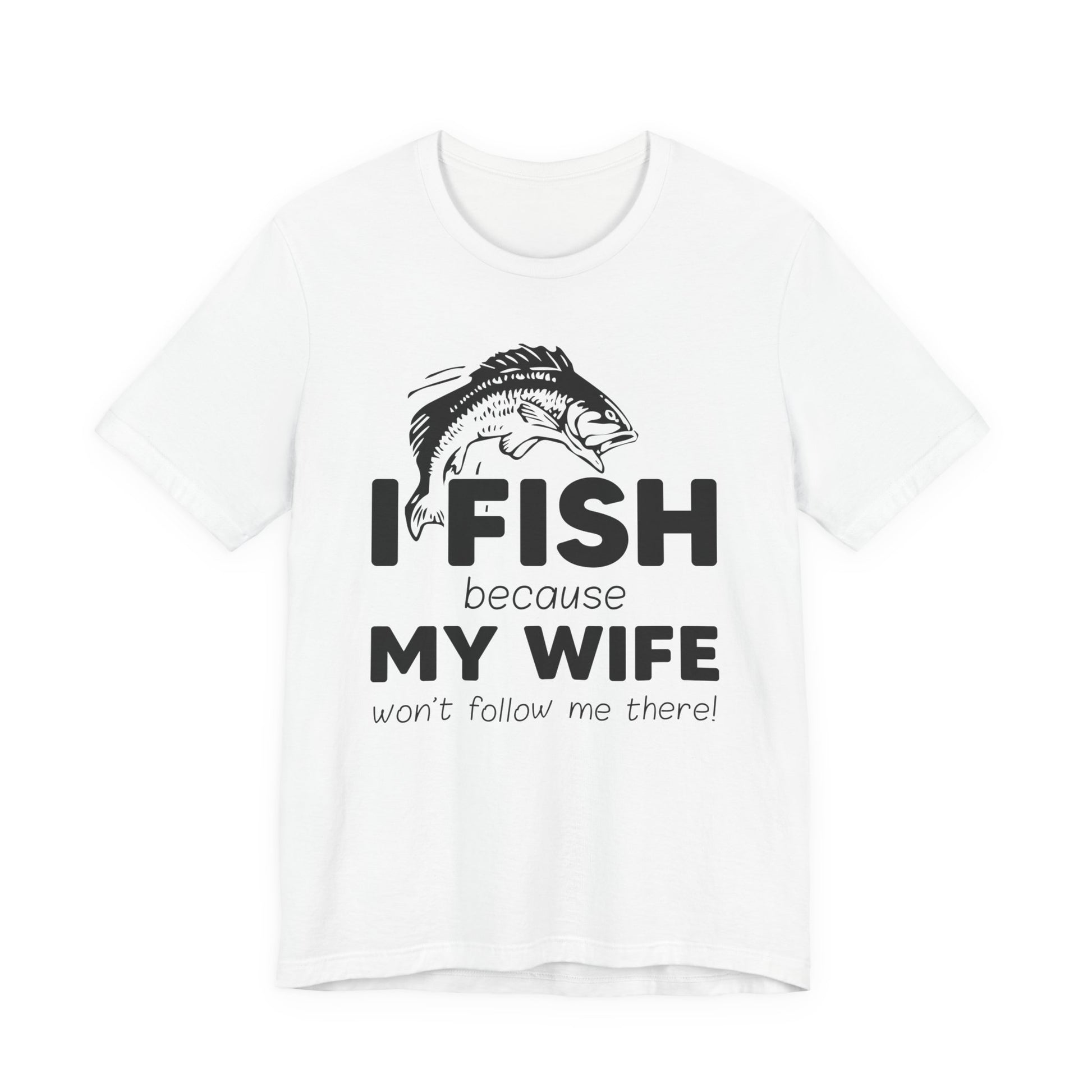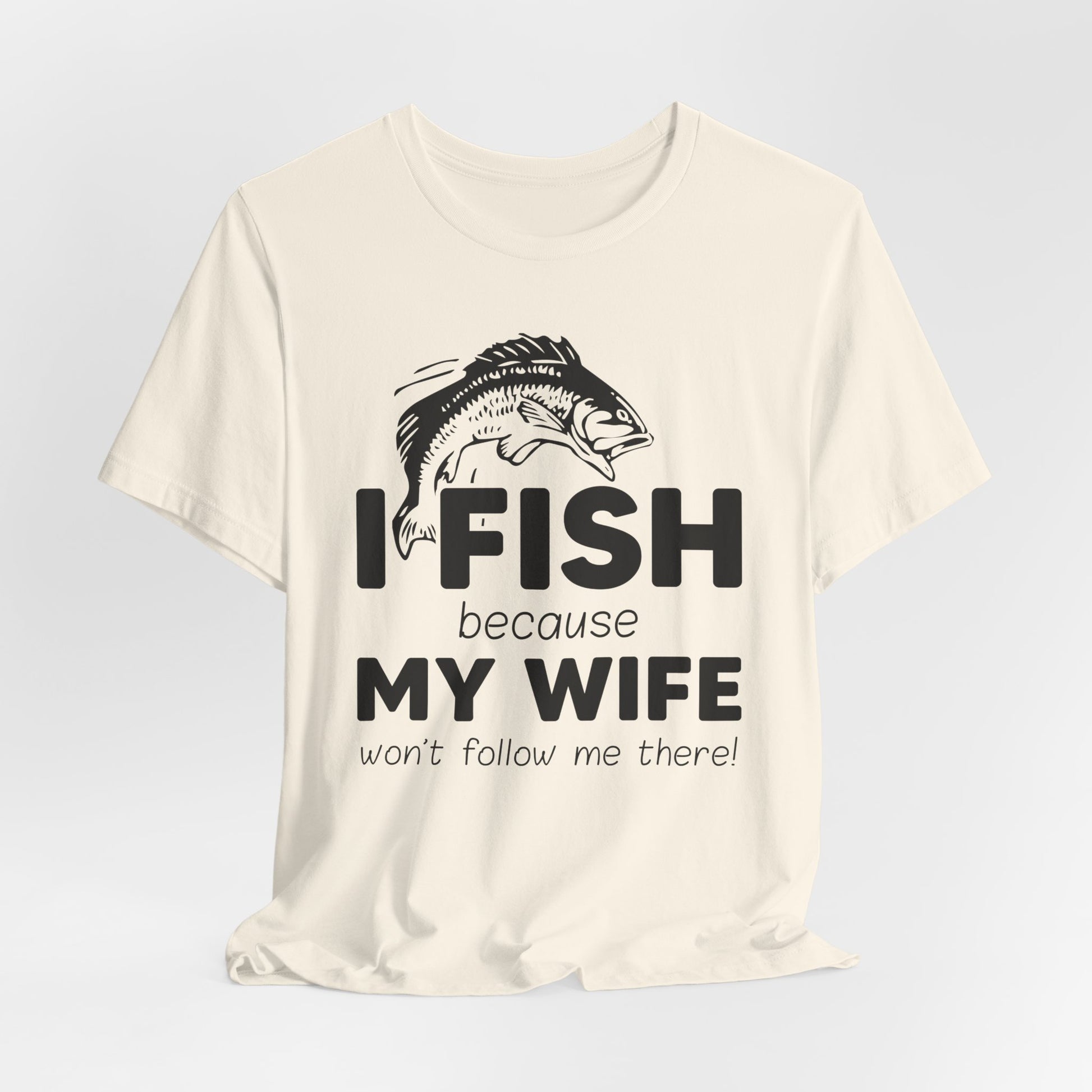Celebrate the humor and love for fishing with our "I Fish Because My Wife Won't Follow Me There!" unisex jersey short sleeve tee. This shirt is perfect for anglers who appreciate a touch of wit while enjoying their favorite pastime. Crafted from high-quality materials, it ensures comfort and durability, making it ideal for both casual wear and fishing adventures.