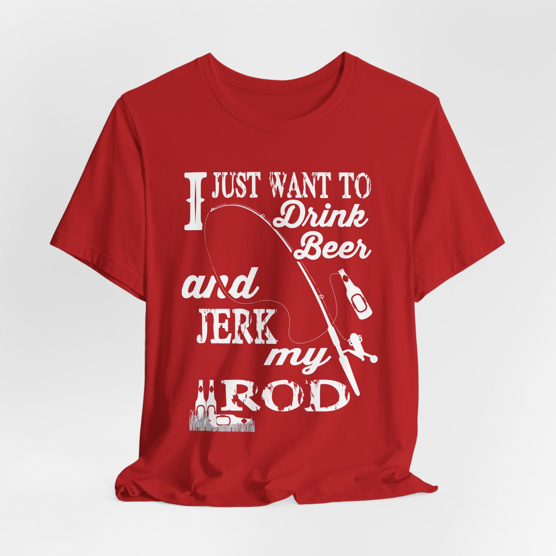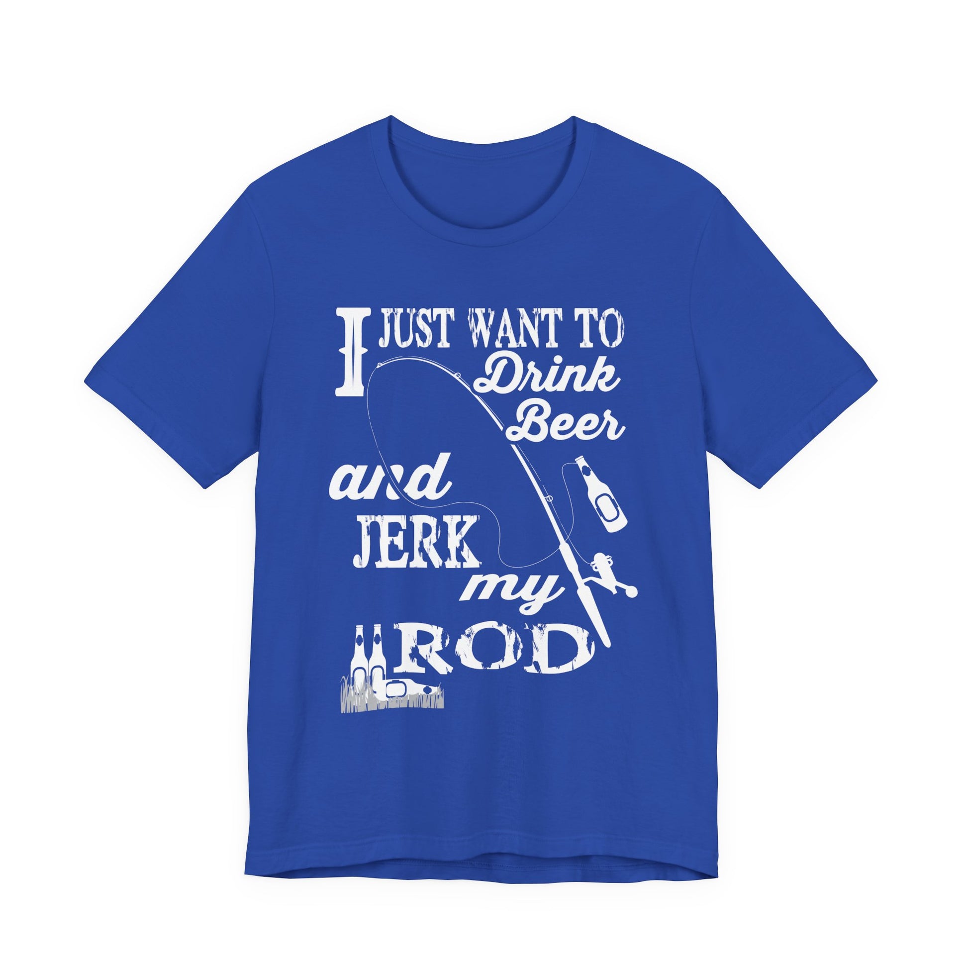 Enjoy the perfect blend of humor and comfort with the "I Just Want To Drink A Beer And Jerk My Pod" tee. Whether you're on the boat or at the dock, this shirt is the ideal choice for every angler who loves to fish, relax, and have a good laugh.