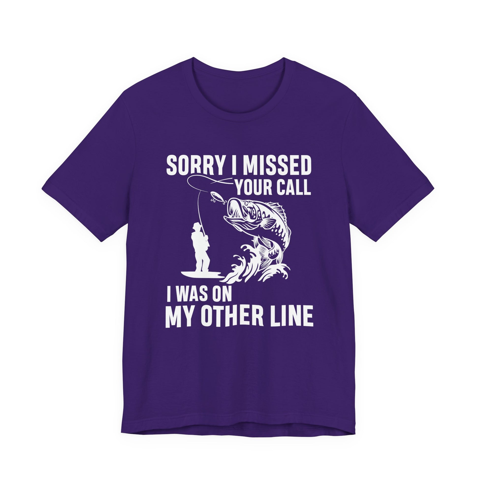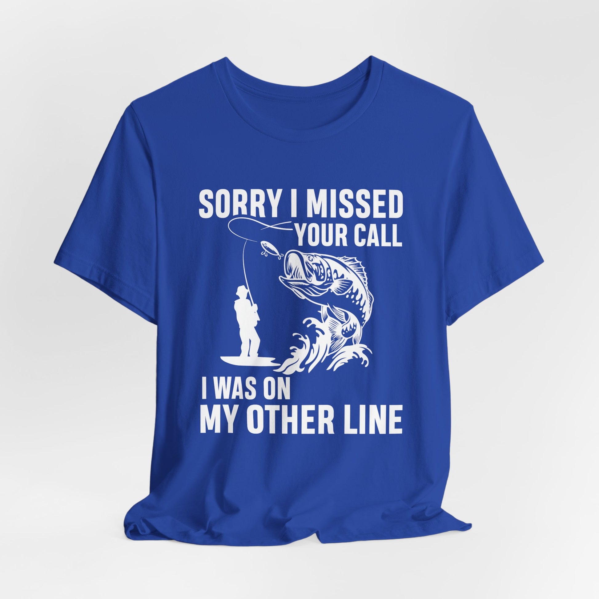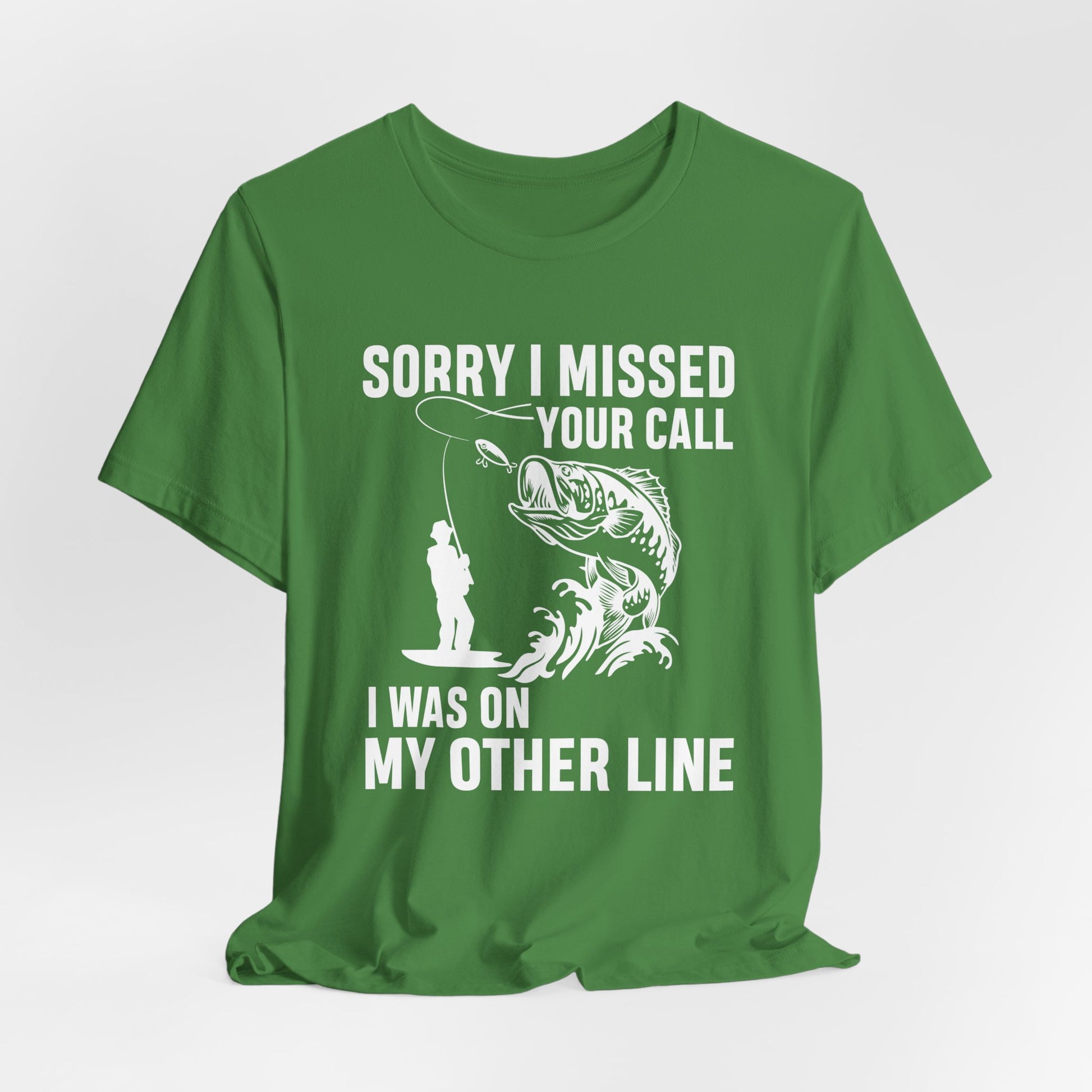 Show off your fishing humor with our "Sorry, I Missed Your Call, I Was On Other Line" unisex jersey short sleeve tee. Perfect for anglers who know the joy of being out on the water, this tee combines comfort, style, and a witty play on words. Crafted from premium jersey fabric, it offers a soft touch and a perfect fit for every fishing enthusiast.