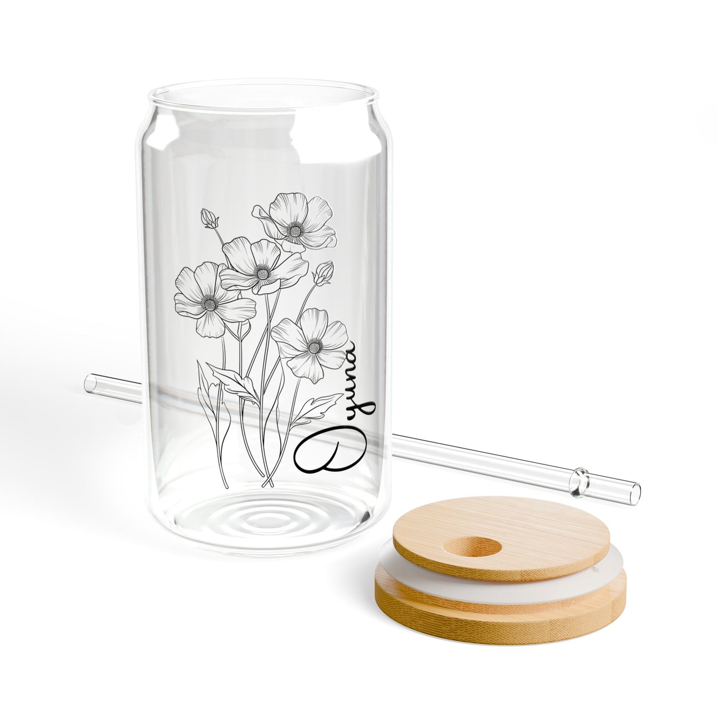 Brighten up your beverage moments with our customizable 16oz Sipper Glass adorned with a beautiful floral design!