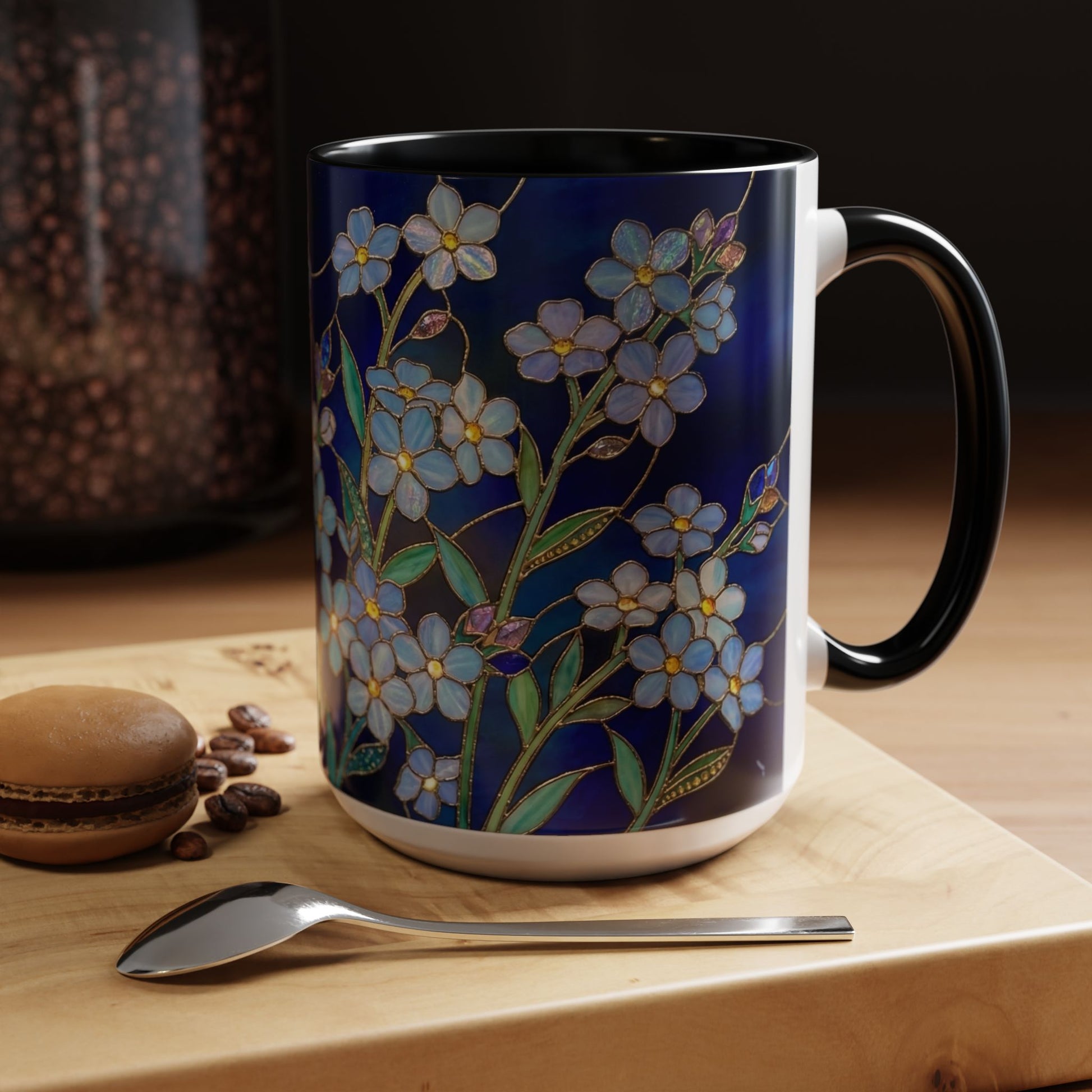 Forget-Me-Not Accent Coffee Mug — Stained Glass Design (11/15 oz) - 14564