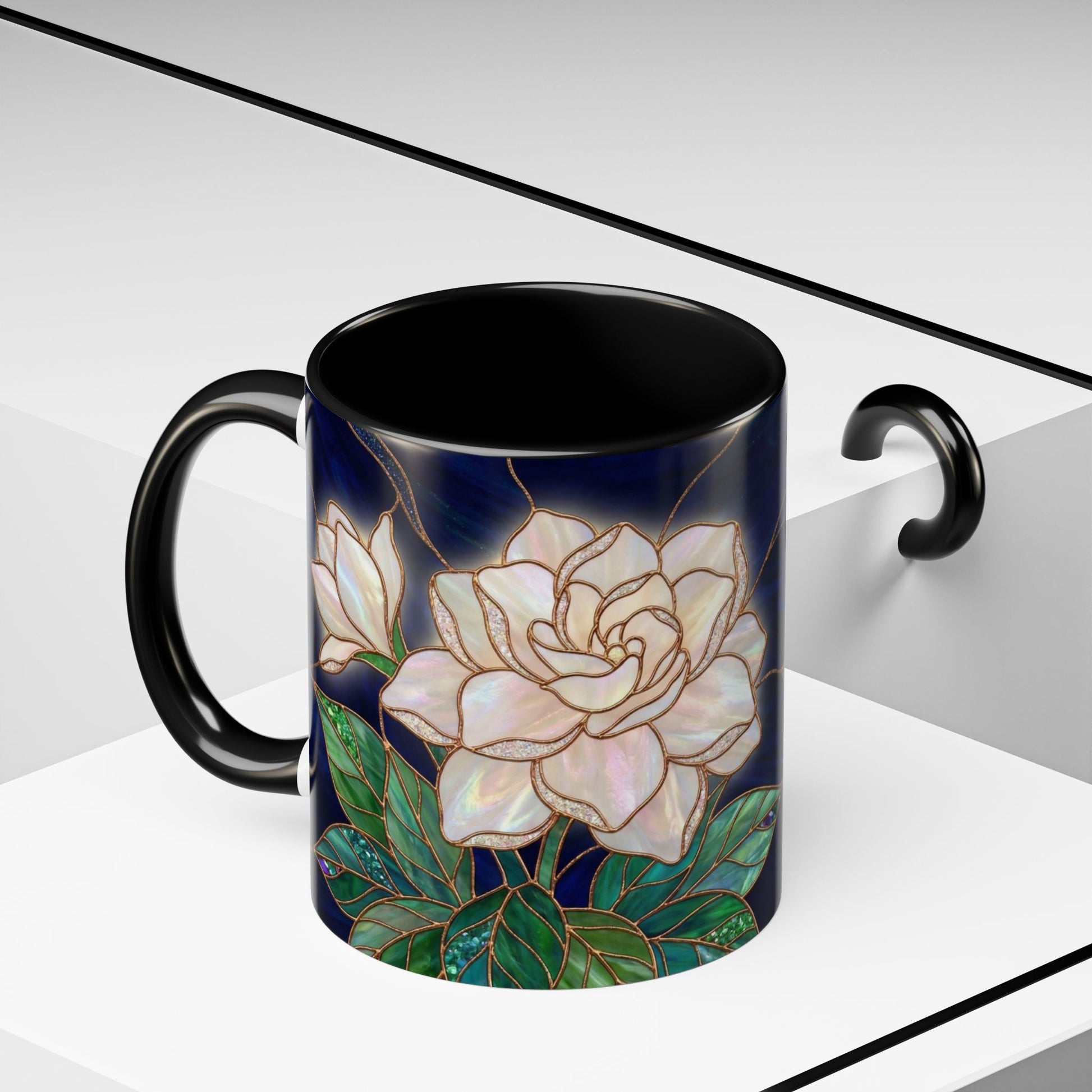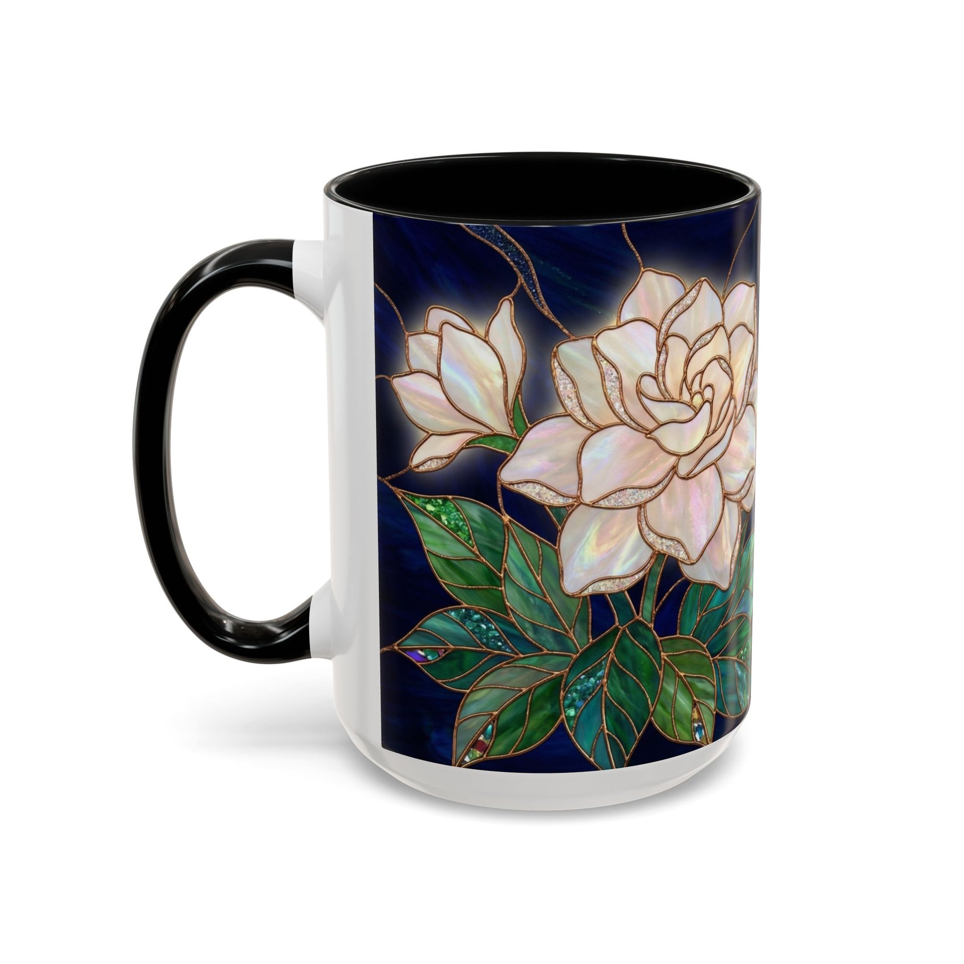 Gardenia Floral Accent Coffee Mug - Stained-Glass Design (11/15oz) - 14567