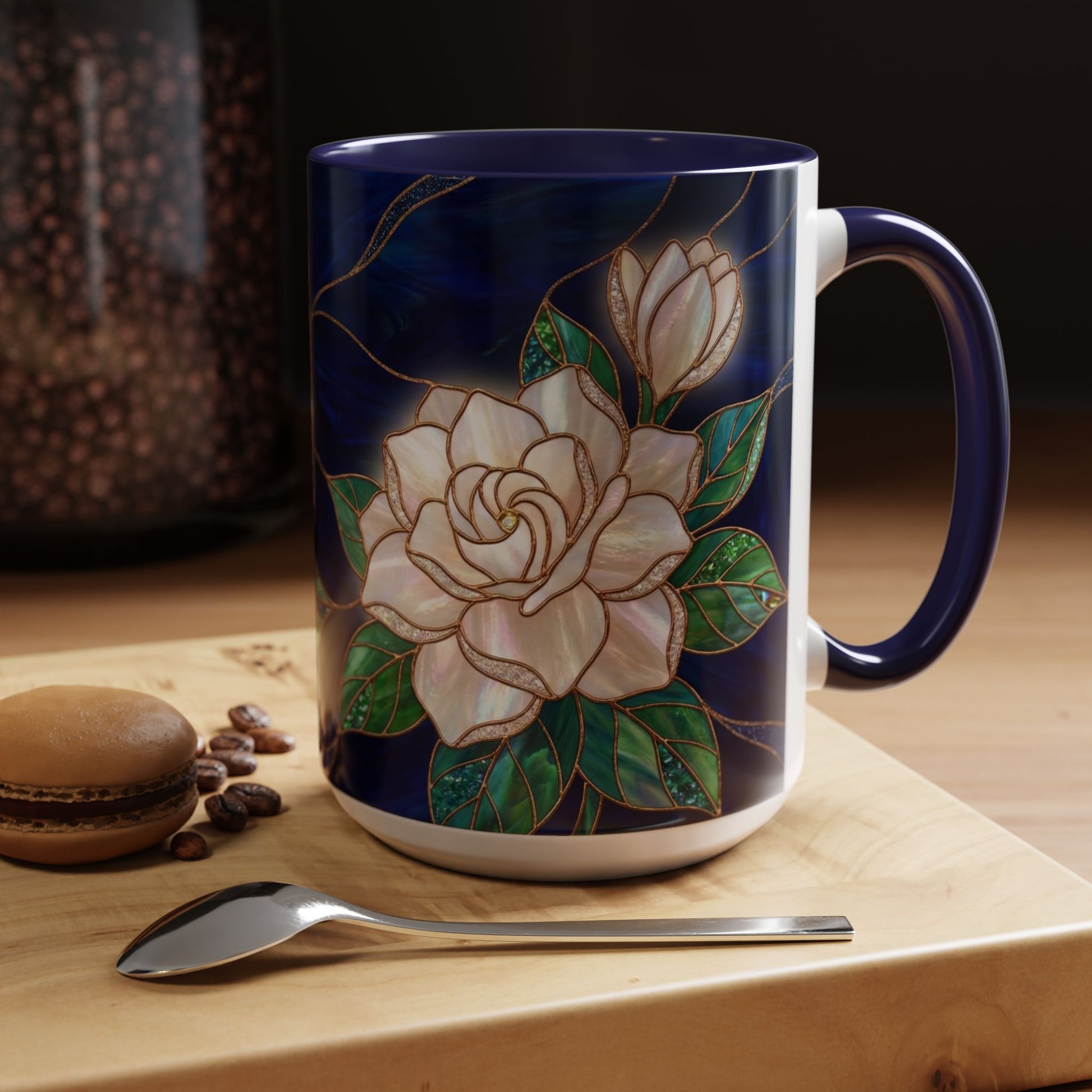 Bring the timeless beauty of gardenias into your daily routine with this exquisite Gardenia Stained-Glass Accent Mug. Known for their creamy white petals and delicate fragrance, gardenias symbolize purity, grace, and heartfelt affection—and this mug captures their elegance in a radiant stained-glass style.