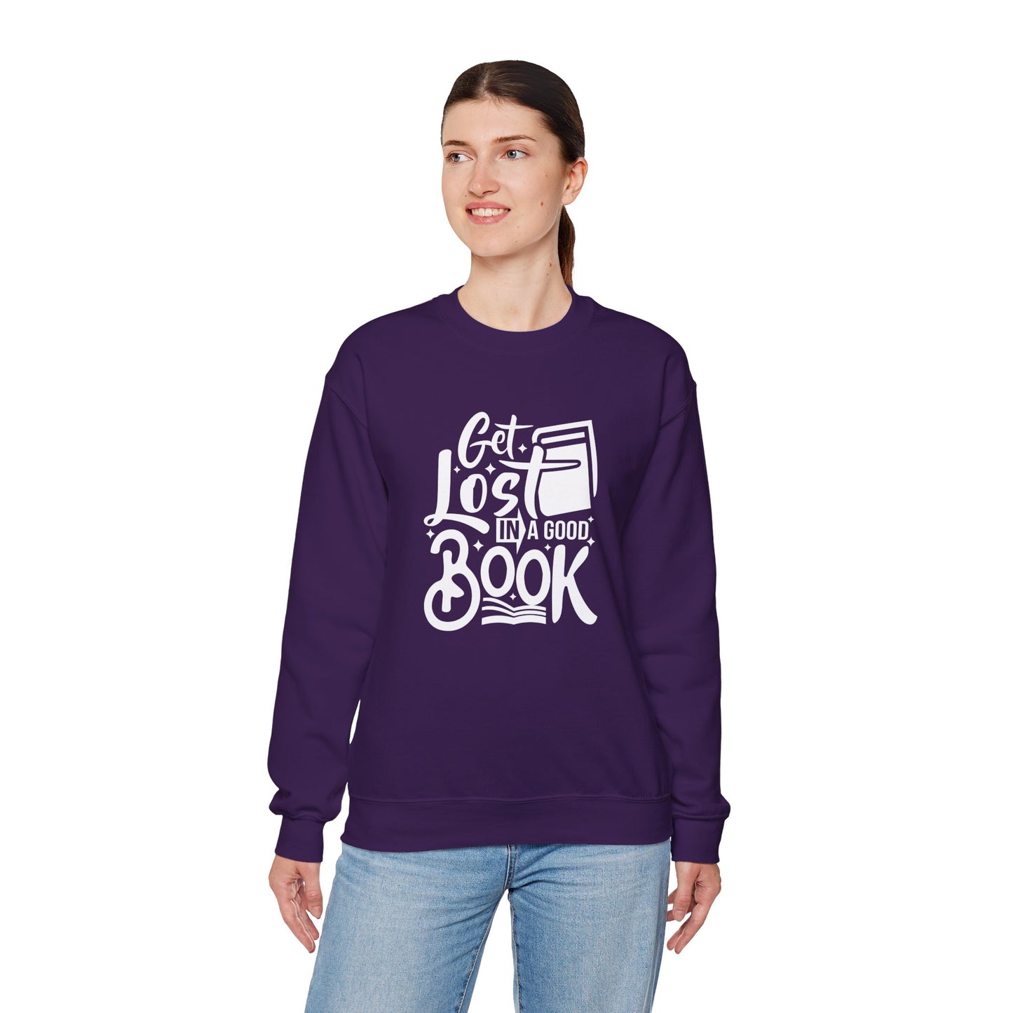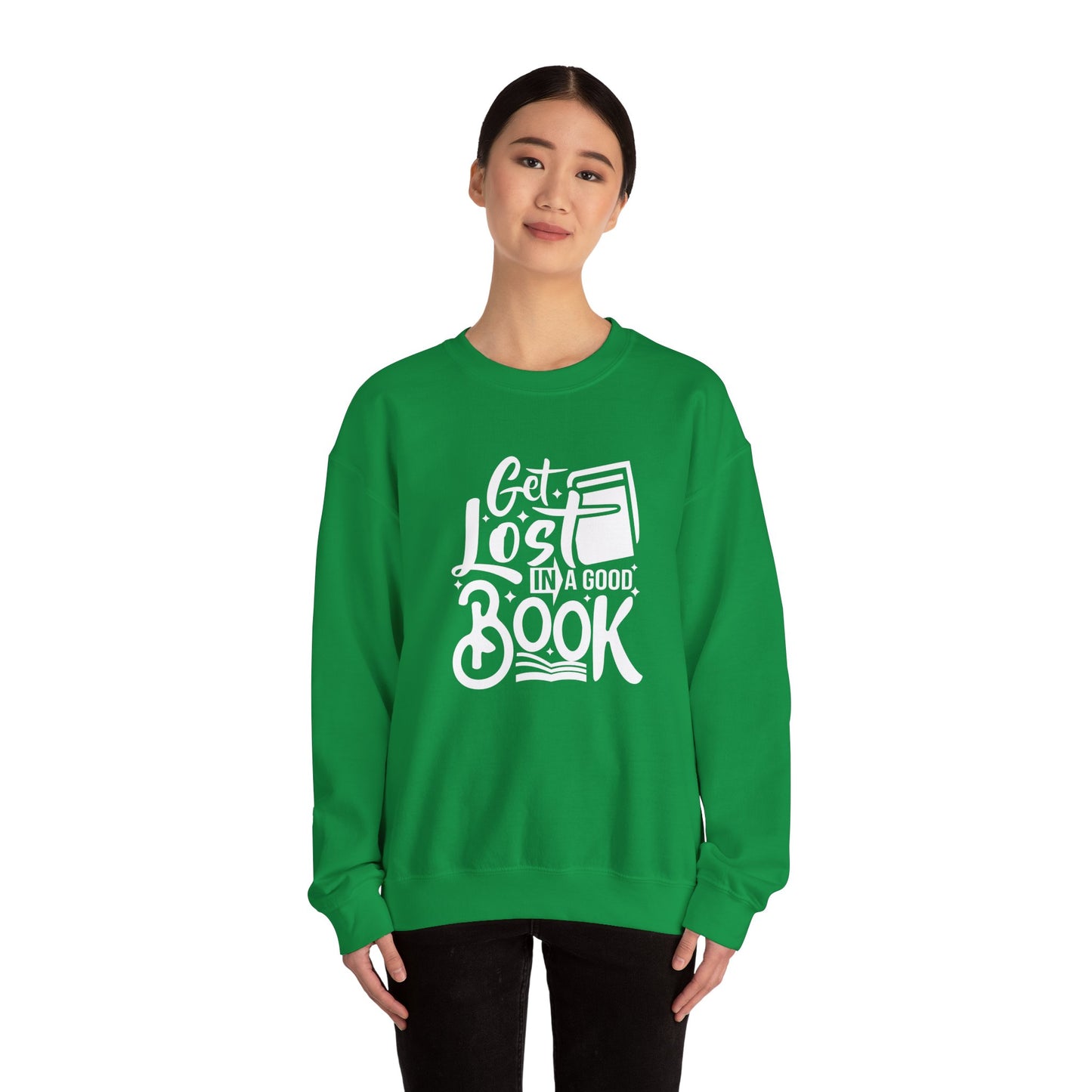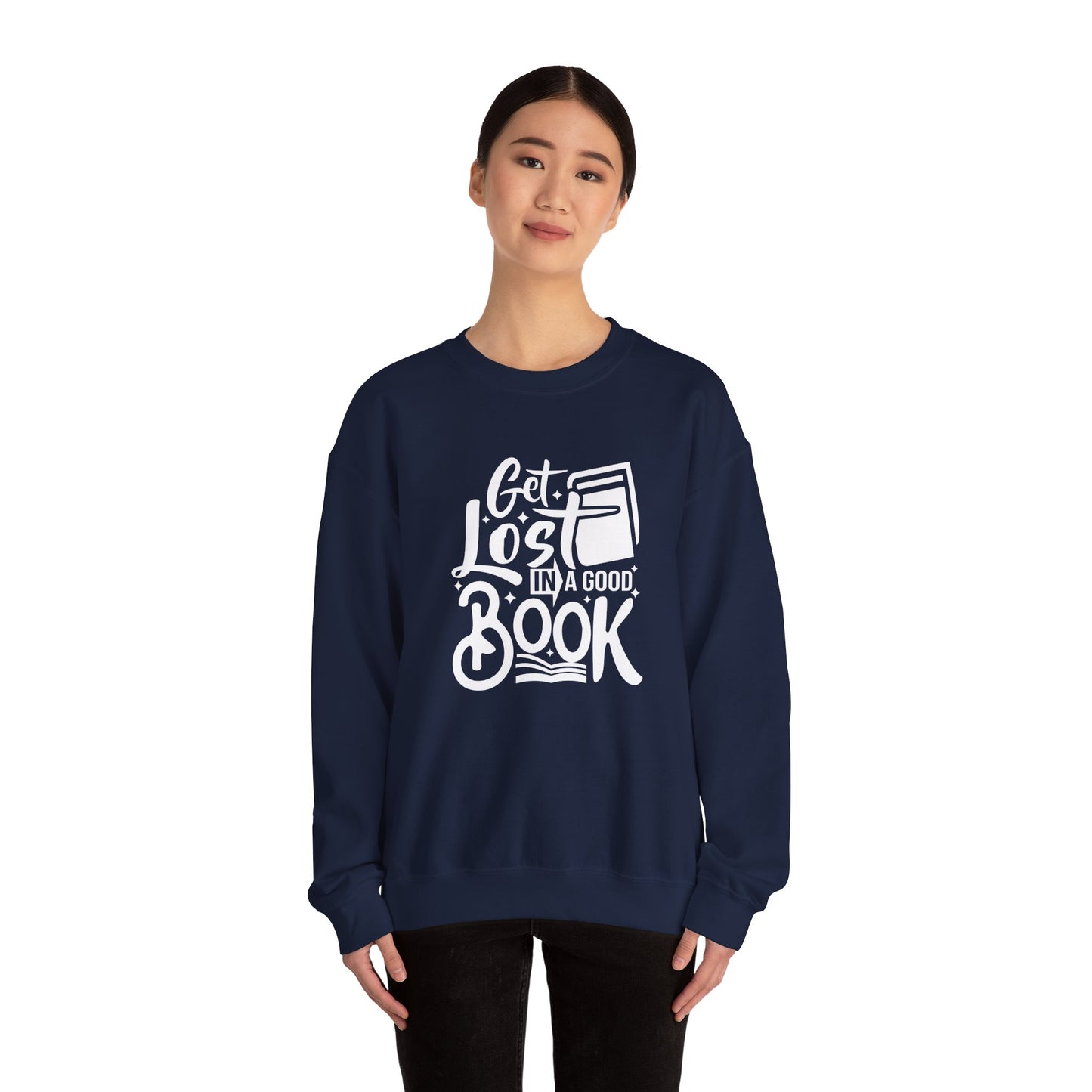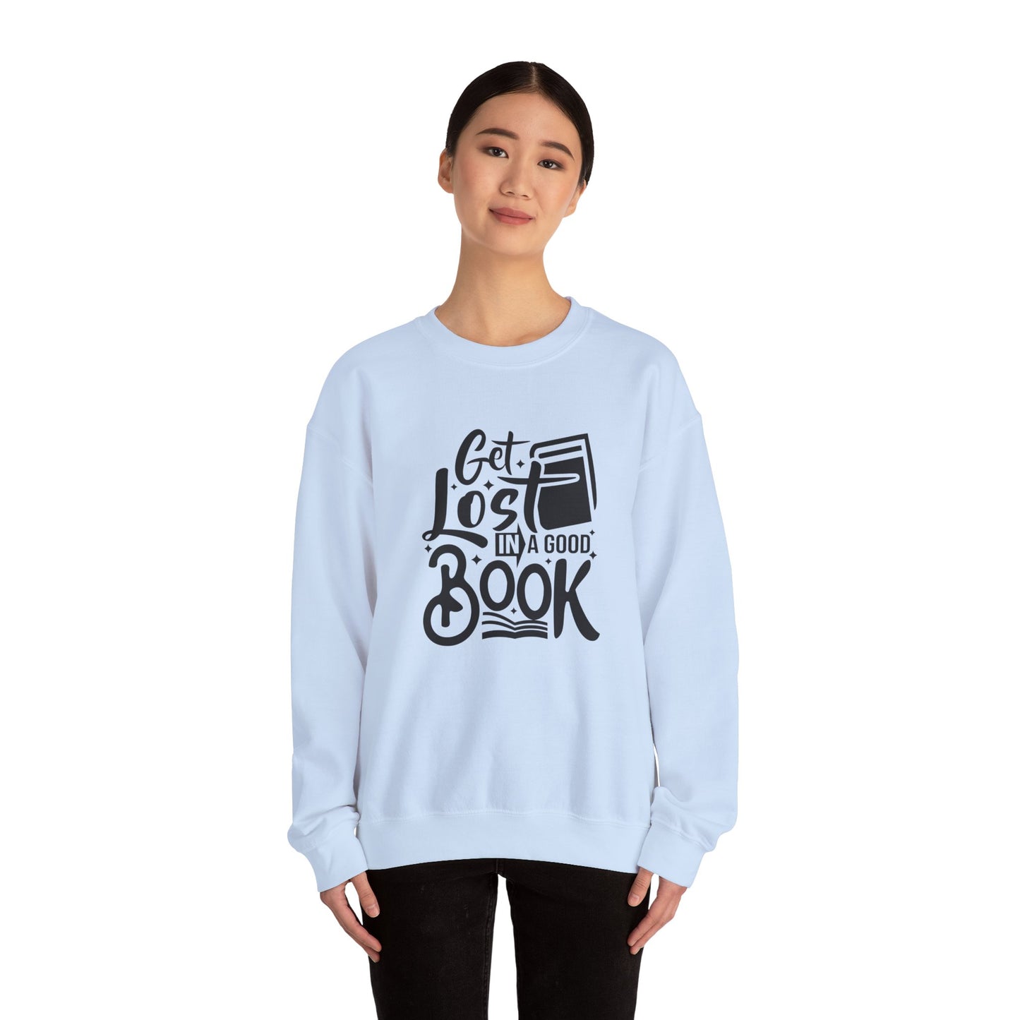 For the book lover who enjoys cozying up with a great story, the Get Lost in A Good Book Unisex Heavy Blend™ Crewneck Sweatshirt is your perfect companion.