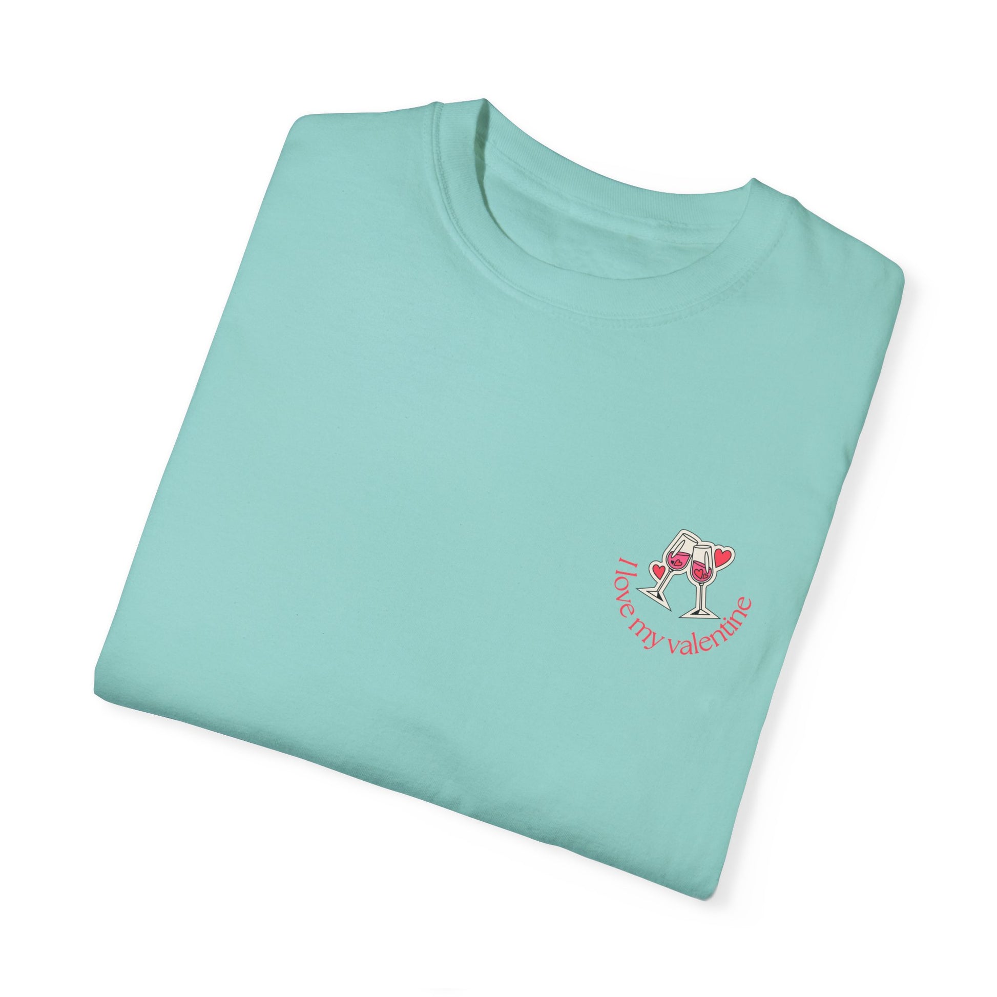 Glasses of Wine, i Love My Valentine - Unisex Garment-Dyed T-shirt - 11523