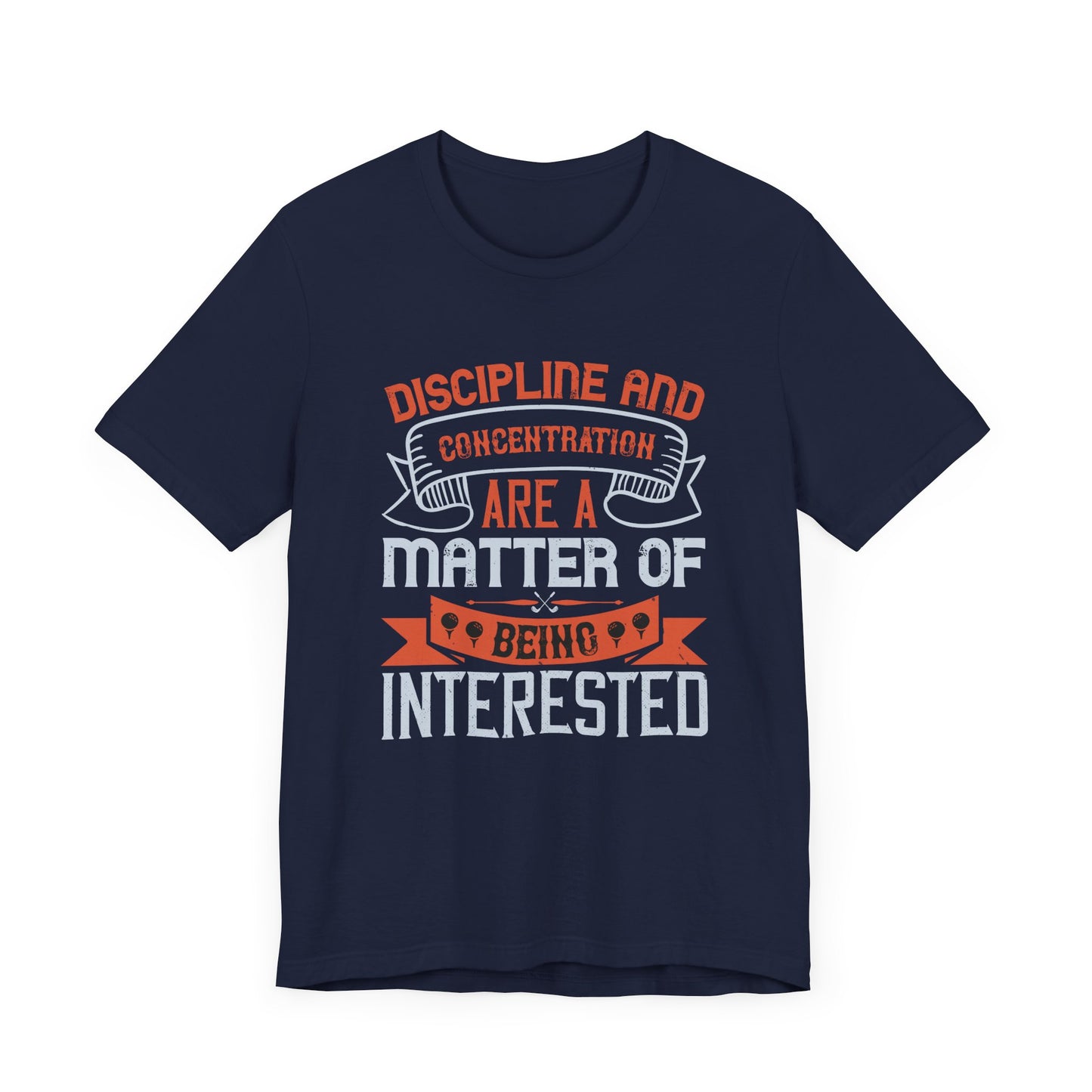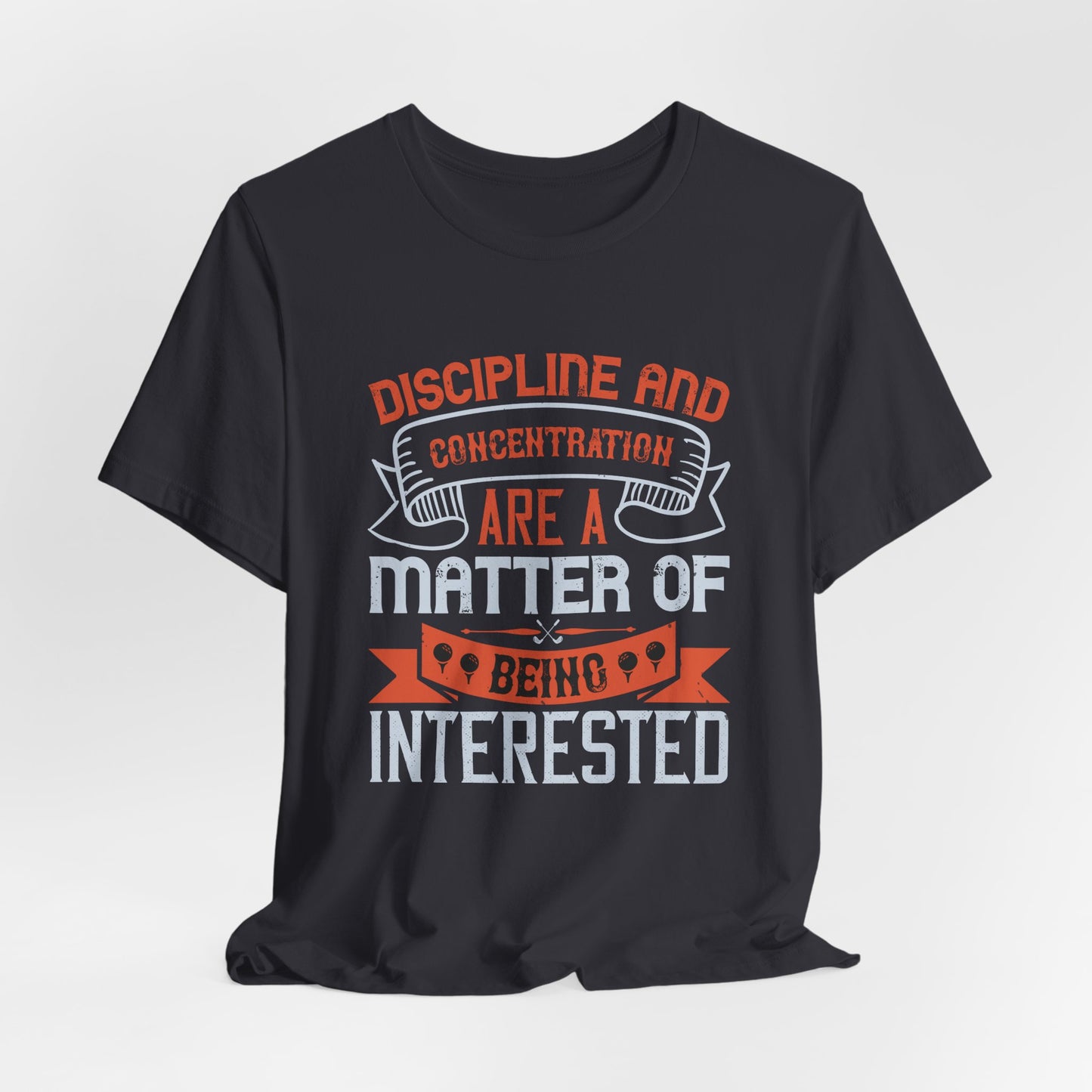 Show your dedication to the game with our "Golf: Discipline and Concentration Are a Matter of Being Interested" tee. This shirt is designed for golfers who understand that true discipline and focus on the course come from a genuine passion and interest in the game.