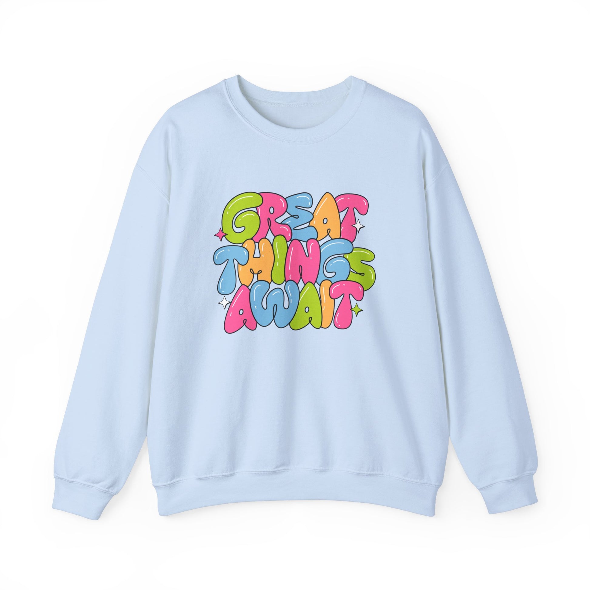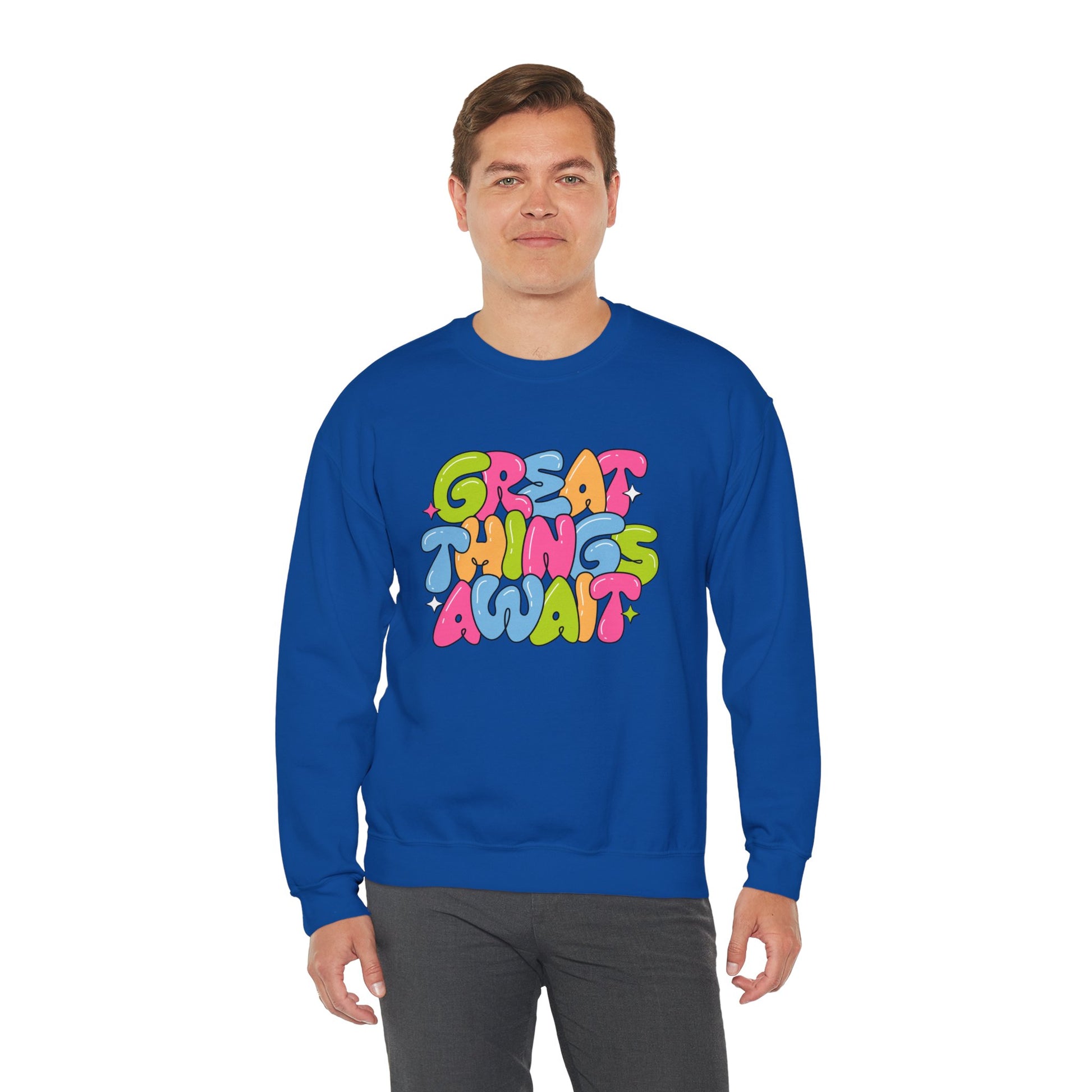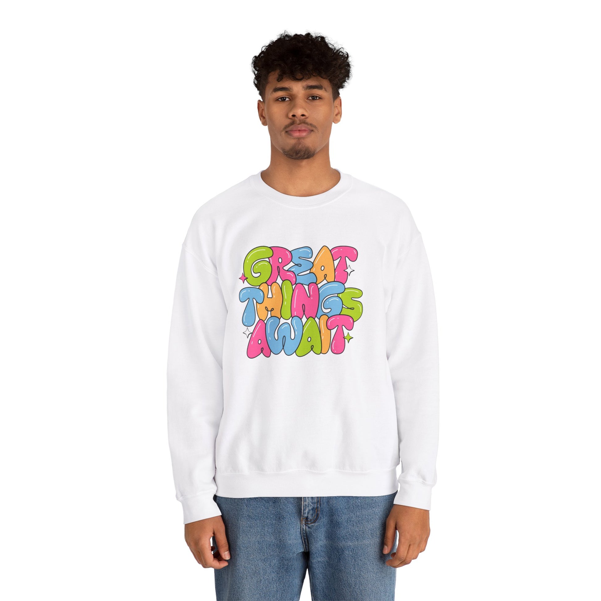 Get ready to embrace your potential with our "Great Things Await" unisex heavy blend crewneck sweatshirt! This inspirational piece is designed for dreamers, doers, and believers who know that the future is full of possibilities. Crafted from soft, high-quality fabric, this sweatshirt offers the perfect blend of comfort and style, making it an ideal choice for everyday wear or a cozy night in.