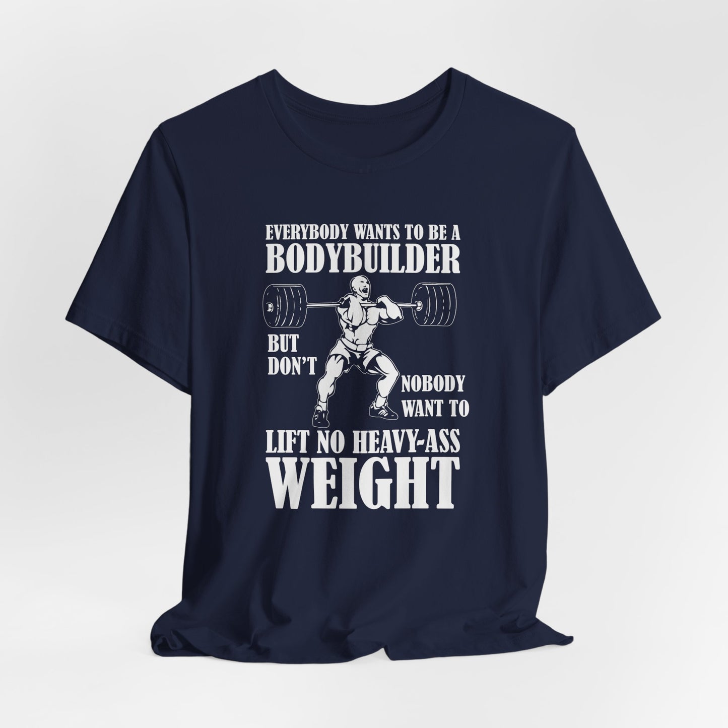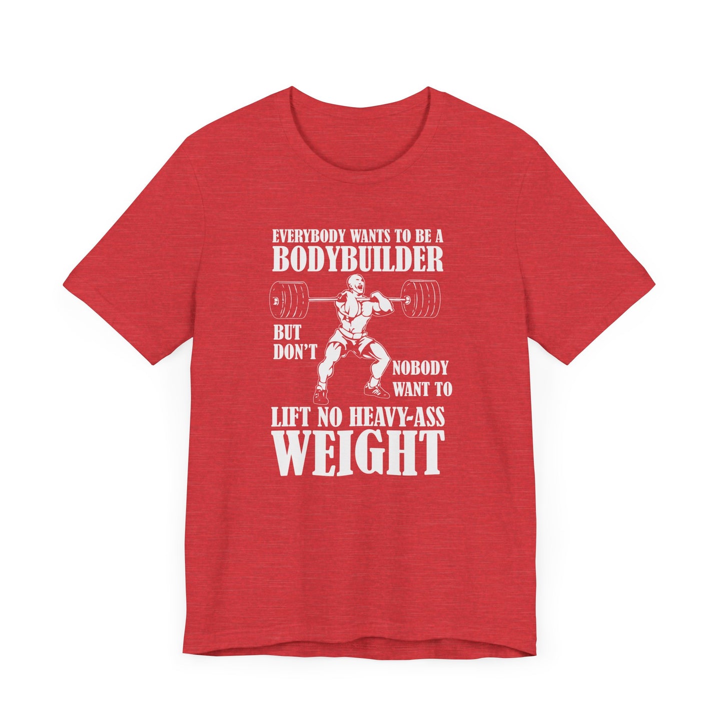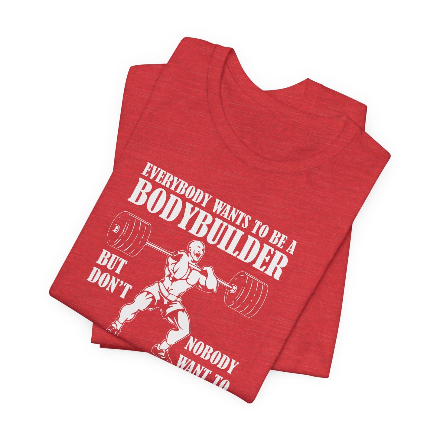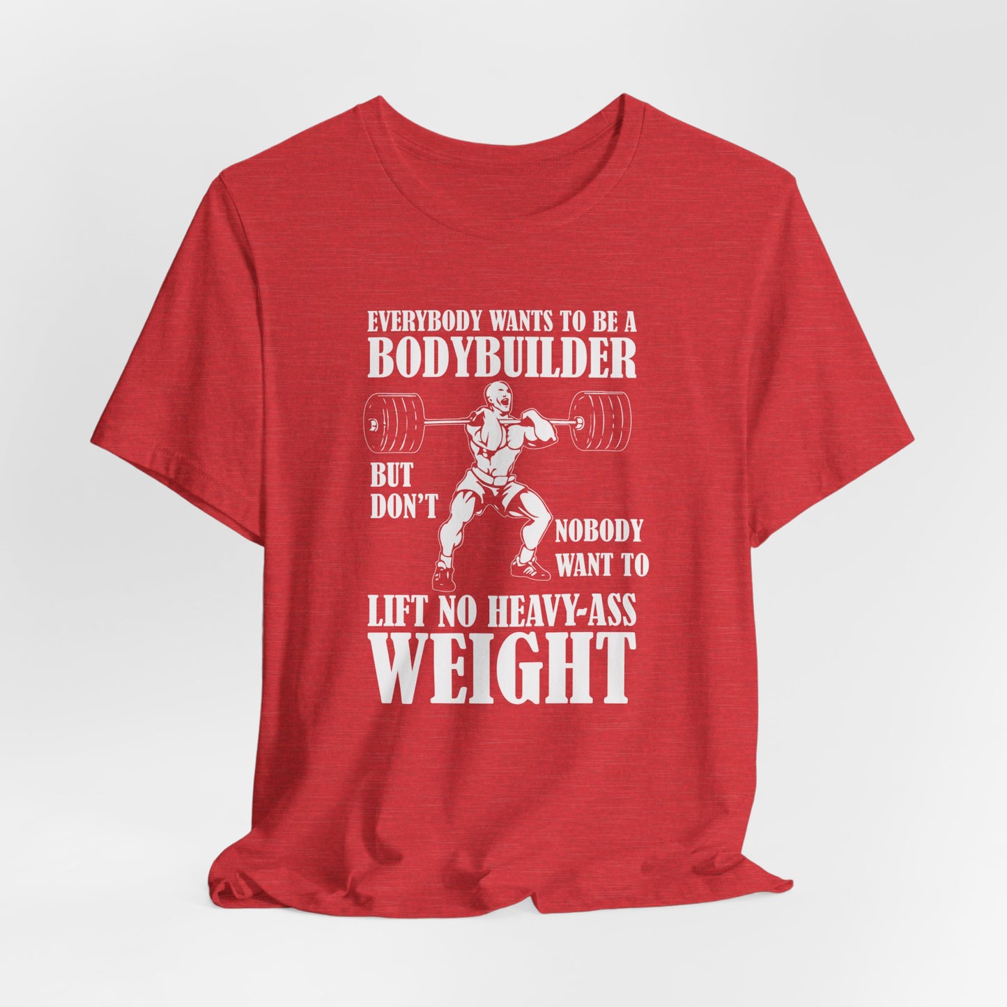 Embrace the true essence of lifting with our "Gym: Everybody Wants To Be A Bodybuilder, But Nobody Wants To Lift Heavy Stuff" Unisex Jersey Short Sleeve Tee. This tee is for those who understand the dedication and effort required to achieve real strength and muscle.