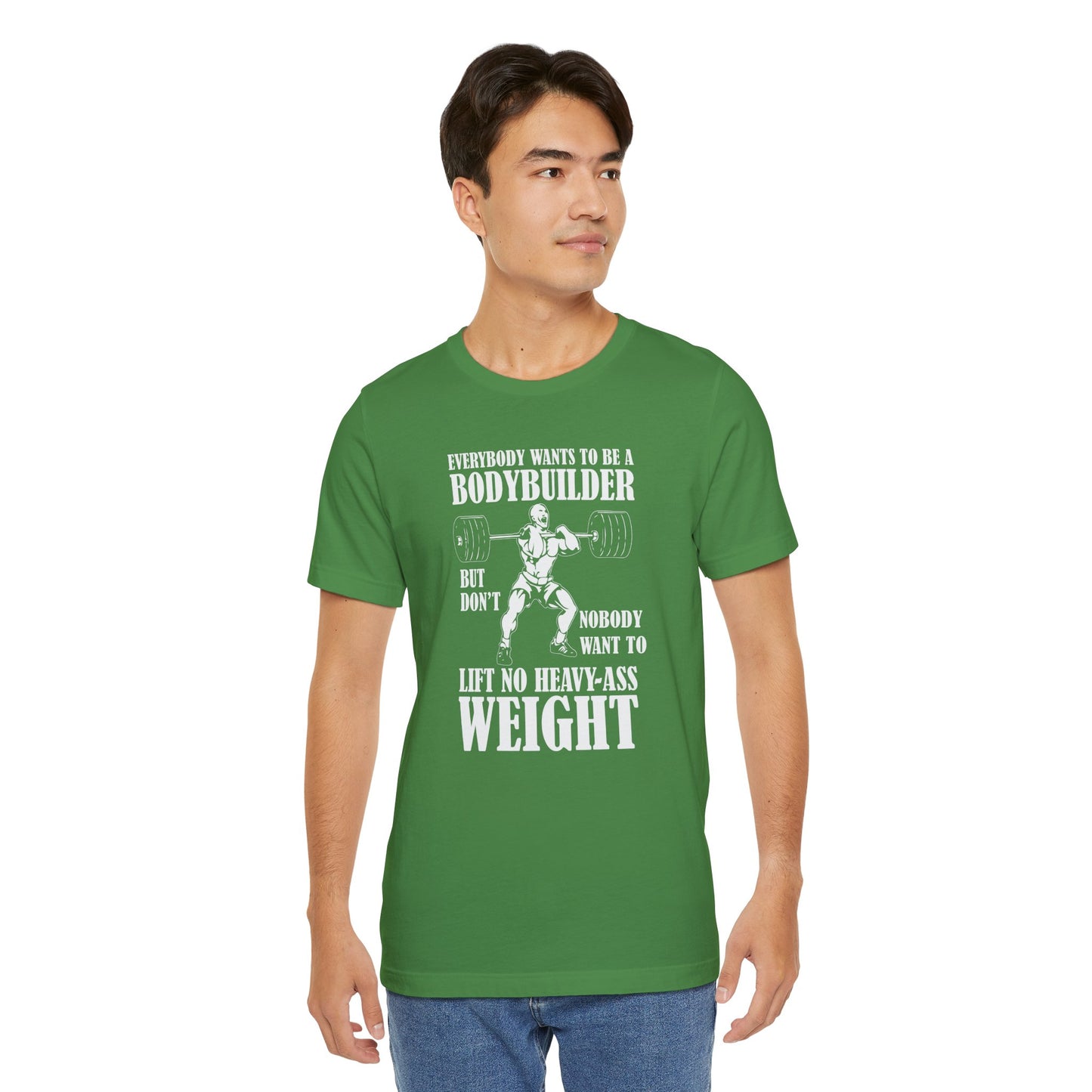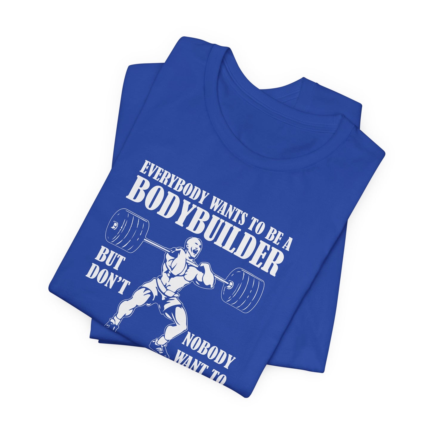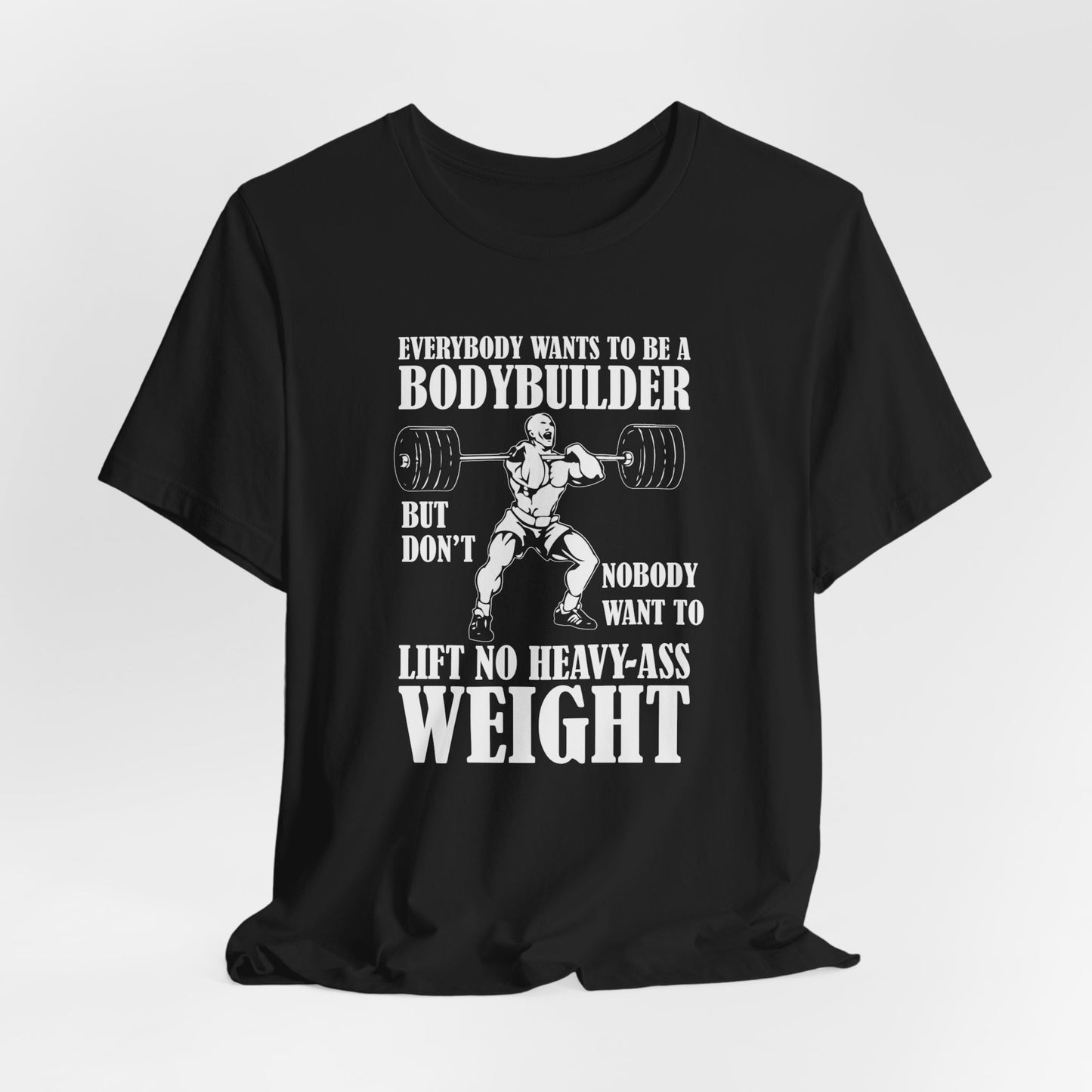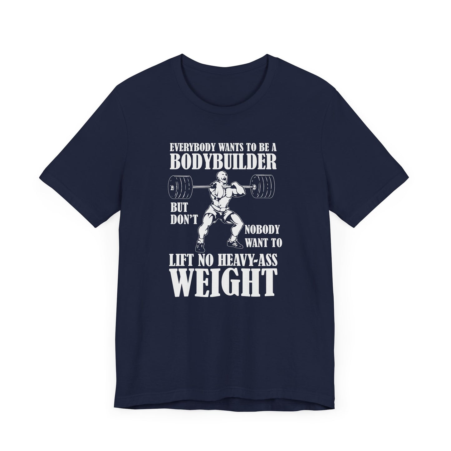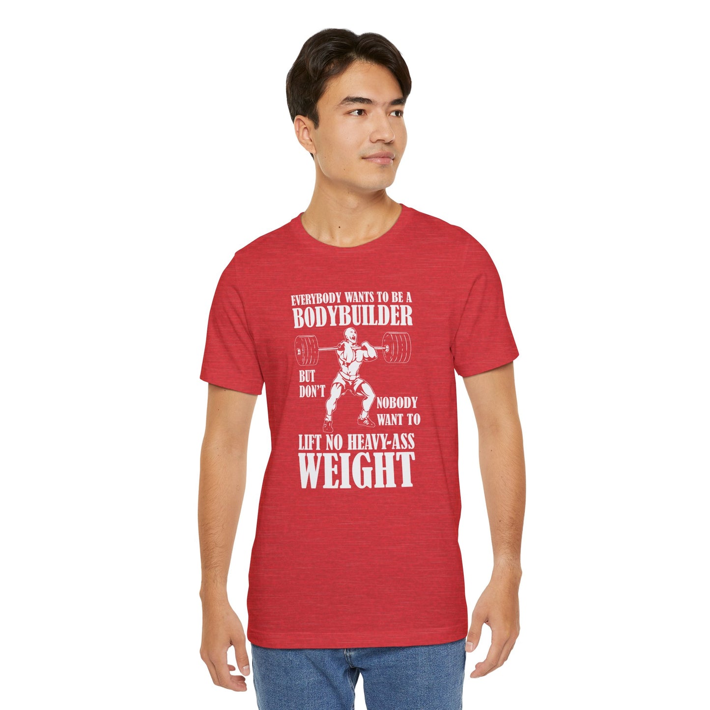 Embrace the true essence of lifting with our "Gym: Everybody Wants To Be A Bodybuilder, But Nobody Wants To Lift Heavy Stuff" Unisex Jersey Short Sleeve Tee. This tee is for those who understand the dedication and effort required to achieve real strength and muscle.