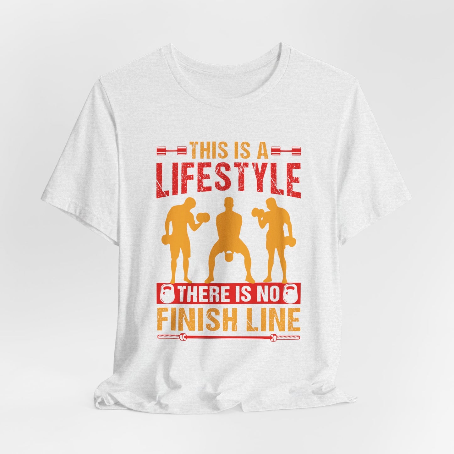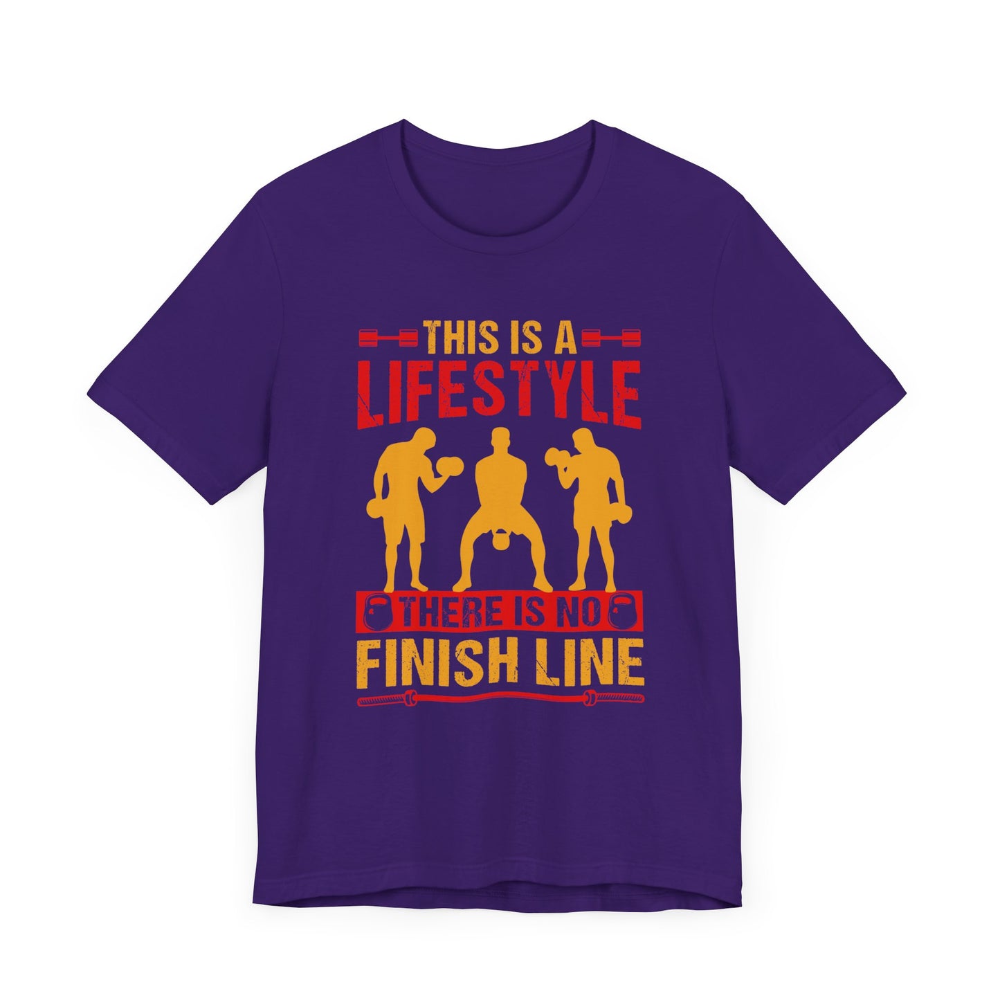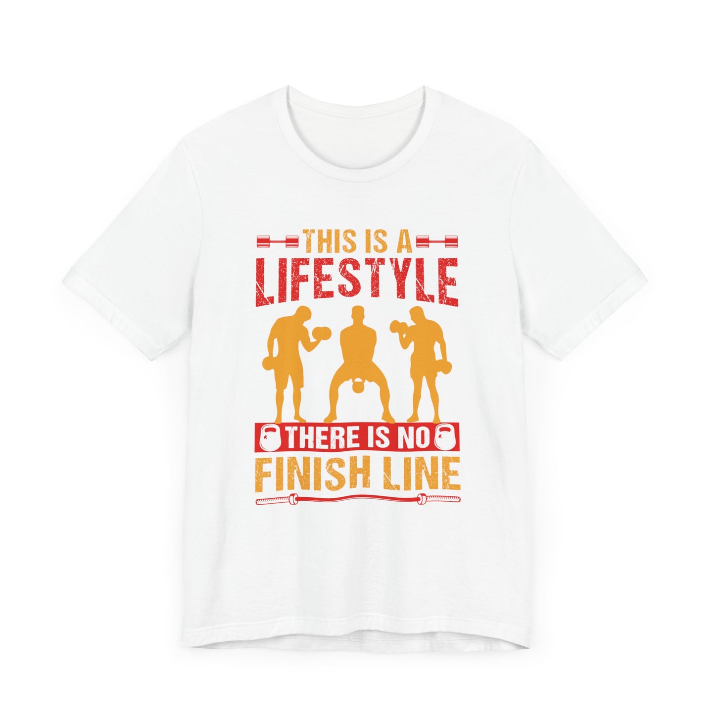Embody the fitness lifestyle with our "Gym: This Is A Lifestyle. There Is No Finish Line" Unisex Jersey Short Sleeve Tee, designed for those who embrace fitness as a lifelong journey of self-improvement.