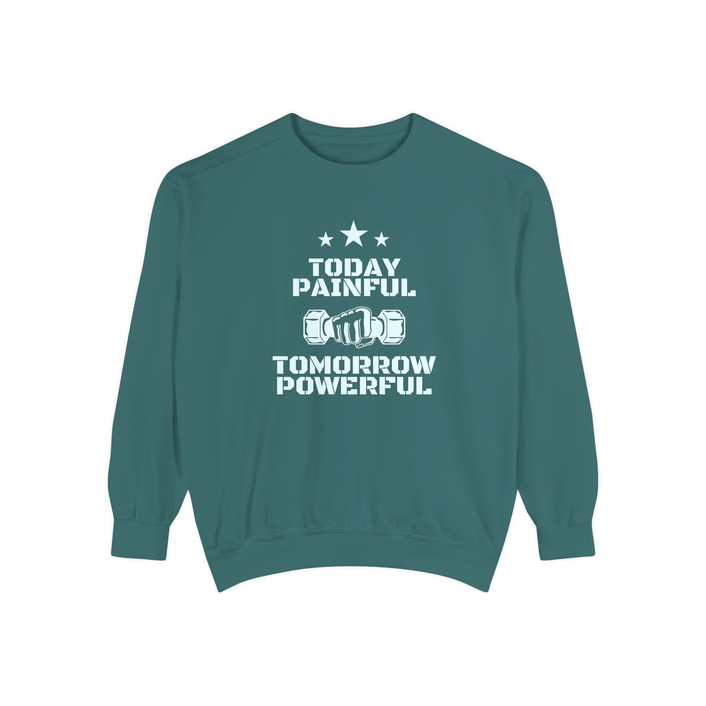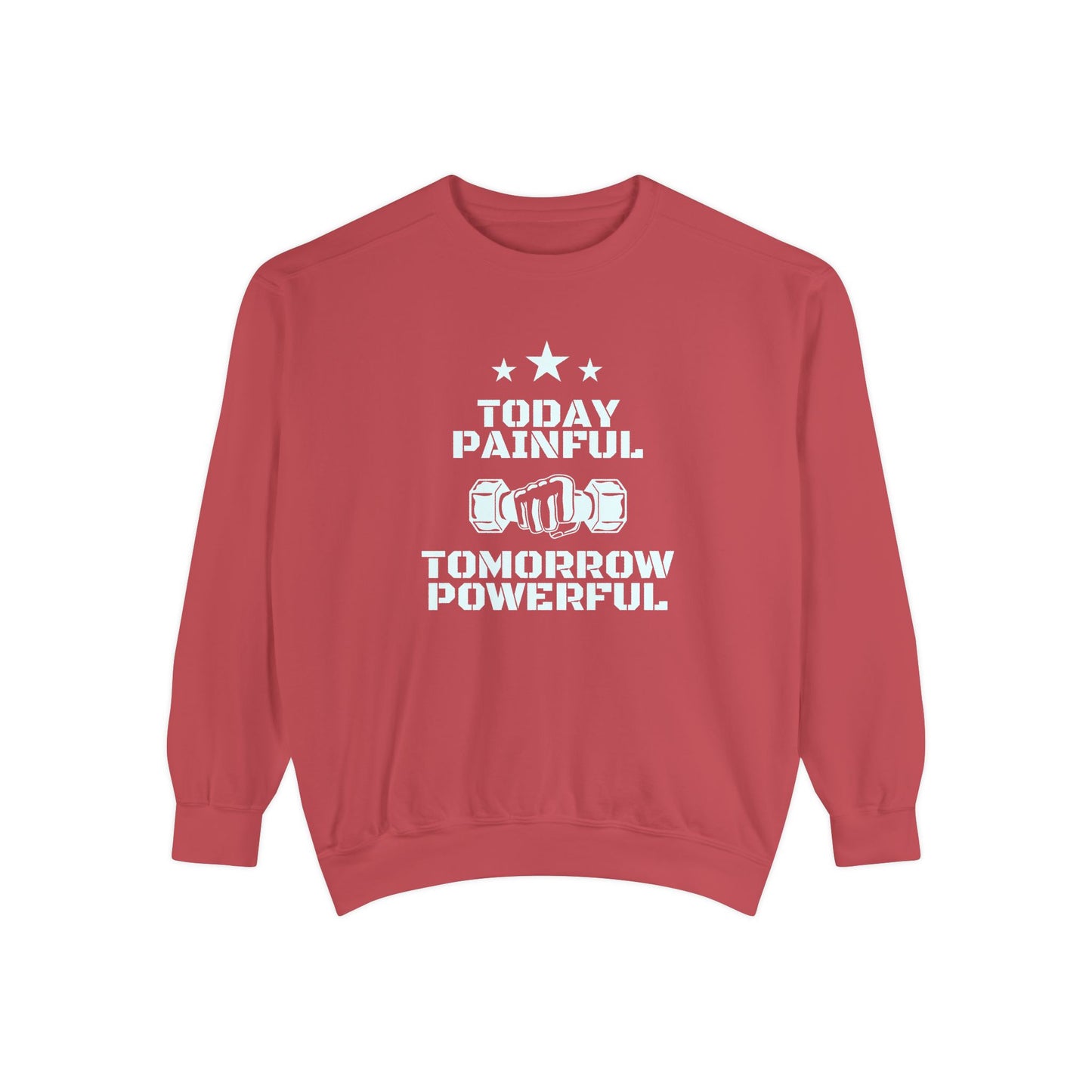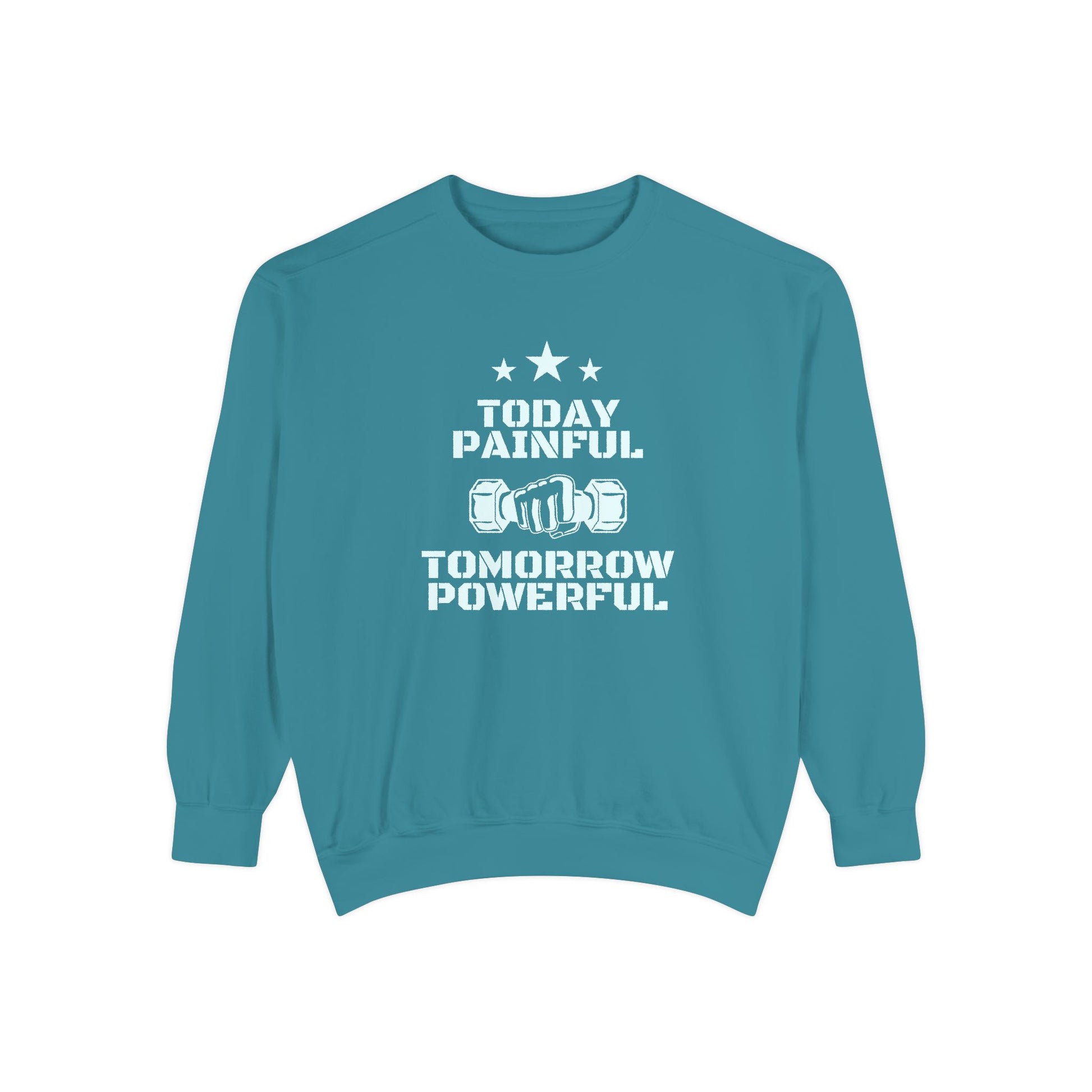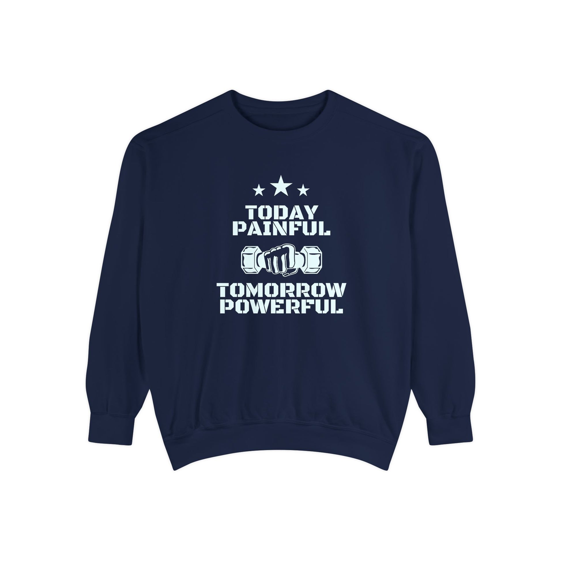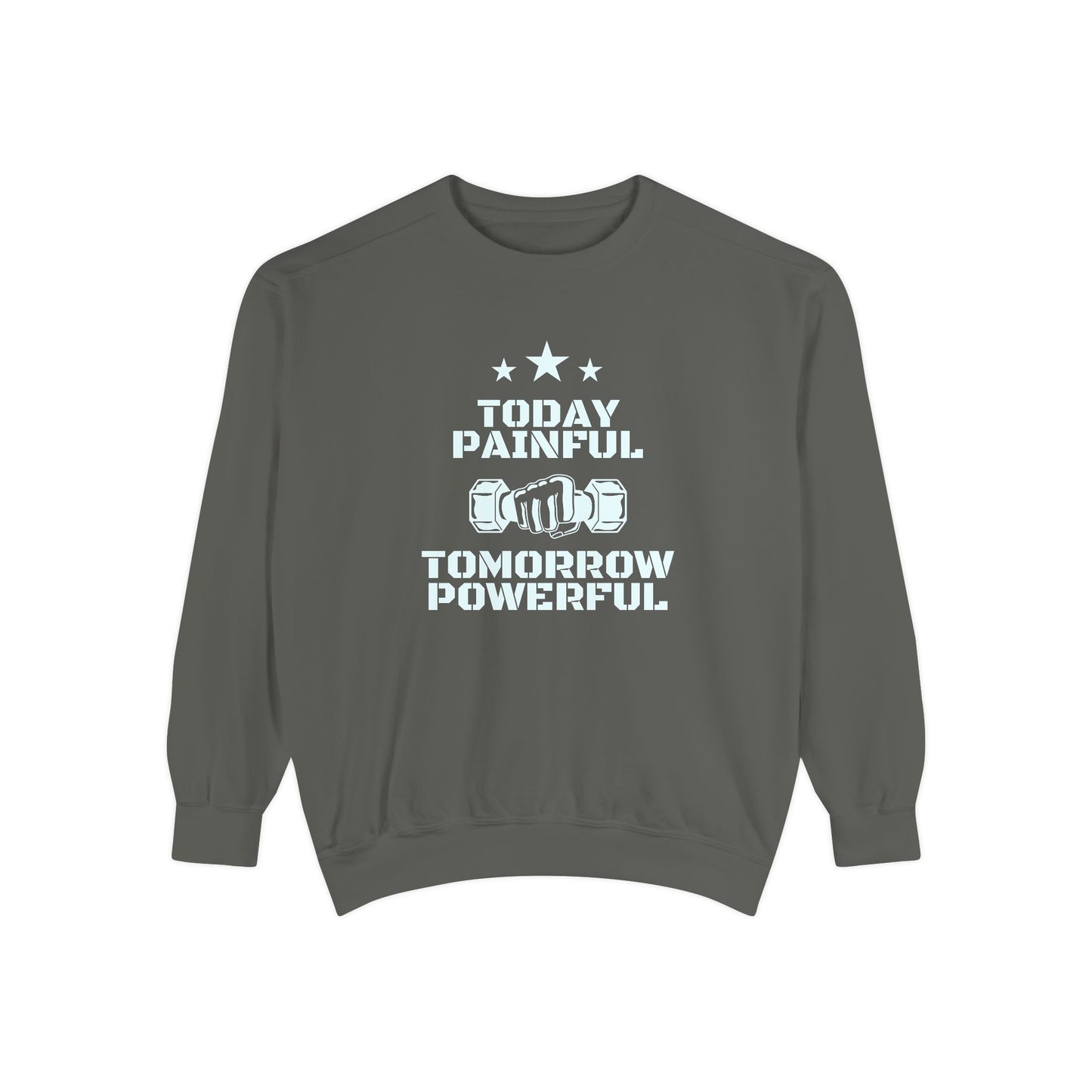 Push through the pain and embrace the power with the Today Painful, Tomorrow Powerful Sweatshirt! This unisex garment-dyed sweatshirt is designed for fitness enthusiasts who know that today’s hard work leads to tomorrow’s triumphs.