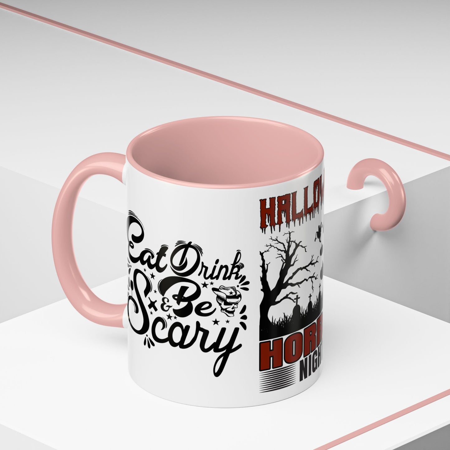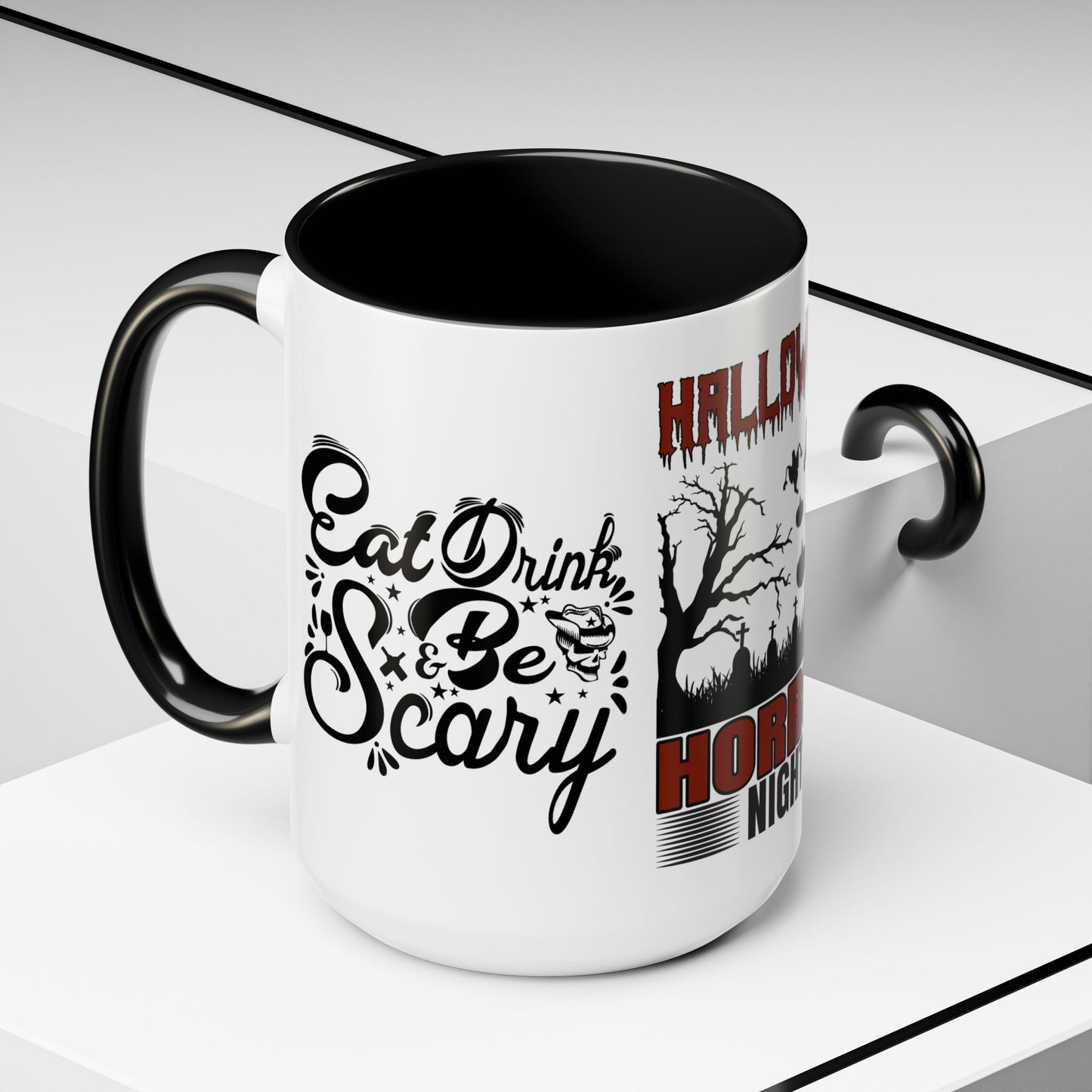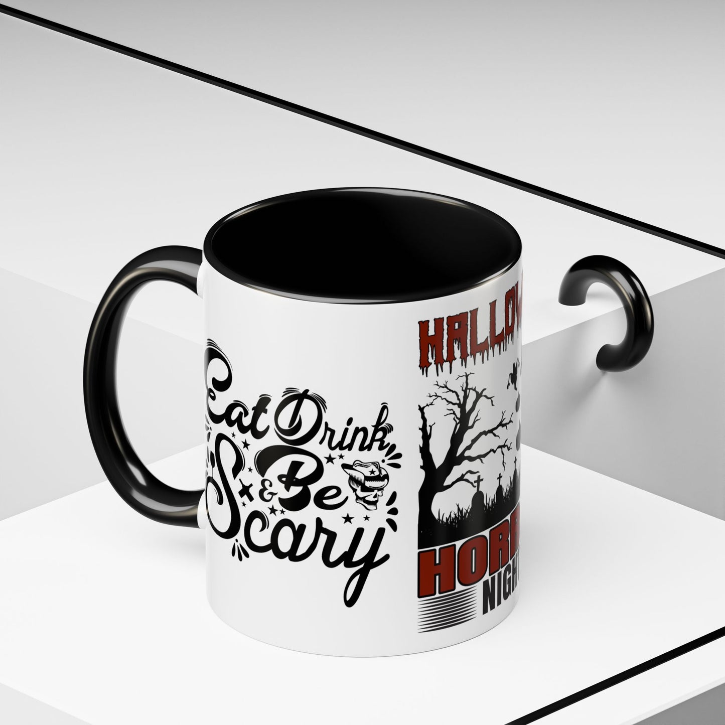 Embrace the thrills and chills of the Halloween season with the Halloween Horror Night accent coffee mug. Grab yours today and let every sip remind you of spooky nights and festive fun!