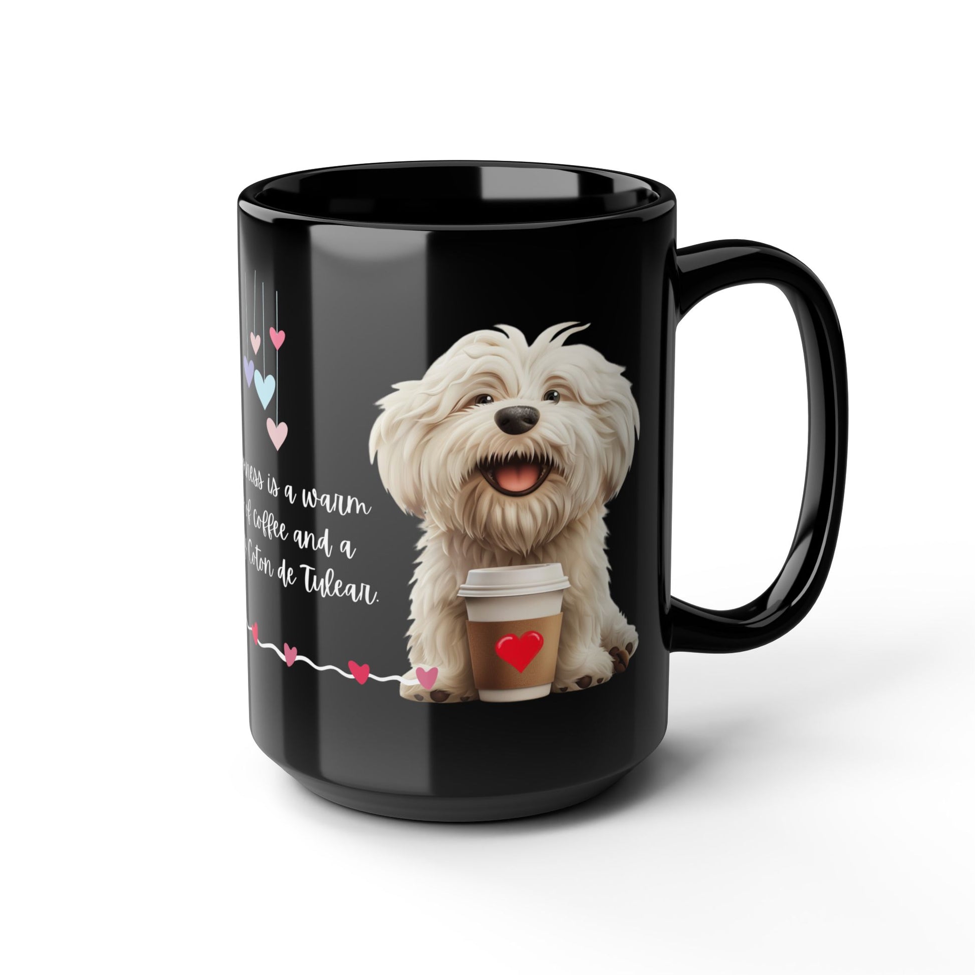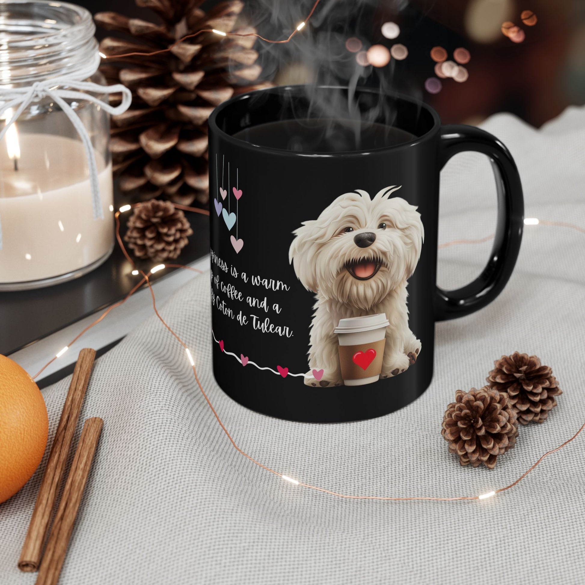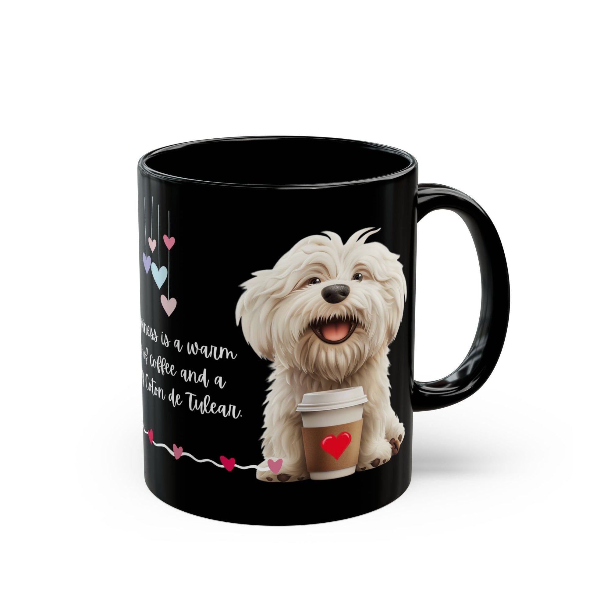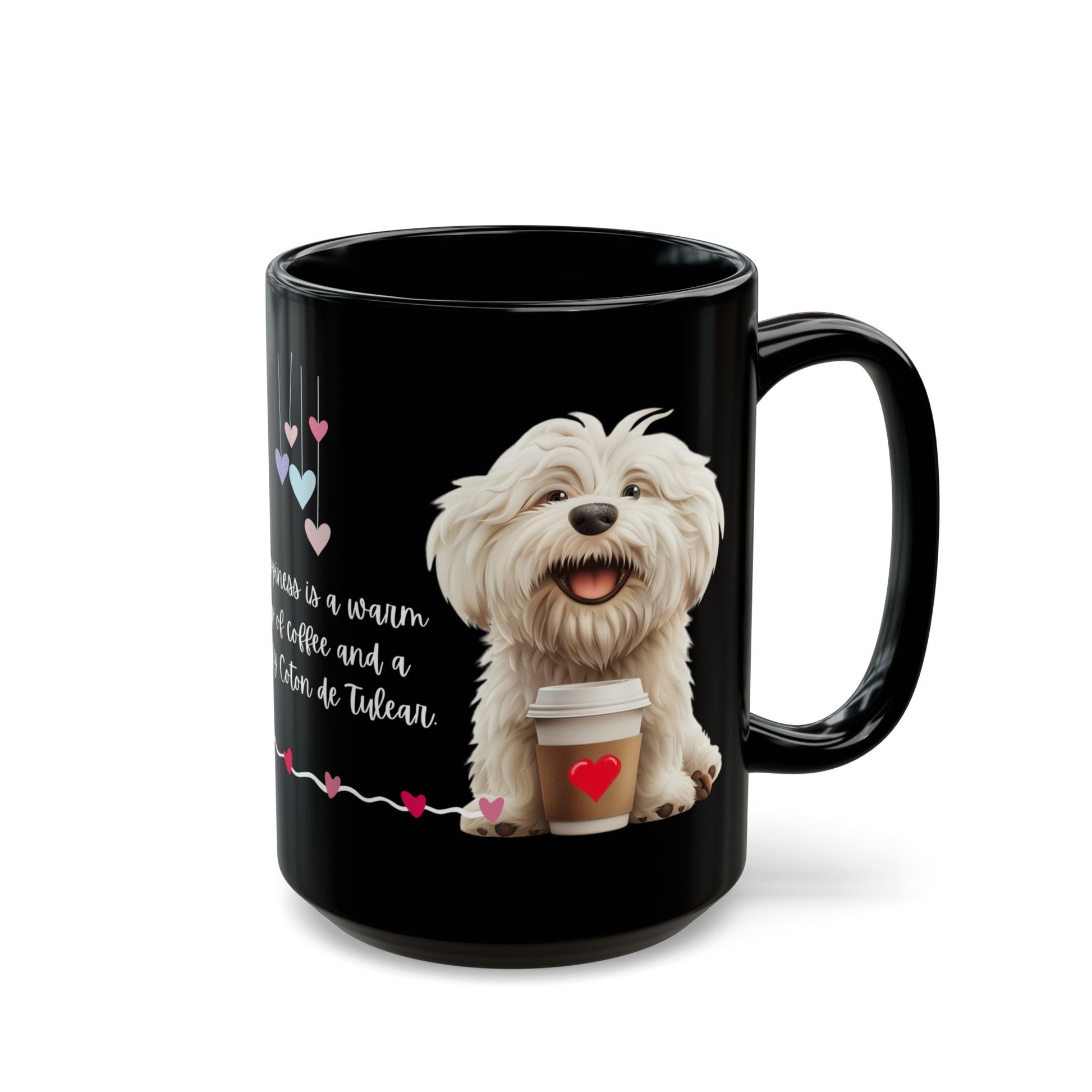Happiness is a Warm Cup of Coffee and a Fluffy Coton de Tulear - Black Mug (11oz, 15oz) - 10653