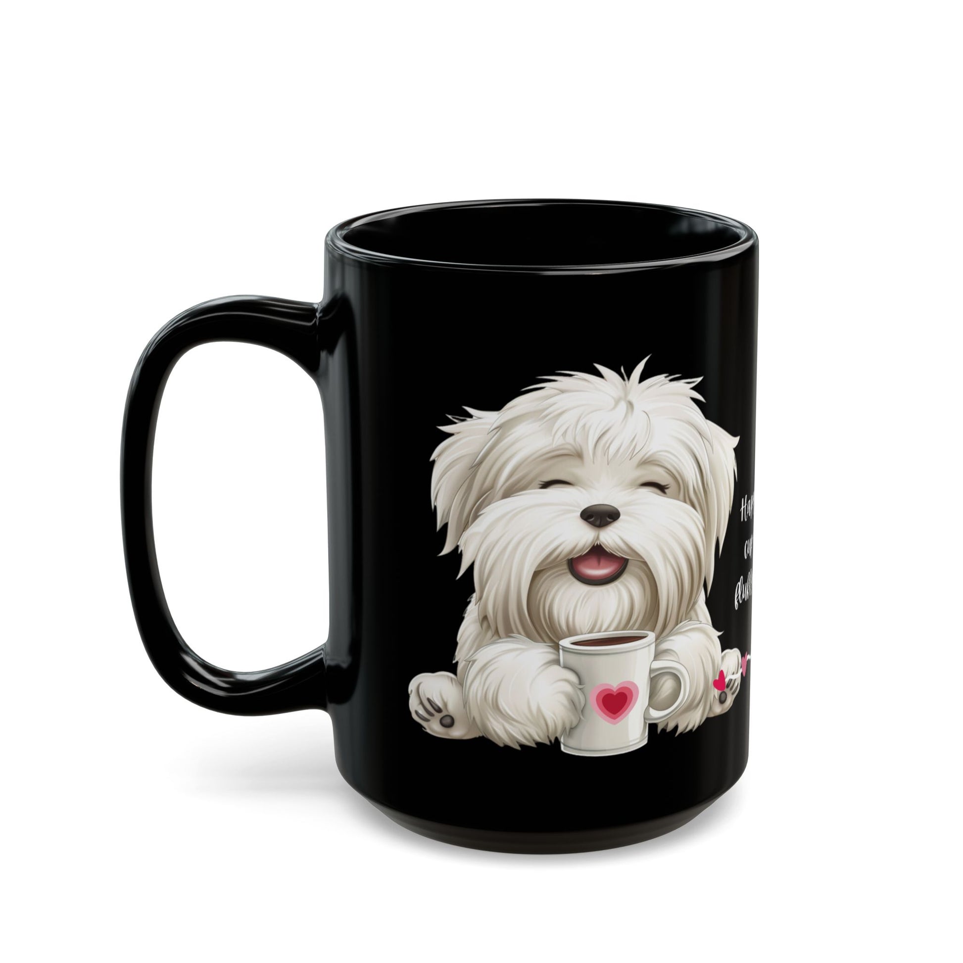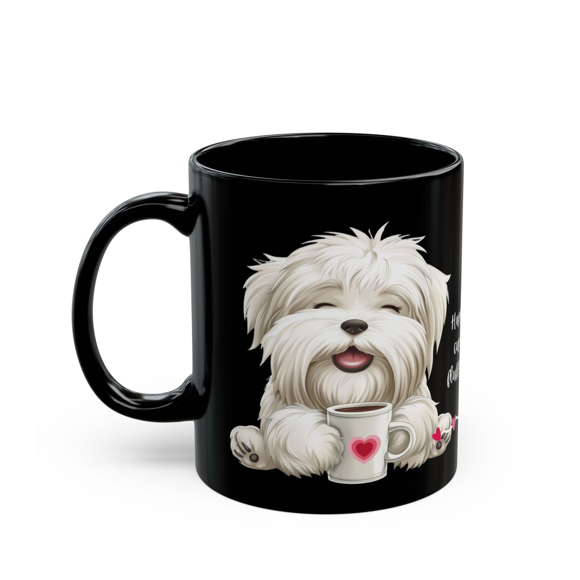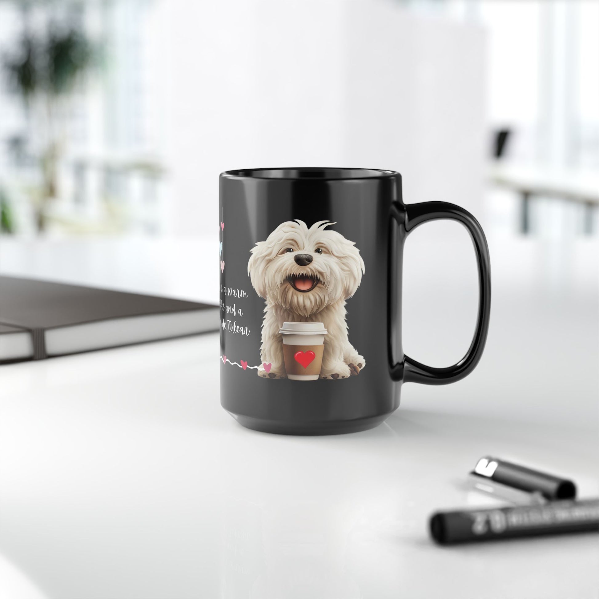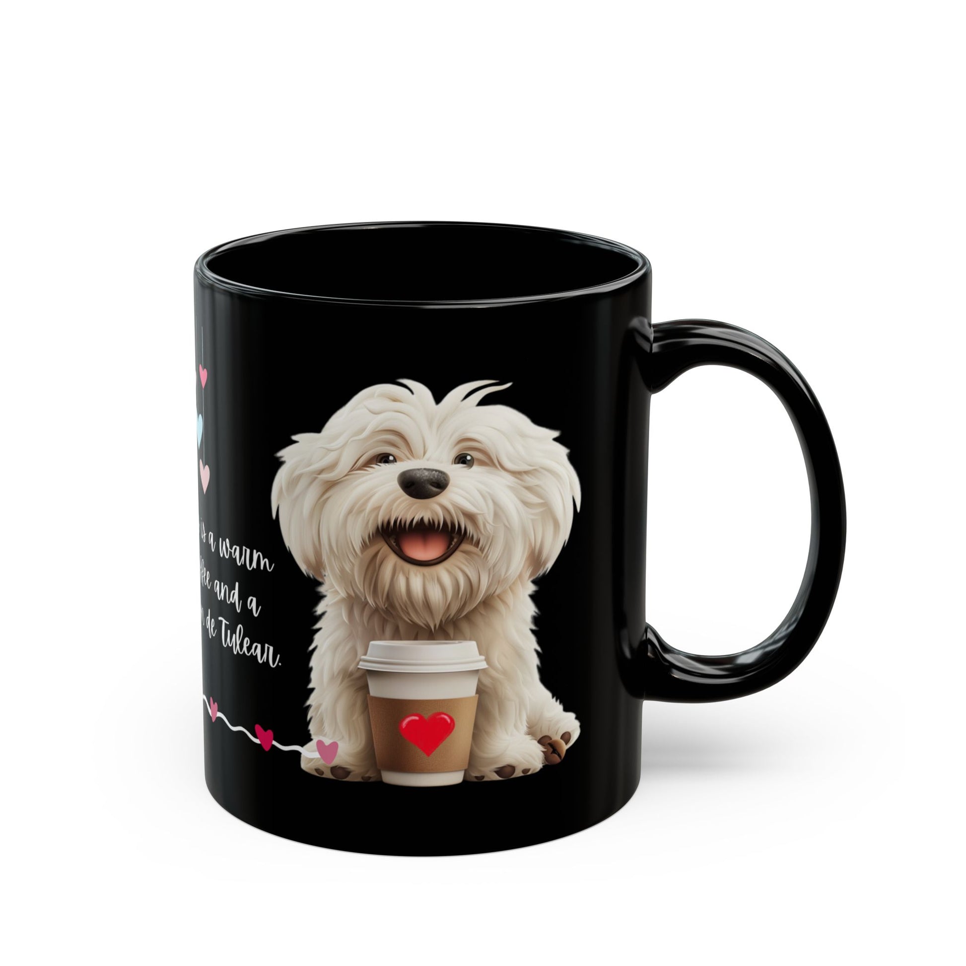 Happiness is a Warm Cup of Coffee and a Fluffy Coton de Tulear - Black Mug (11oz, 15oz) - 10653