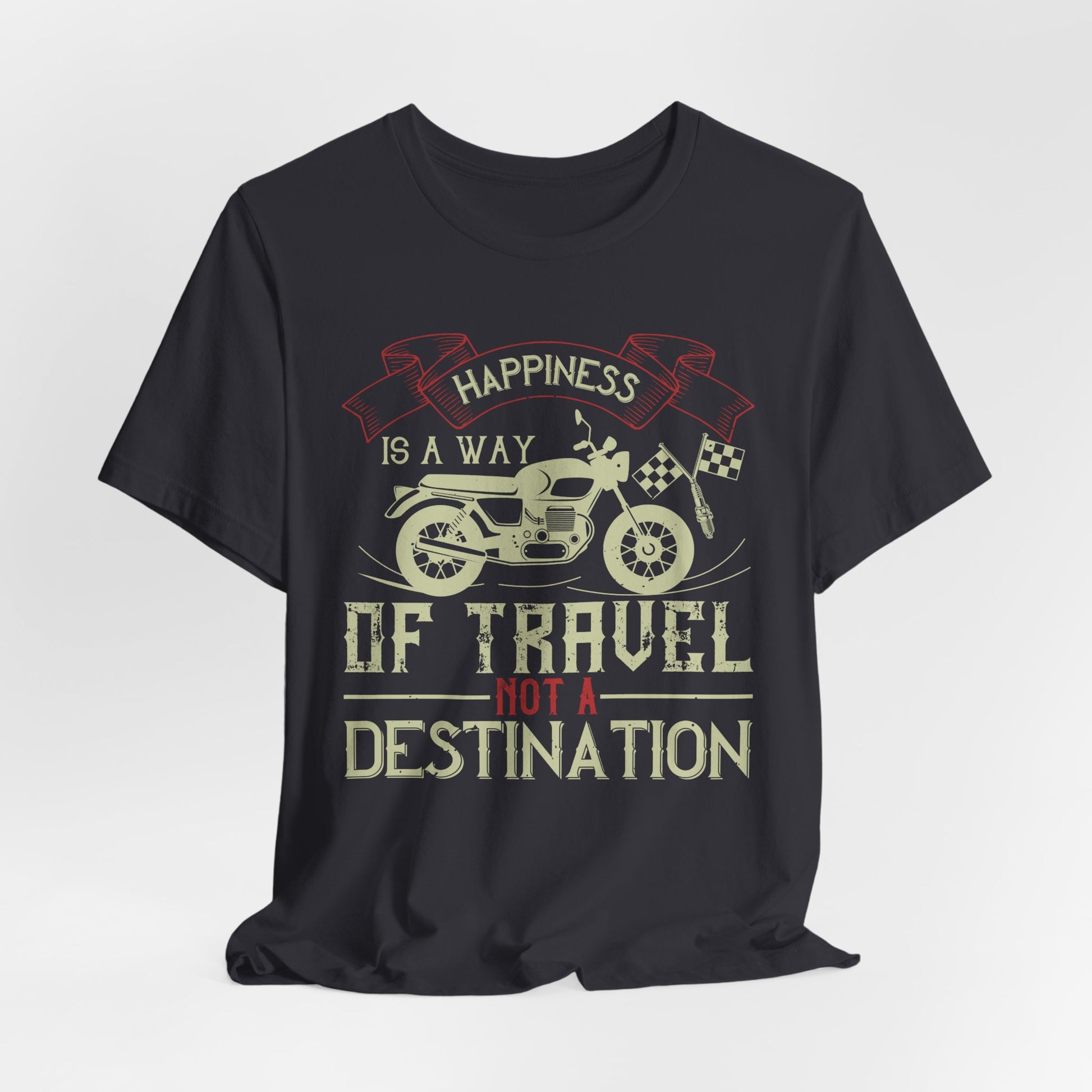 Celebrate the adventures that life has to offer with the Happiness Is a Way of Travel, Not a Destination tee. Order yours today and wear your love for exploration proudly!