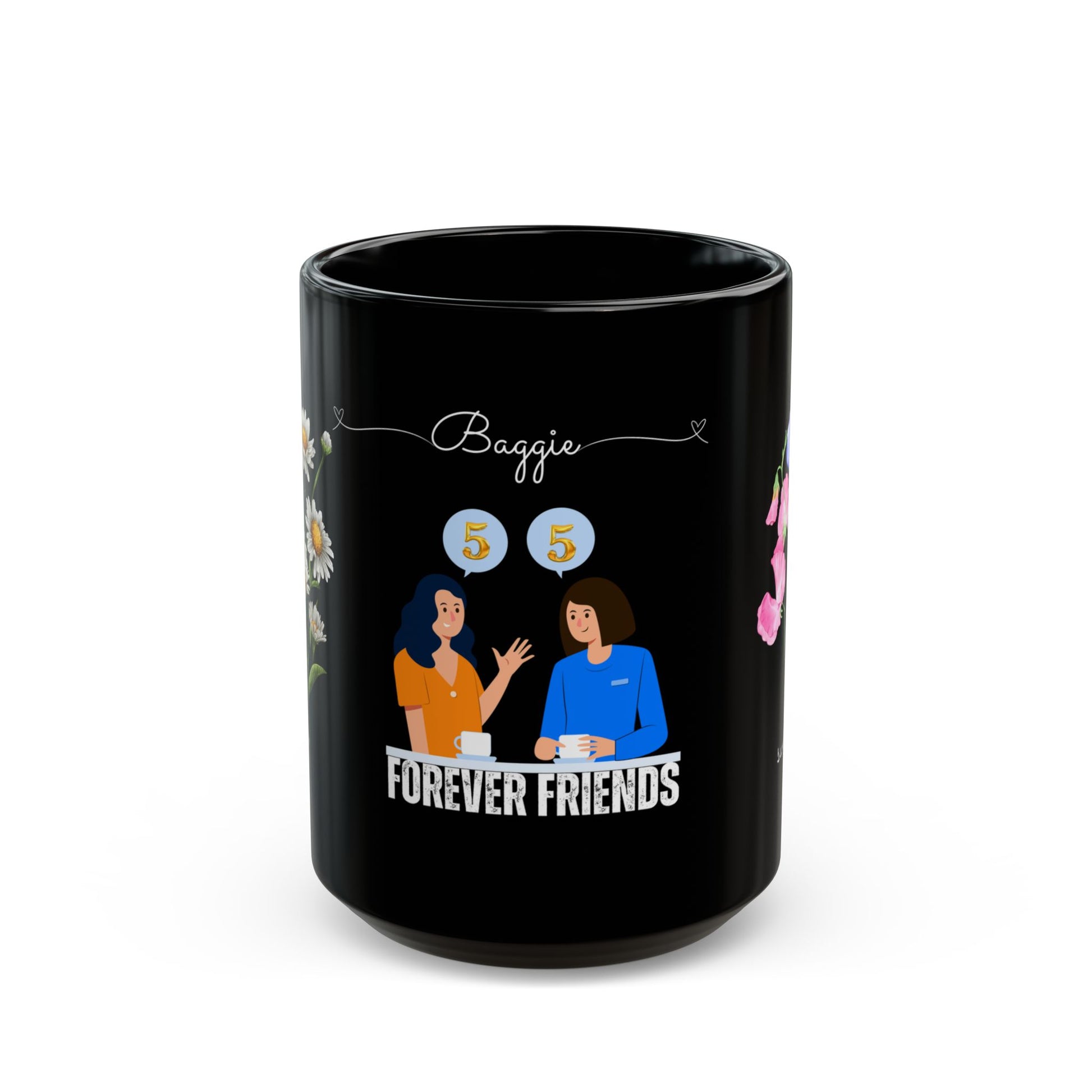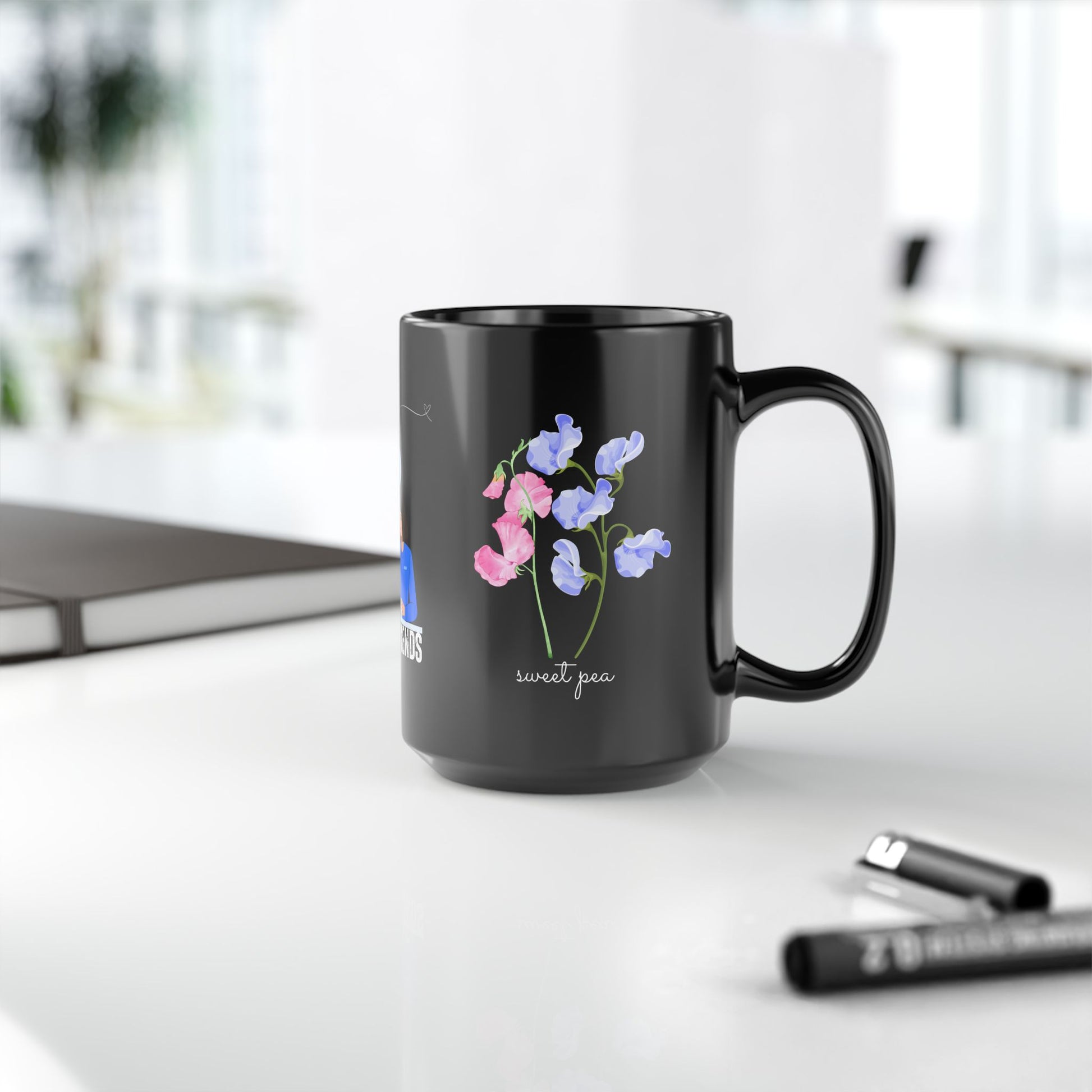 Happy Birthday, April, Featuring Daisy and Sweet Pea - Customizable - Ceramic Black Mug (11oz, 15oz) - 10480