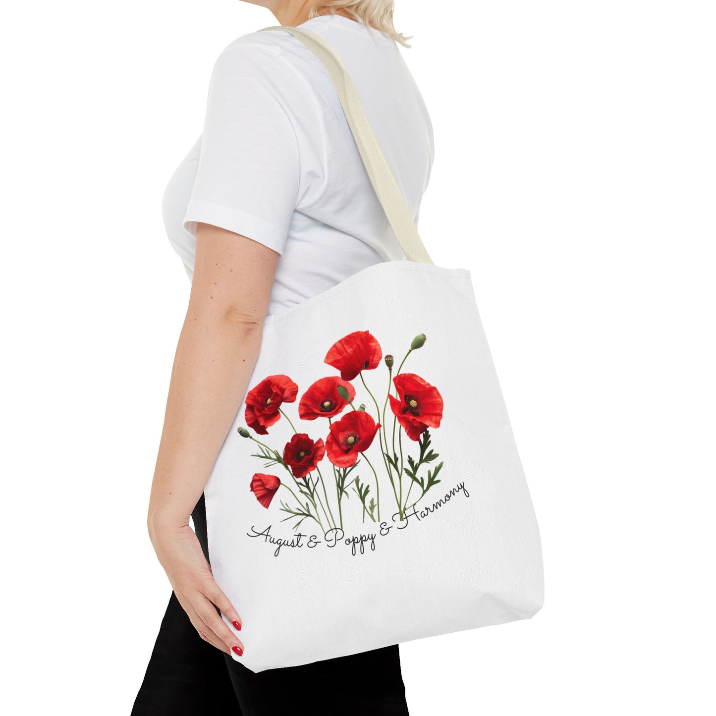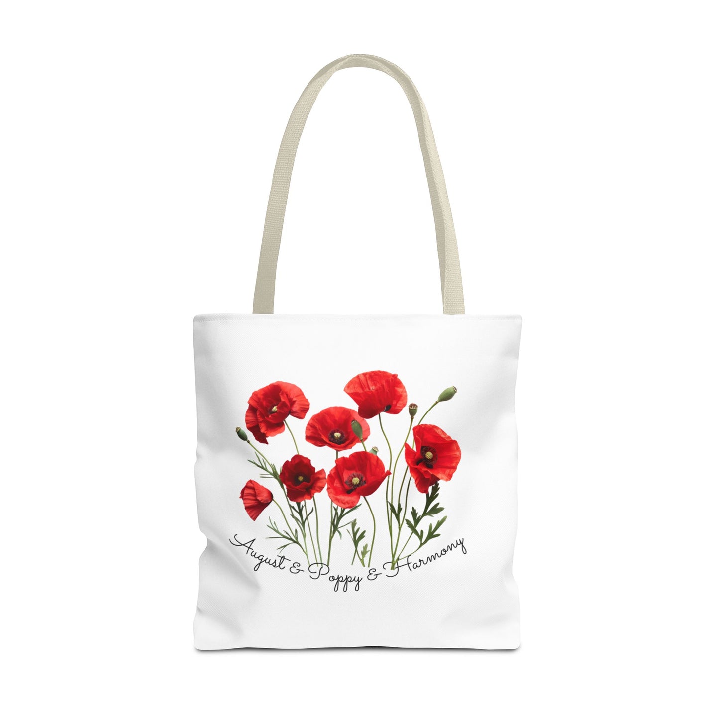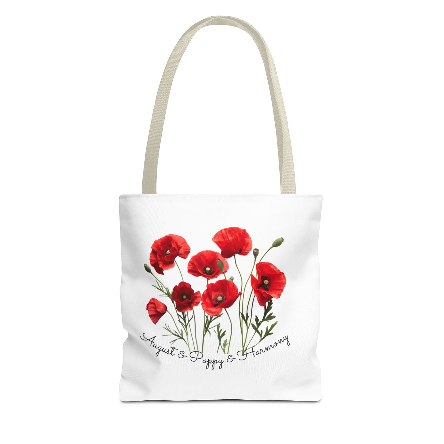 - Beautiful Poppy Design: Featuring a stunning poppy flower graphic, this tote bag captures the essence of August, symbolizing joy, beauty, and resilience.