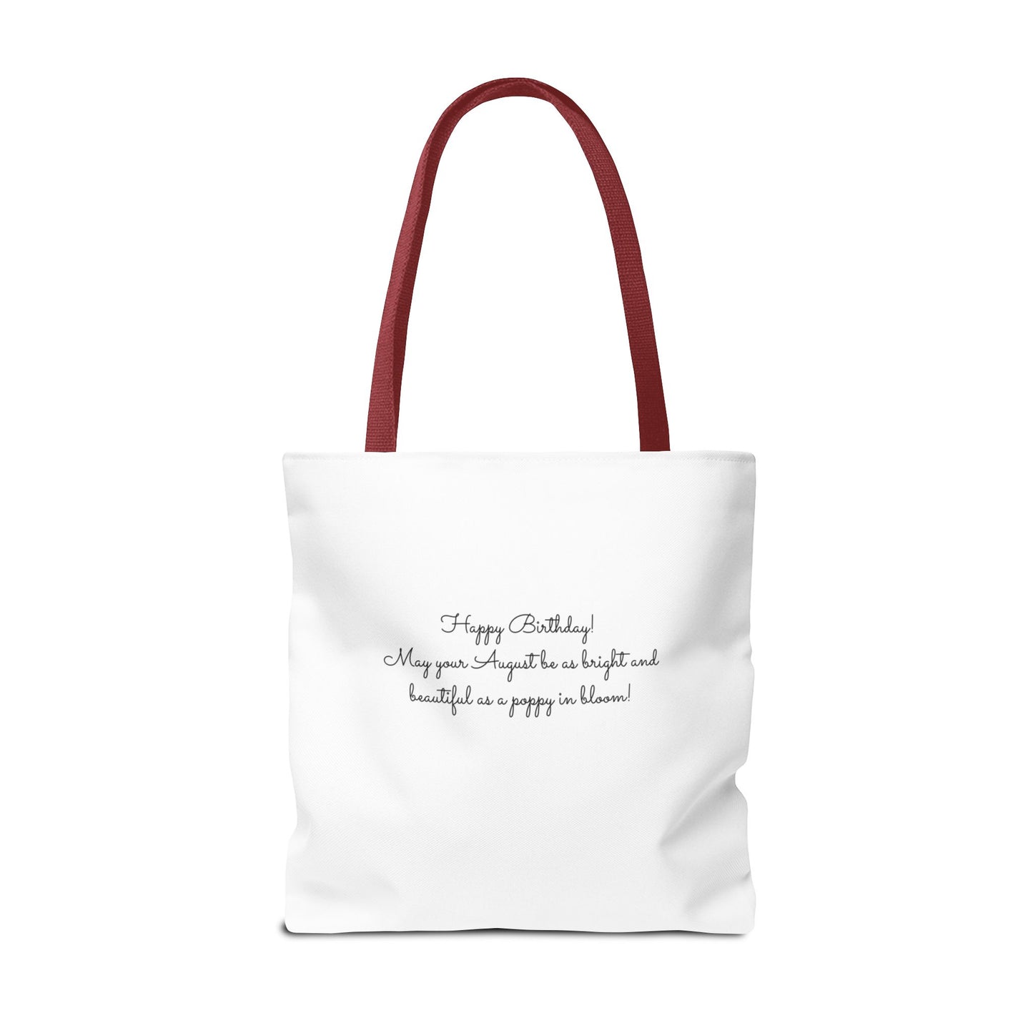 Celebrate in style and practicality with the "Happy Birthday August, Poppy" Tote Bag. Order yours today and give a gift that combines beauty, functionality, and a heartfelt personal touch!