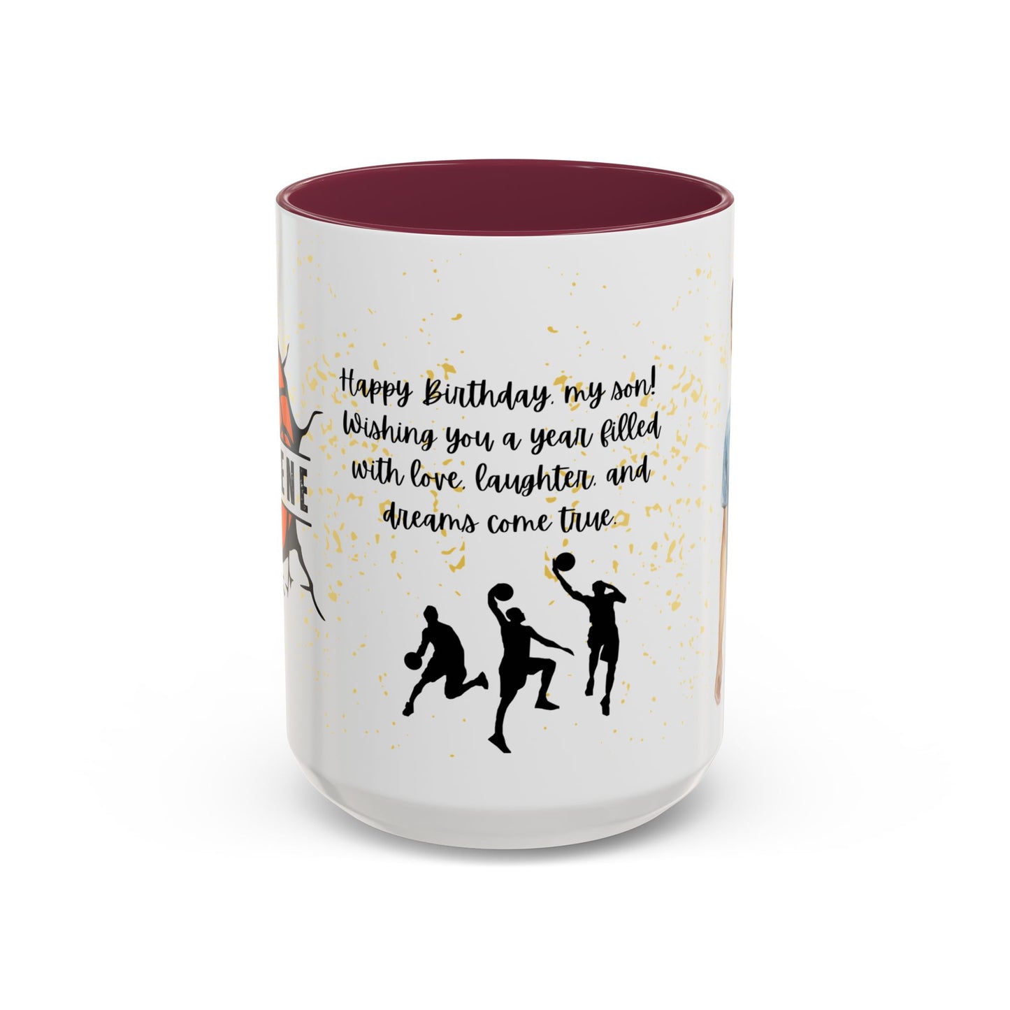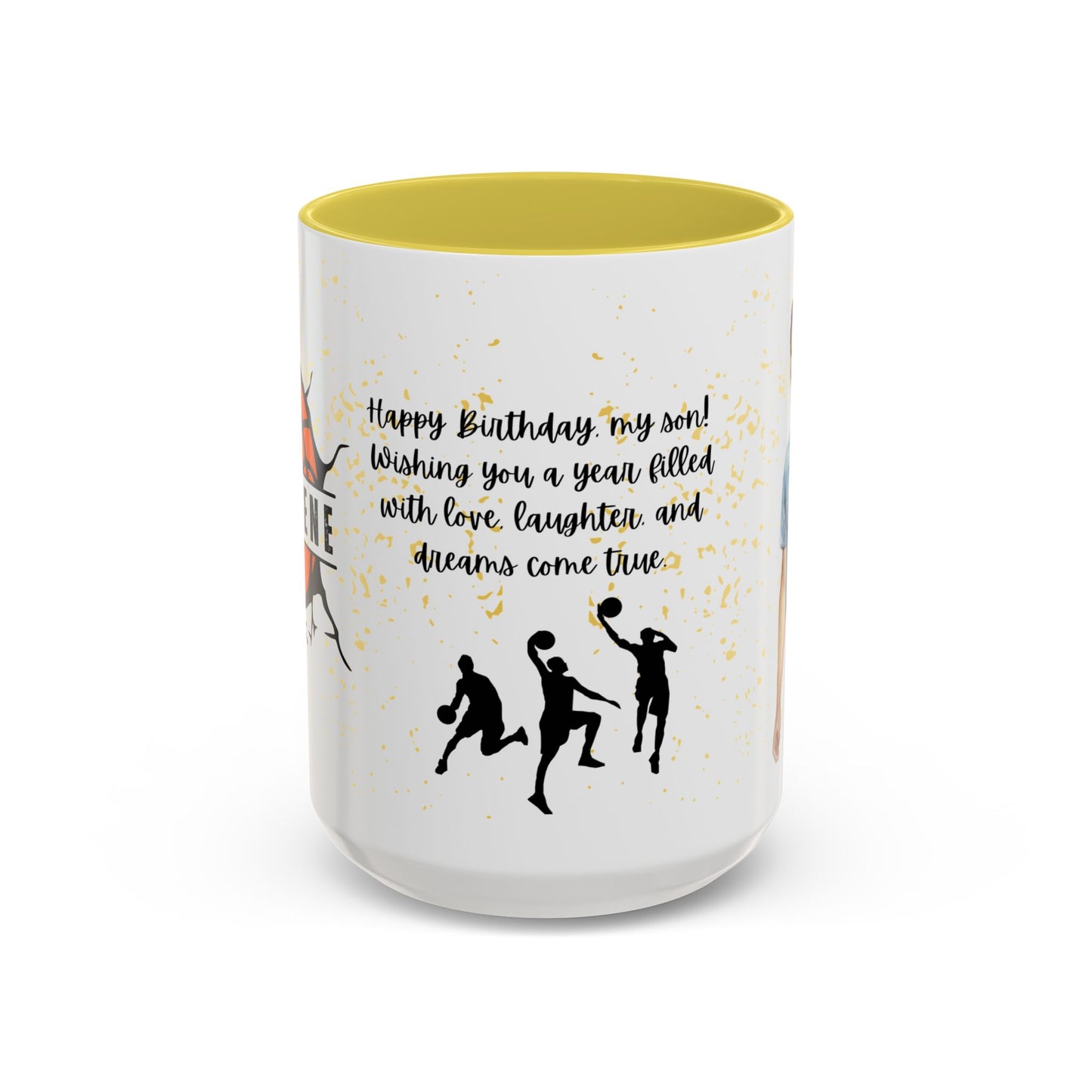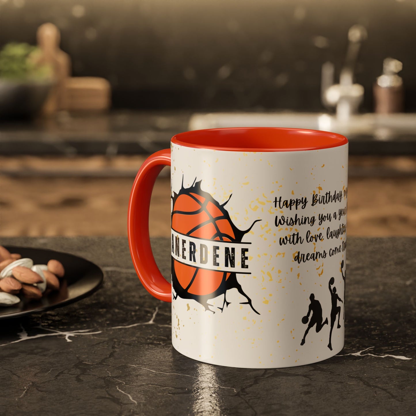 Happy Birthday, Basketball Lover, Customizable - Accent Coffee Mug (11, 15oz) - 10664
