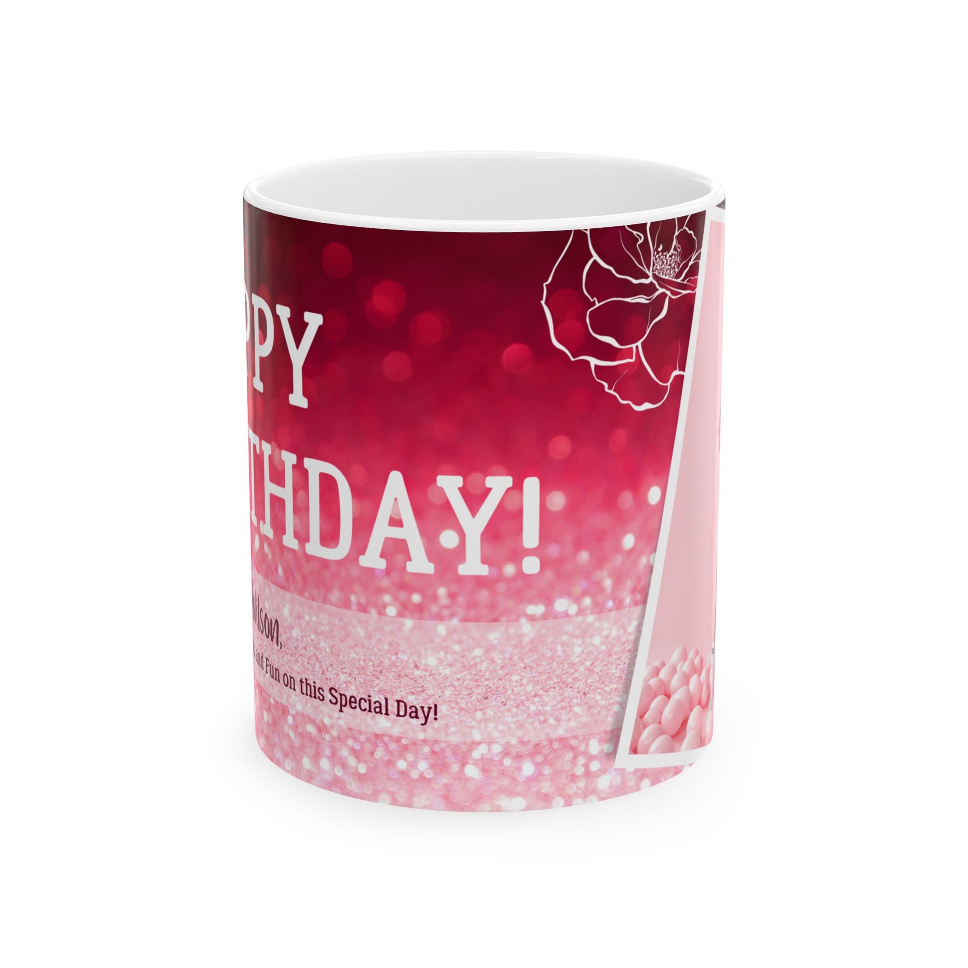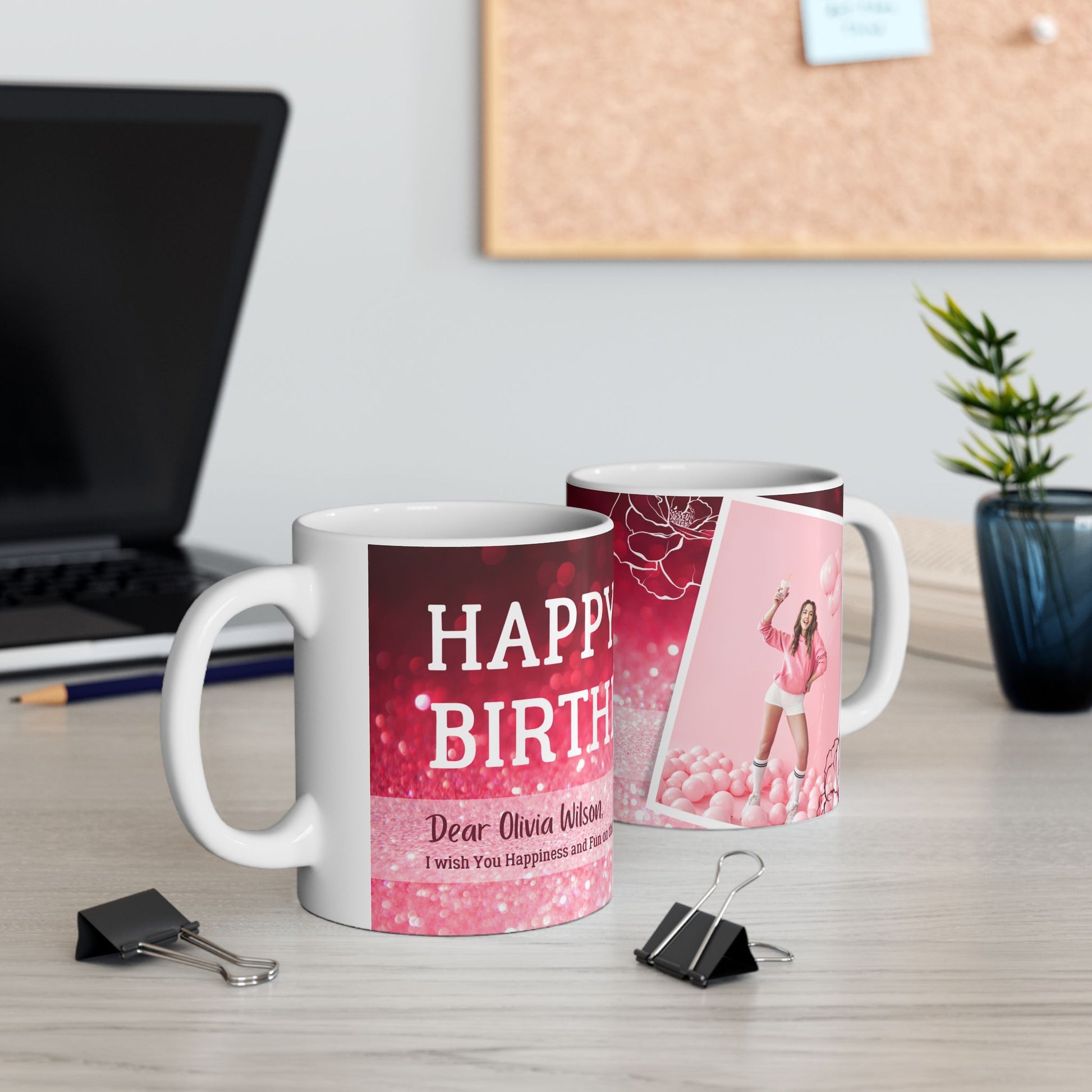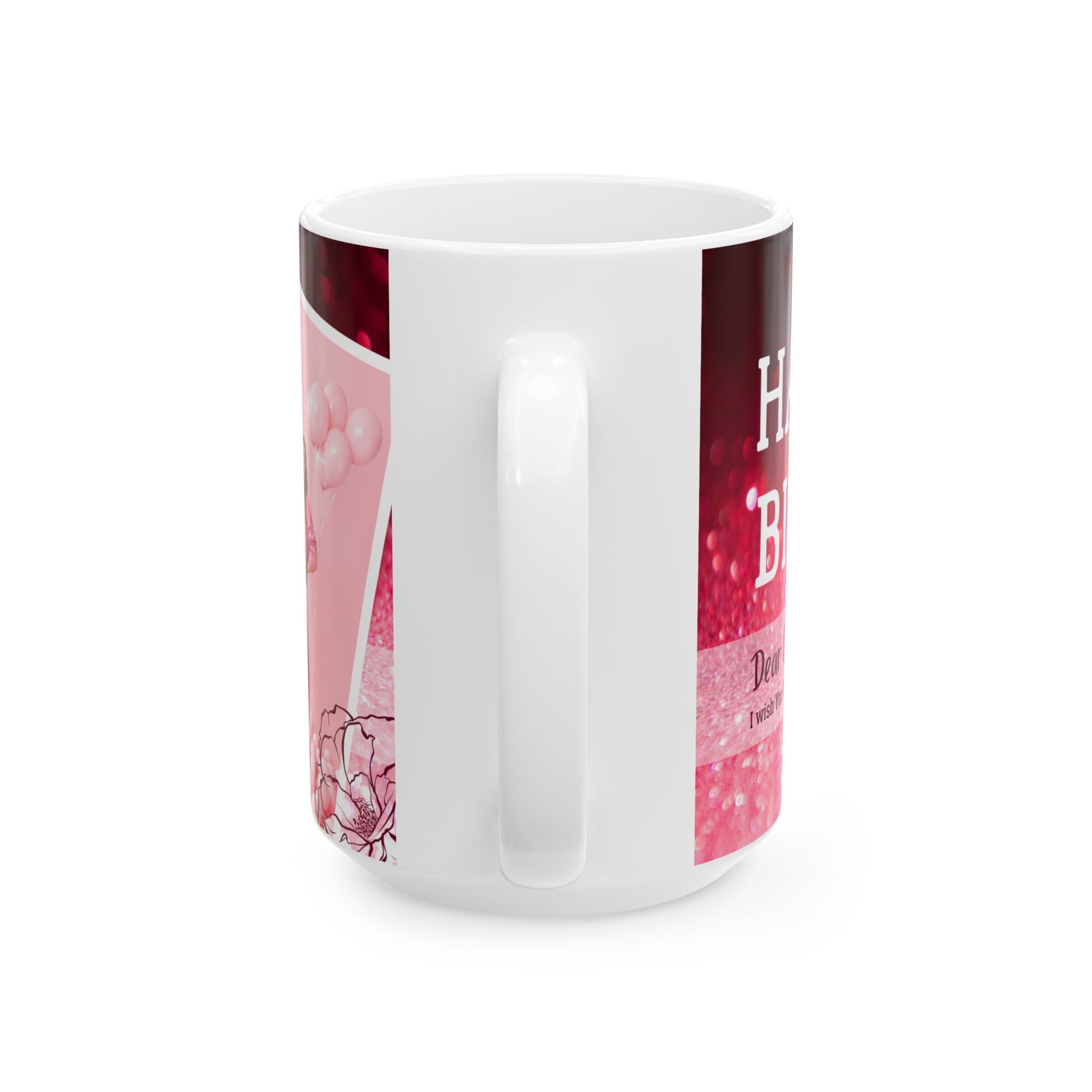 Happy Birthday Ceramic Mug | Personalized Gift for Friends | Celebration Cup | Best Friend Birthday Mug | Pink Sparkle Design - 13991