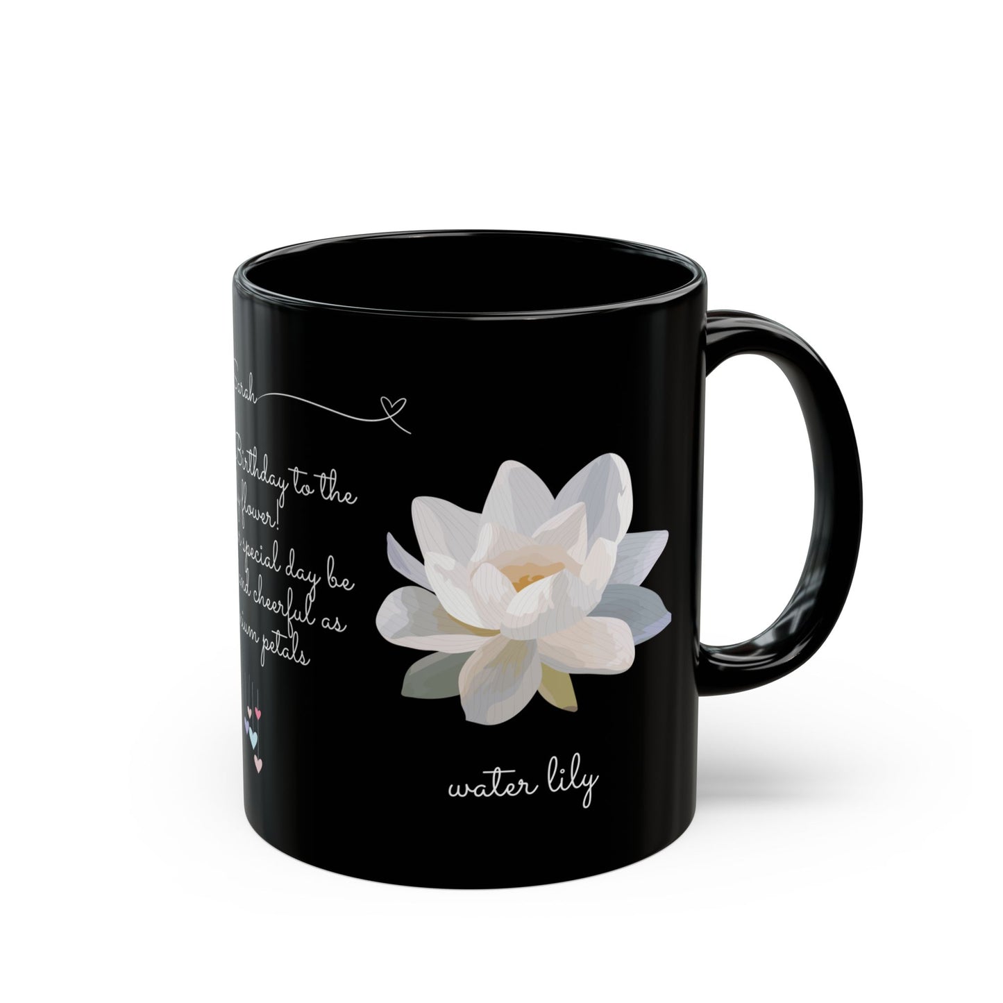 Happy Birthday Gift, July Birth Flowers, Customizable - Black Mug (11oz, 15oz) - 10154