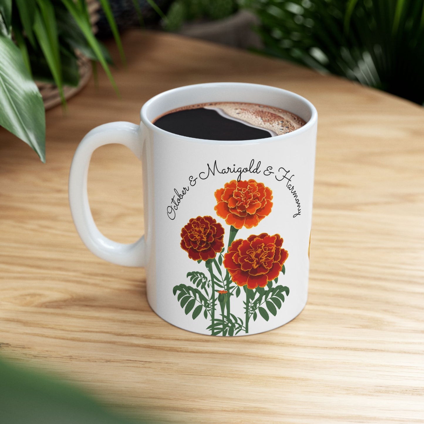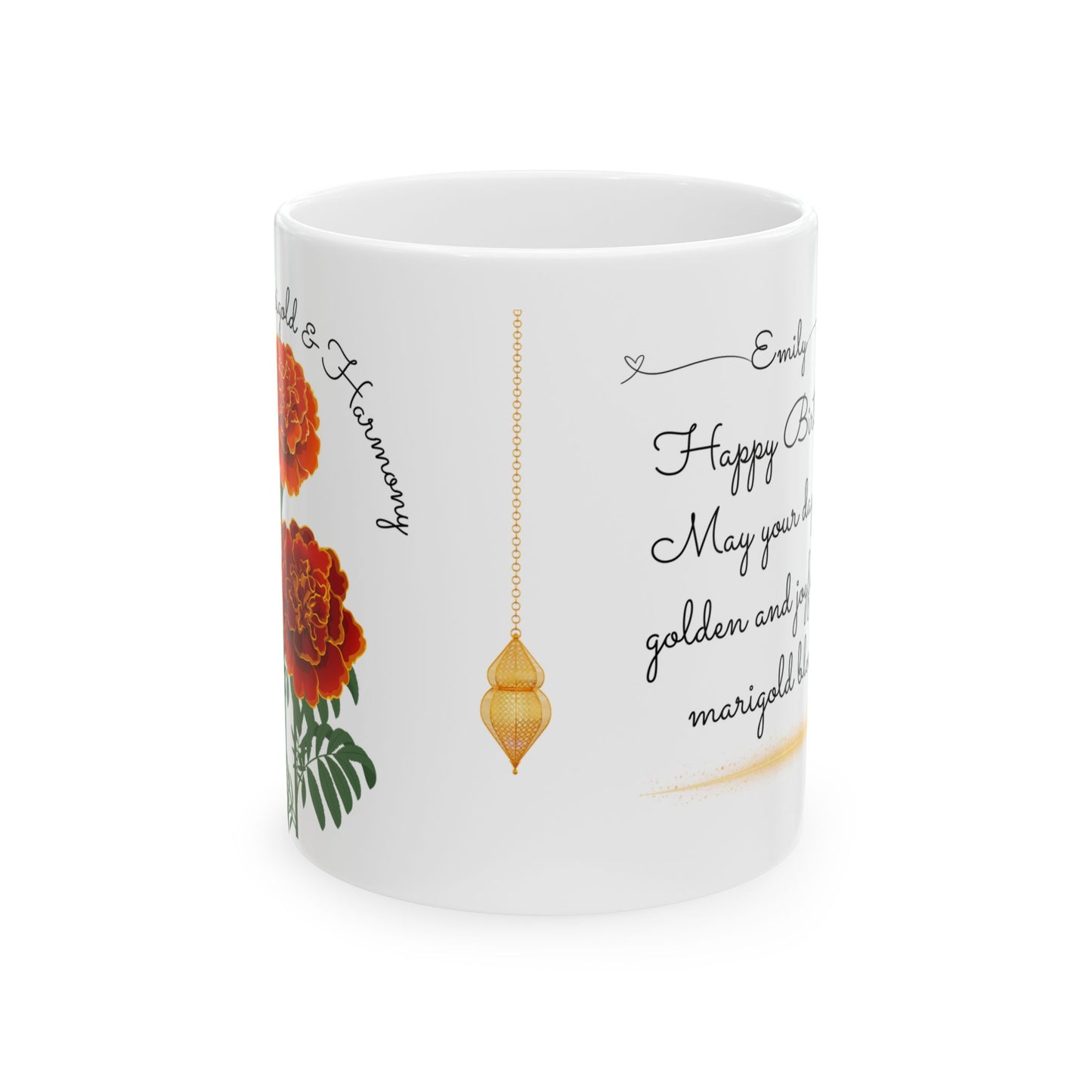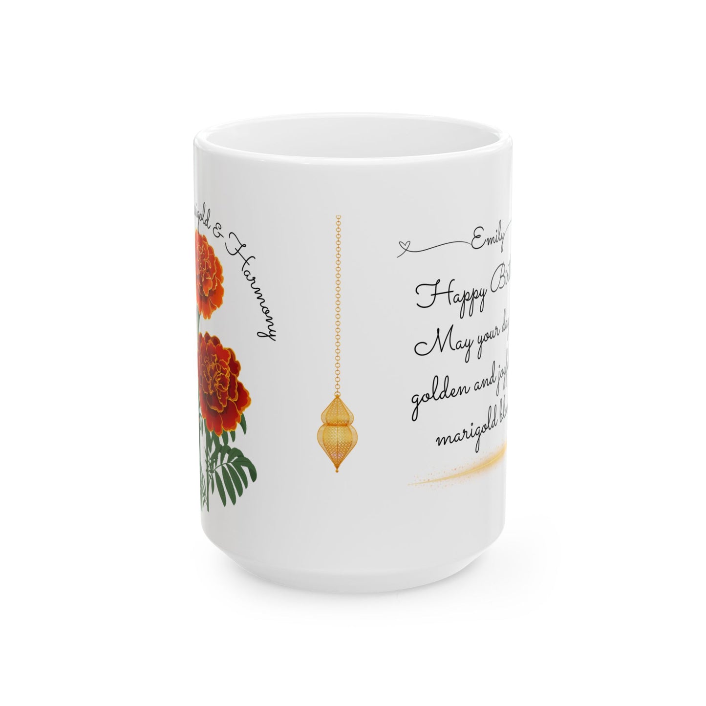 Celebrate an October birthday in the most thoughtful way with the Happy Birthday, October Birth Flower Customizable Ceramic Mug. Featuring the beautiful marigold and cosmos—symbols of passion, creativity, and harmony—this personalized mug makes a perfect gift for someone born in October.