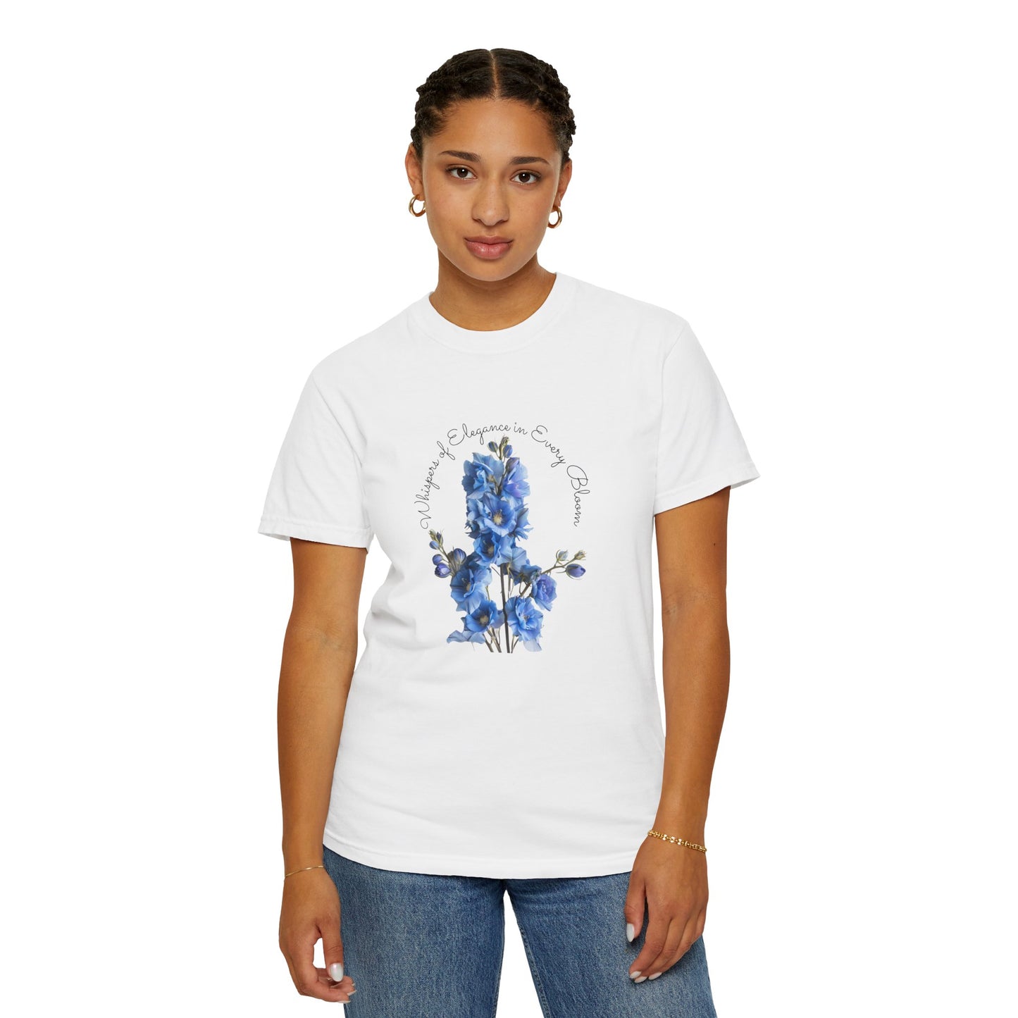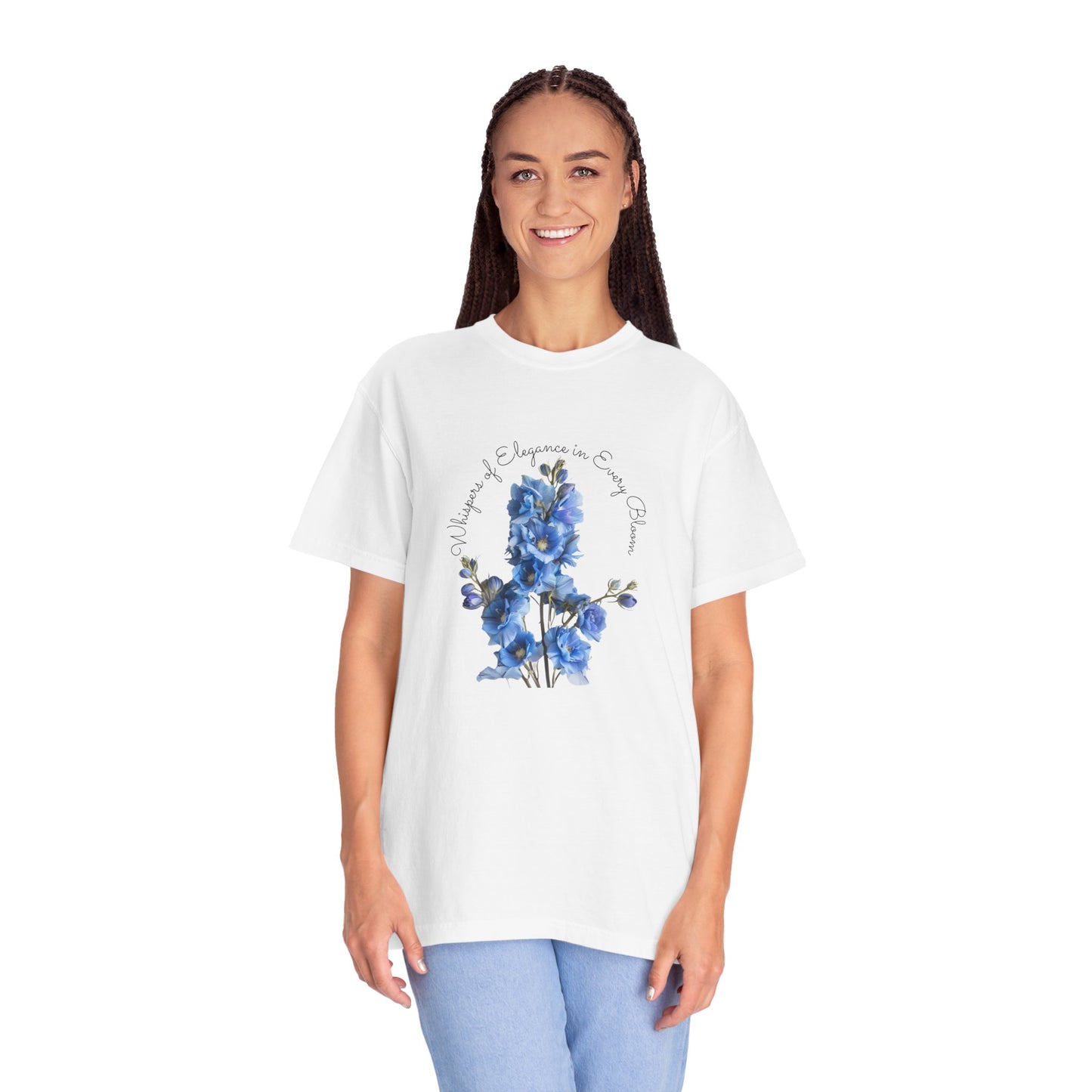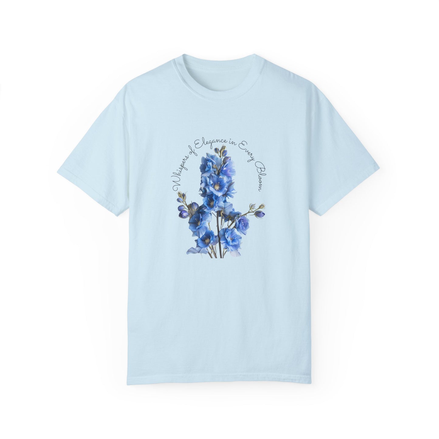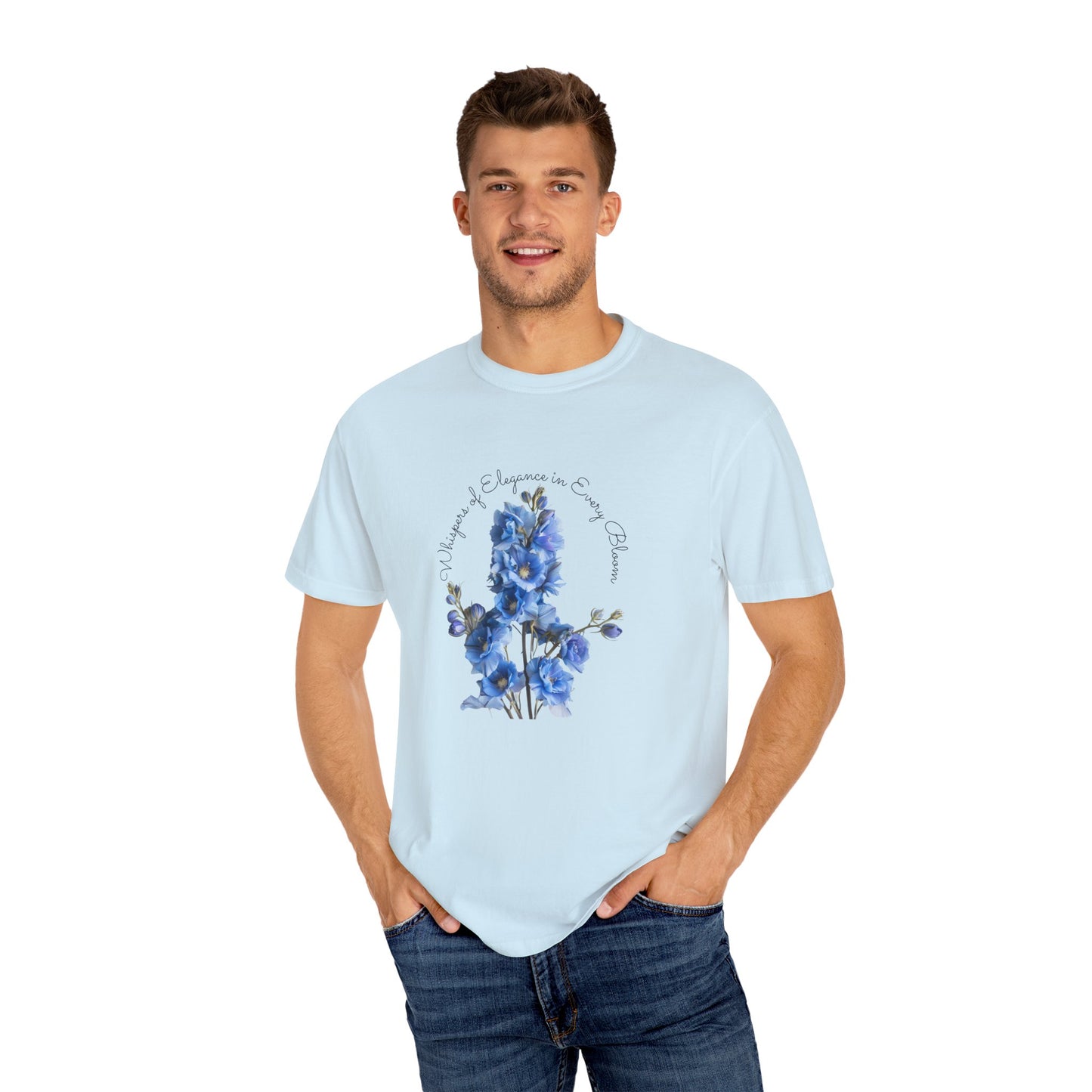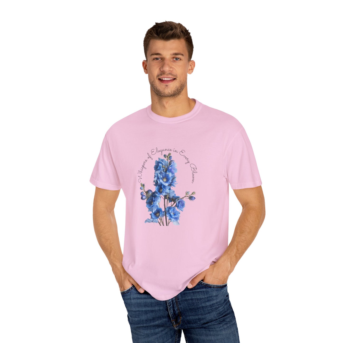 Celebrate the vibrancy of July birthdays with our exclusive "Happy Birthday, July, Delphinium" Unisex Garment-Dyed T-shirt, available only at Parcel of Pleasure Gift Store. This T-shirt is more than just a garment; it's a heartfelt homage to those born in July, featuring the elegant delphinium, their birth month flower.