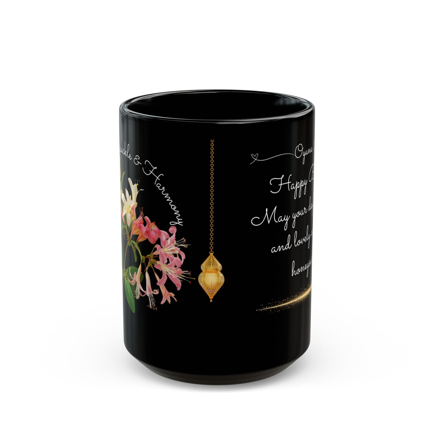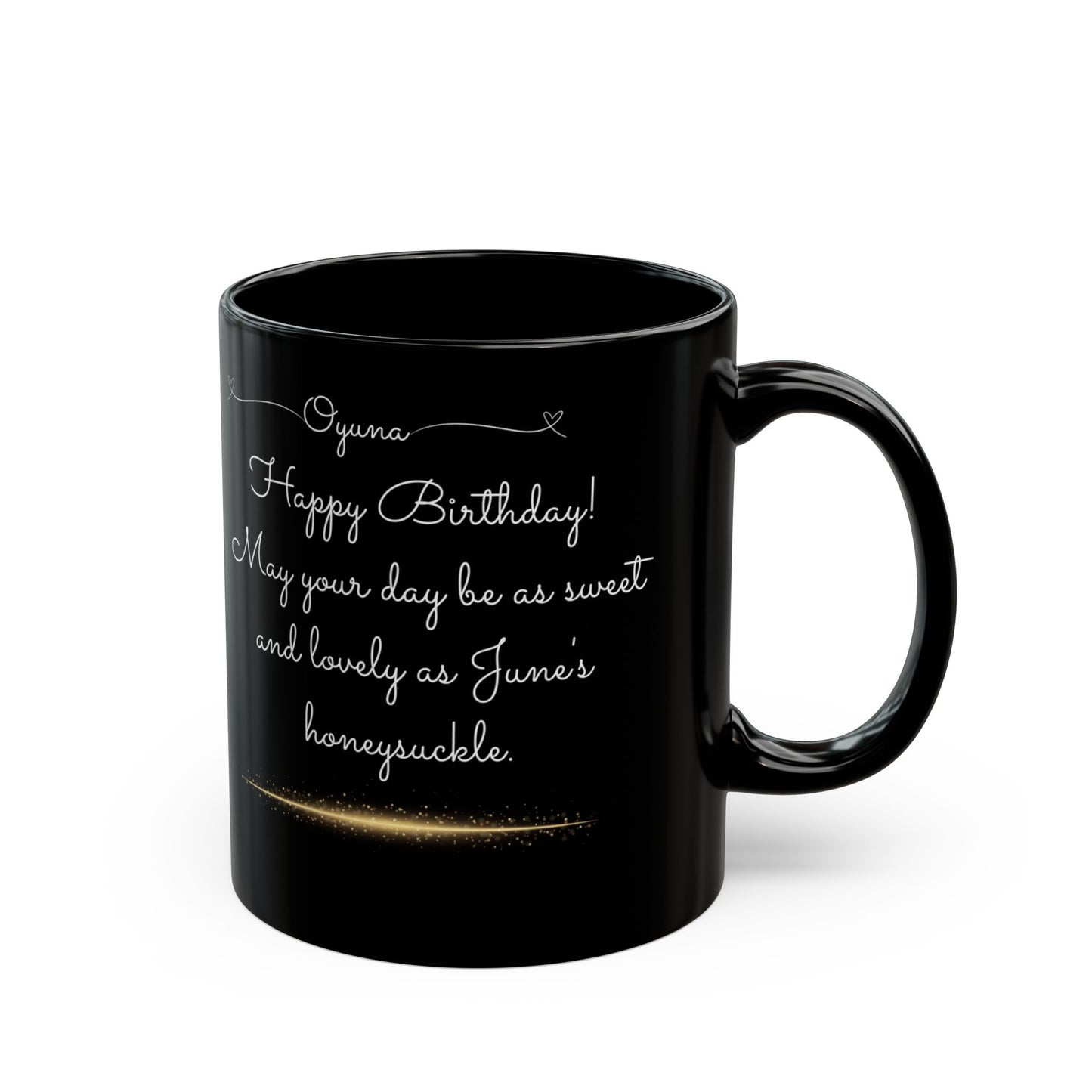 Happy Birthday, June, Honeysuckle, Customized Ceramic - Black Mug (11oz, 15oz) - 10433