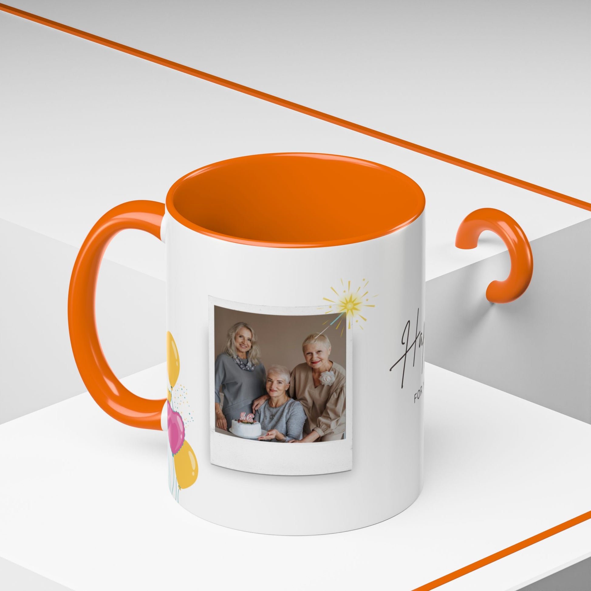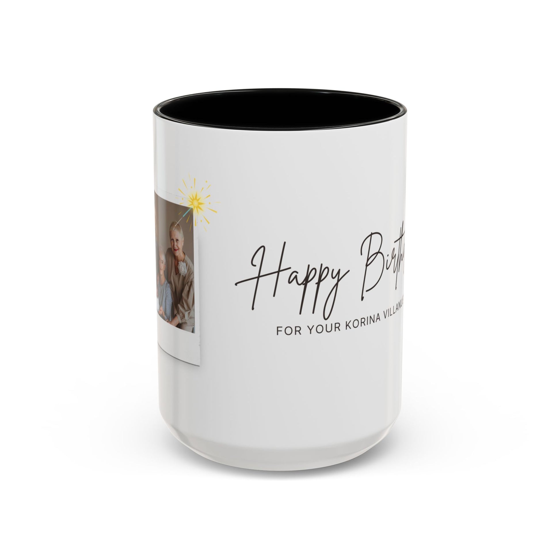 Happy Birthday Photo, Customizable - Accent Coffee Mug (11, 15oz) - 10883