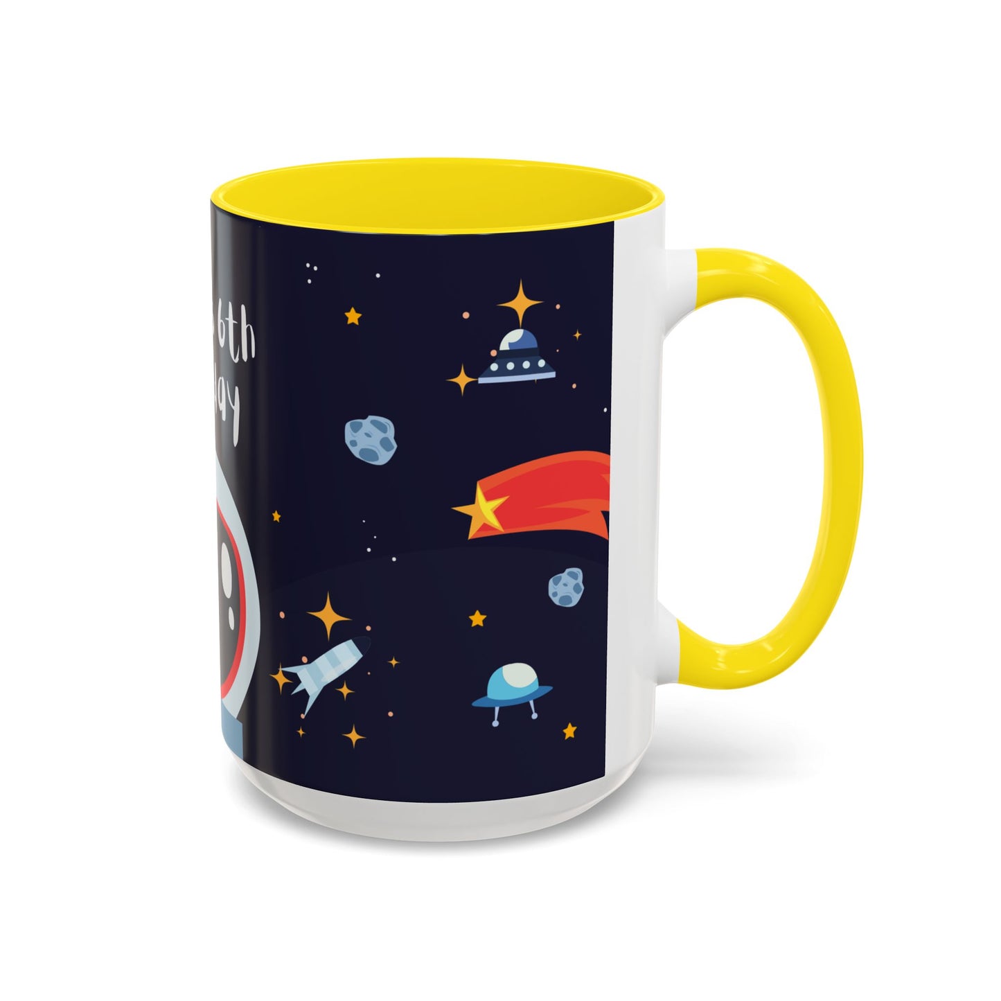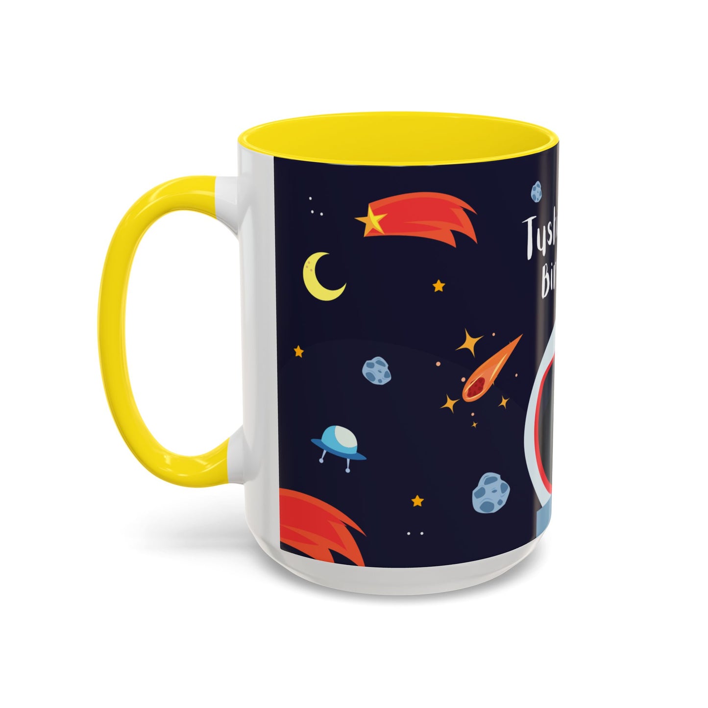 Blast off into an out-of-this-world birthday celebration with this "Happy Birthday, Space Explorer" accent coffee mug, designed especially for kids! Featuring a fun and vibrant space theme, this mug can be personalized with custom details like their name or special birthday message. Available in both 11oz and 15oz sizes, it’s perfect for little space enthusiasts who love to dream big and sip in style.