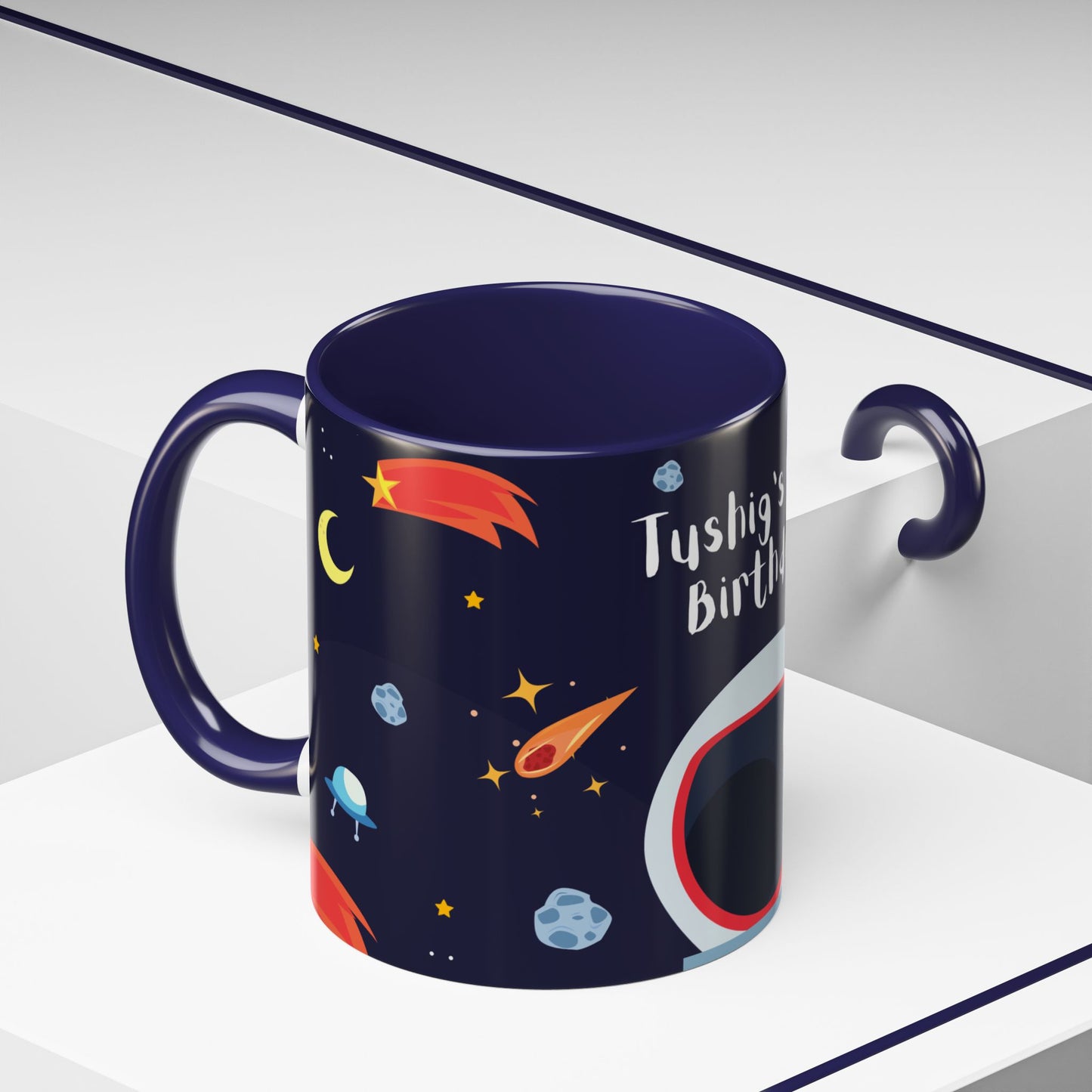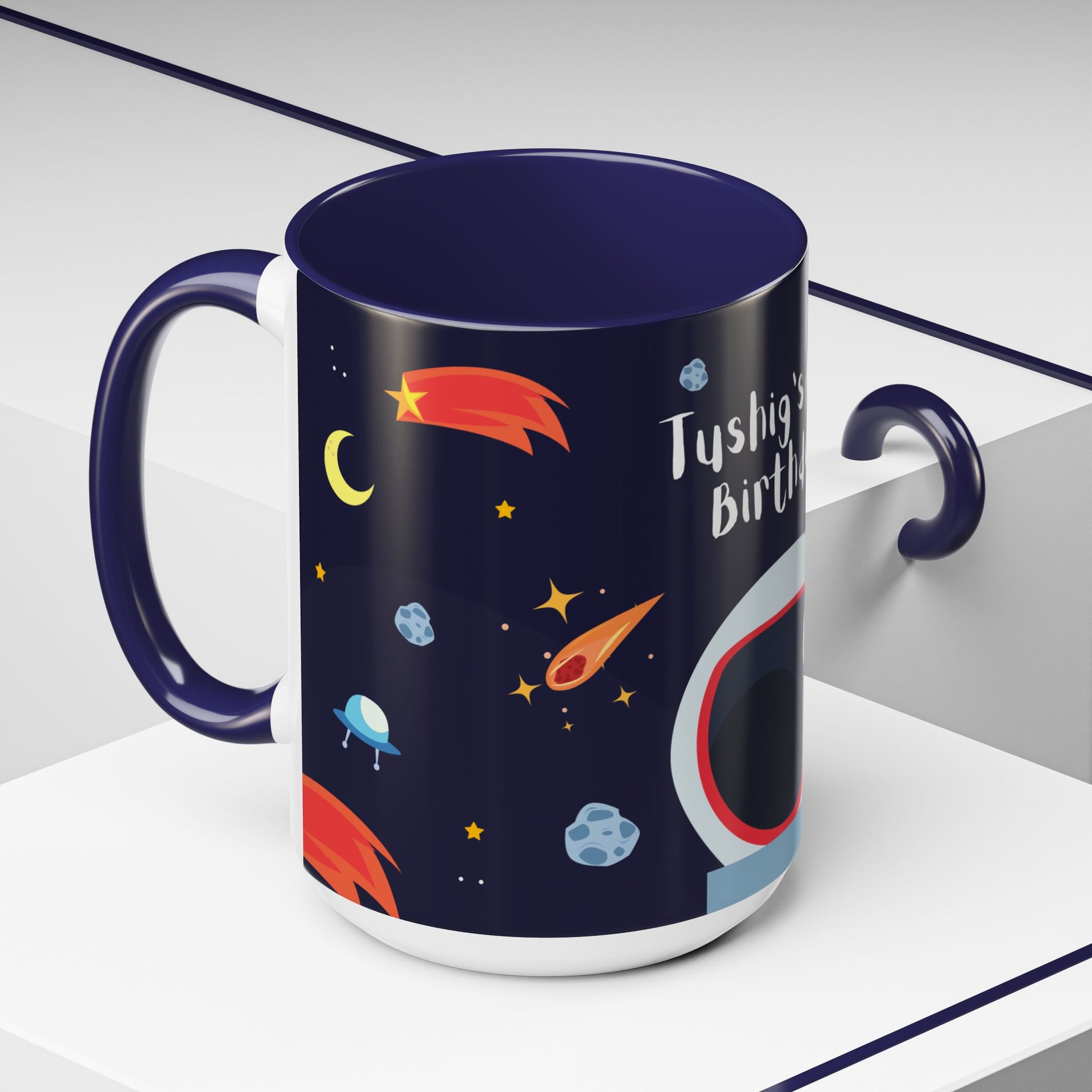 Happy Birthday, Space Explorer, Details Customizable - Accent Coffee Mug (11, 15oz) - 11239