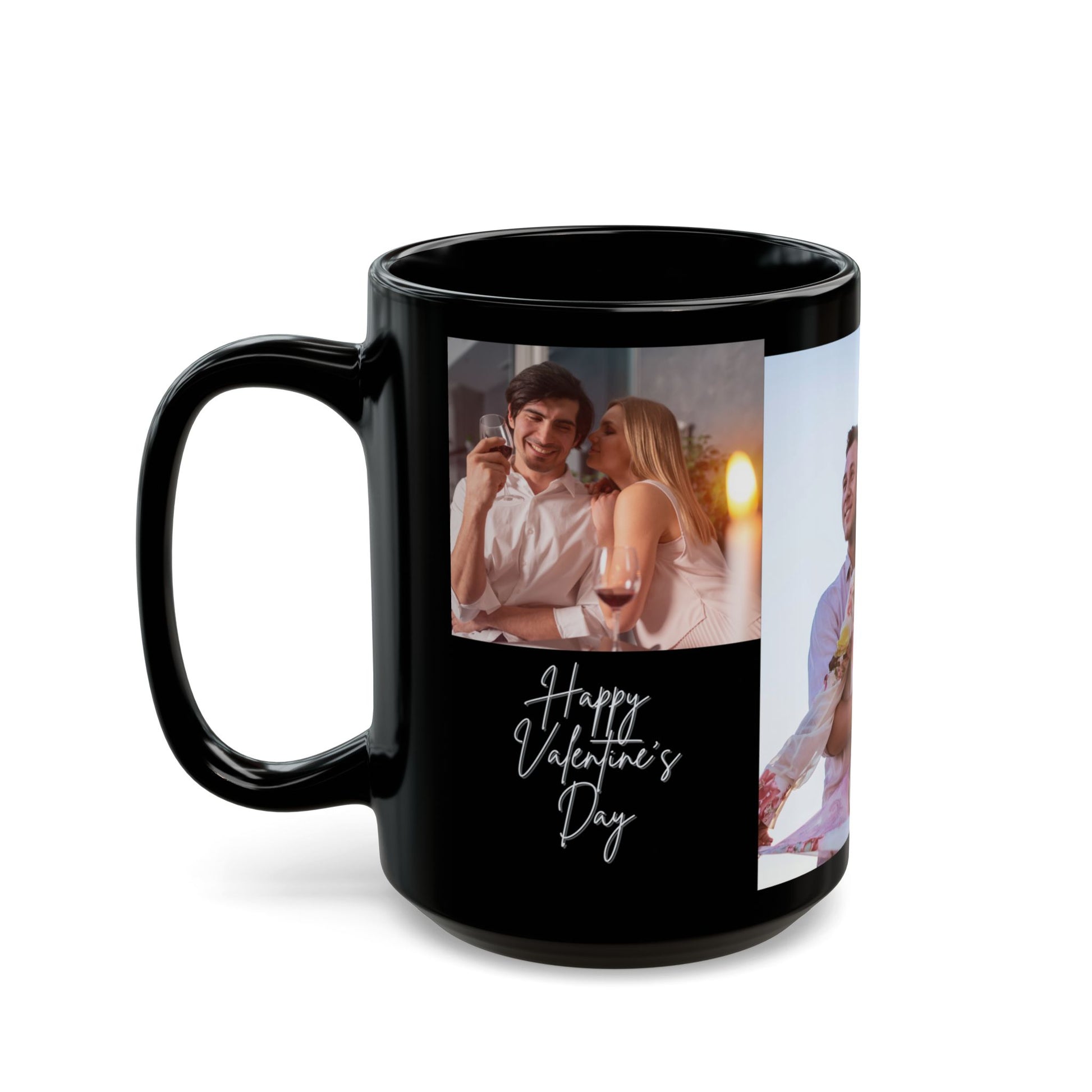 Happy Valentine's Day, Couple's Photos, Customizable - Black Mug (11oz, 15oz) - 11004