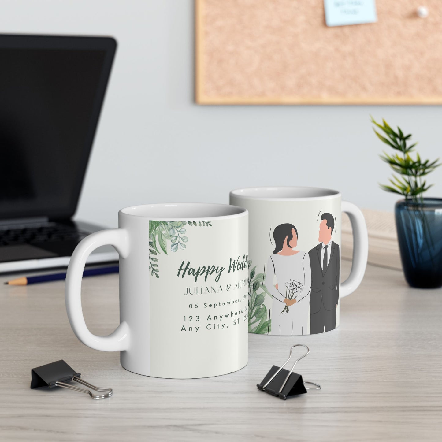 Happy Wedding, Details Customizable - Ceramic Mug, (11oz, 15oz) - 11139