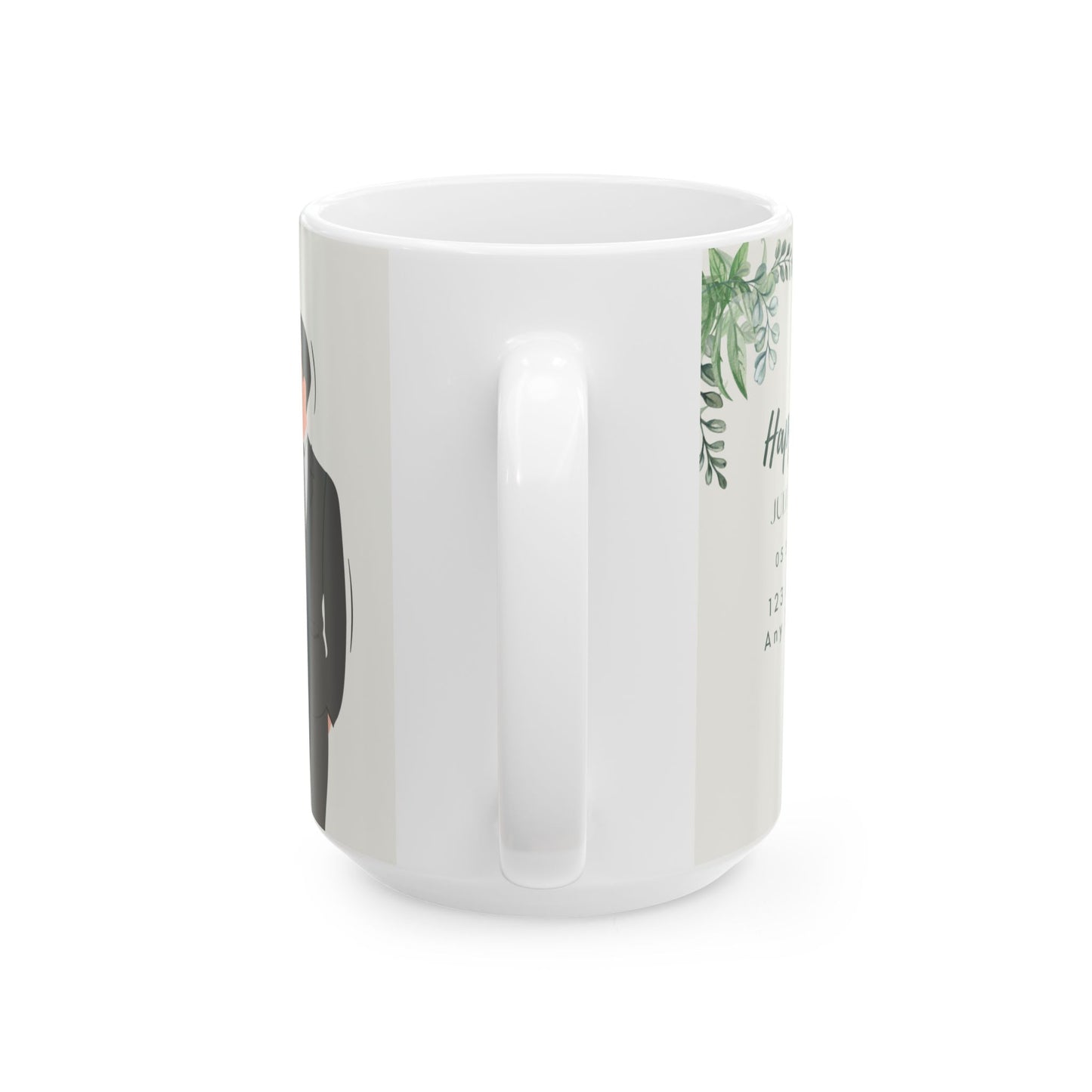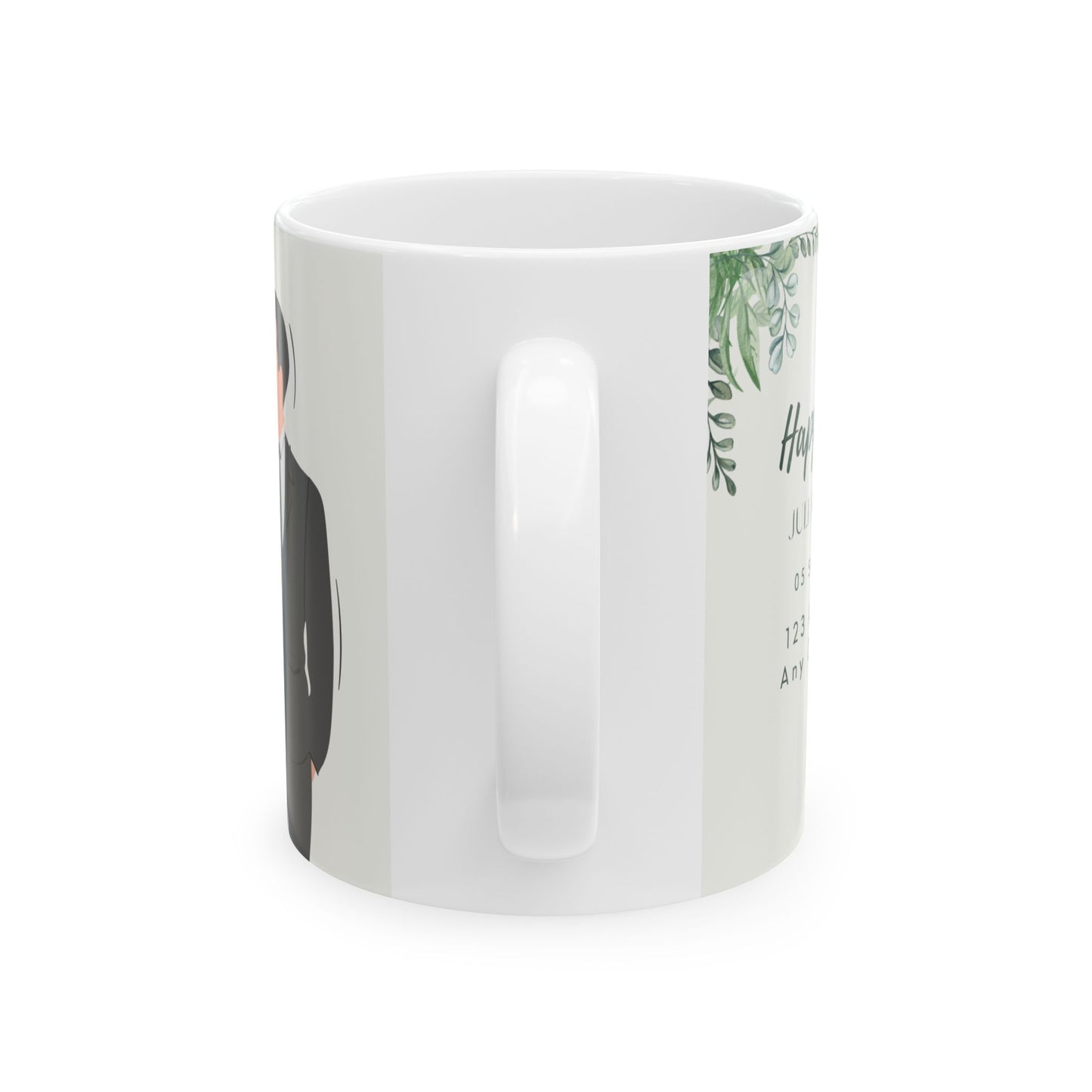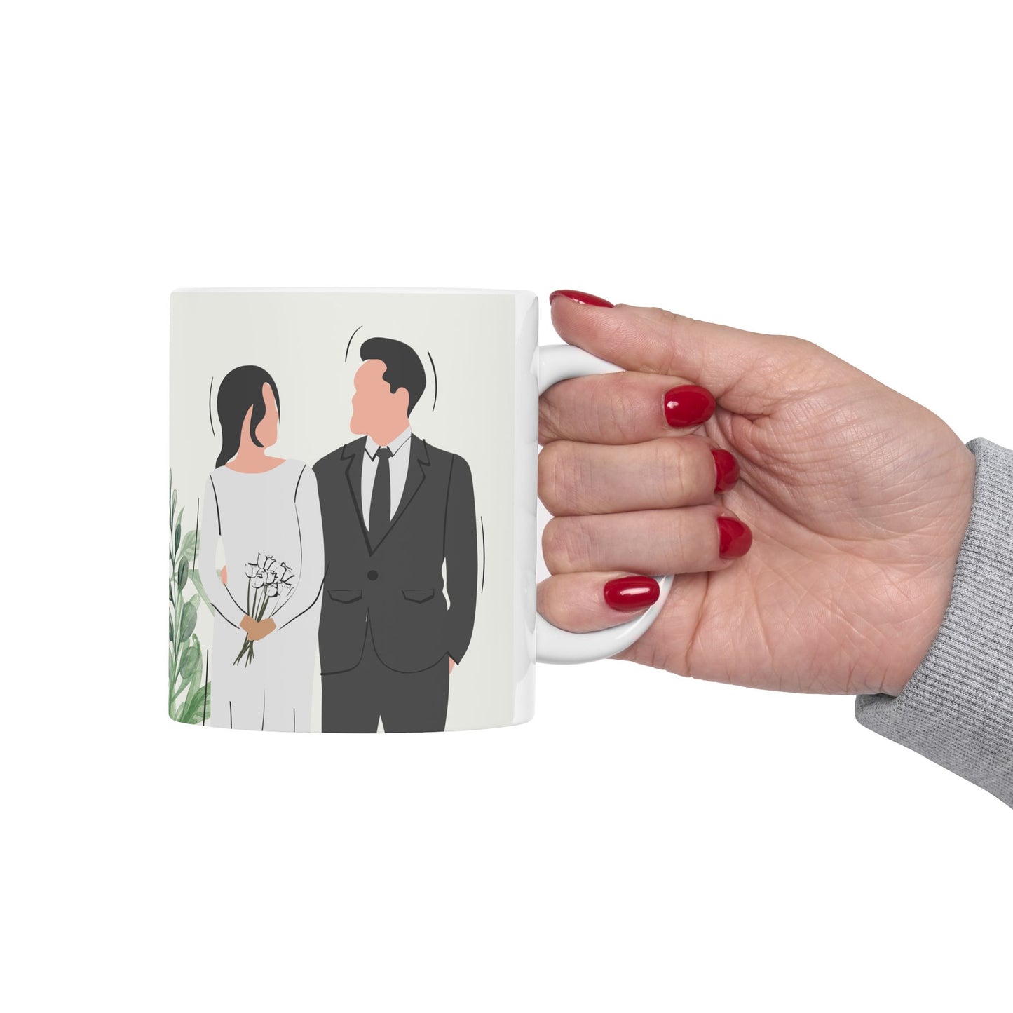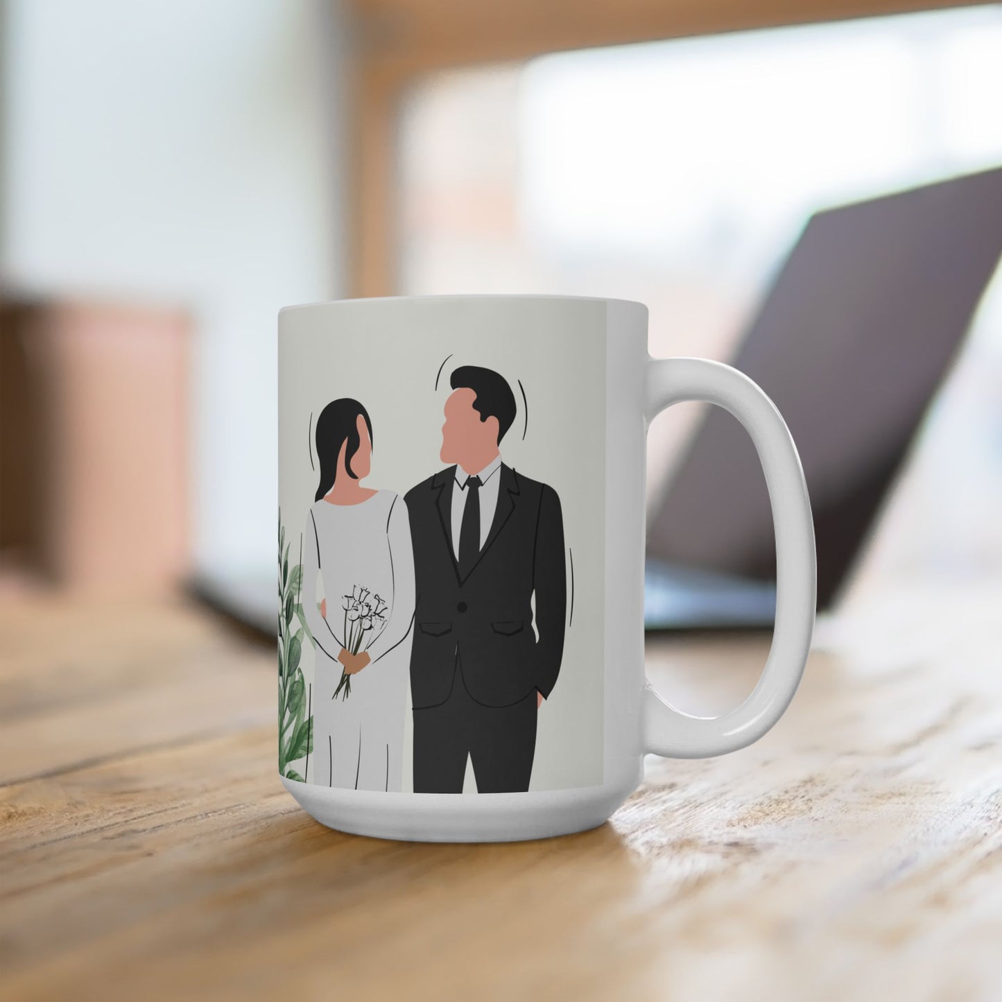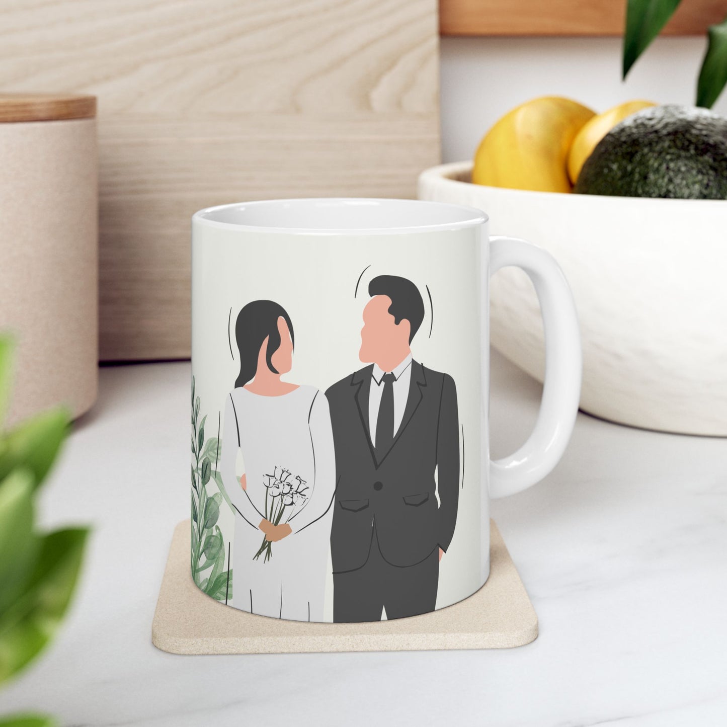 Celebrate a beautiful union with this customizable "Happy Wedding" ceramic mug. Whether you’re gifting it to a newlywed couple or marking your own wedding day, this mug offers the perfect personal touch with customizable details. Available in both 11oz and 15oz sizes, it’s ideal for sipping your favorite beverages while reminiscing about the joyous occasion. The elegant design, featuring a contrasting color handle and interior, adds a sophisticated charm to any home. Crafted from durable ceramic, this mug will serve as a cherished keepsake, keeping the wedding memories alive for years to come.
