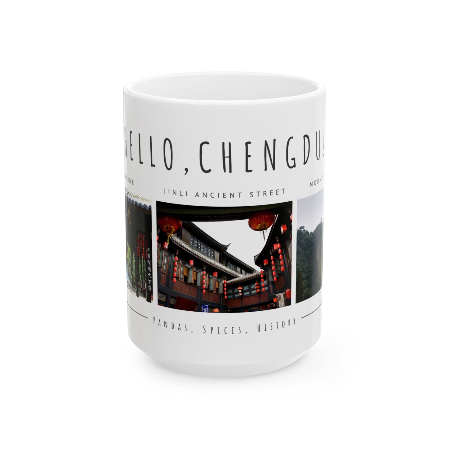Hello Chengdu! Ceramic Mug - Explore Pandas, Spices & Culture - 11oz & 15oz Options - 12173