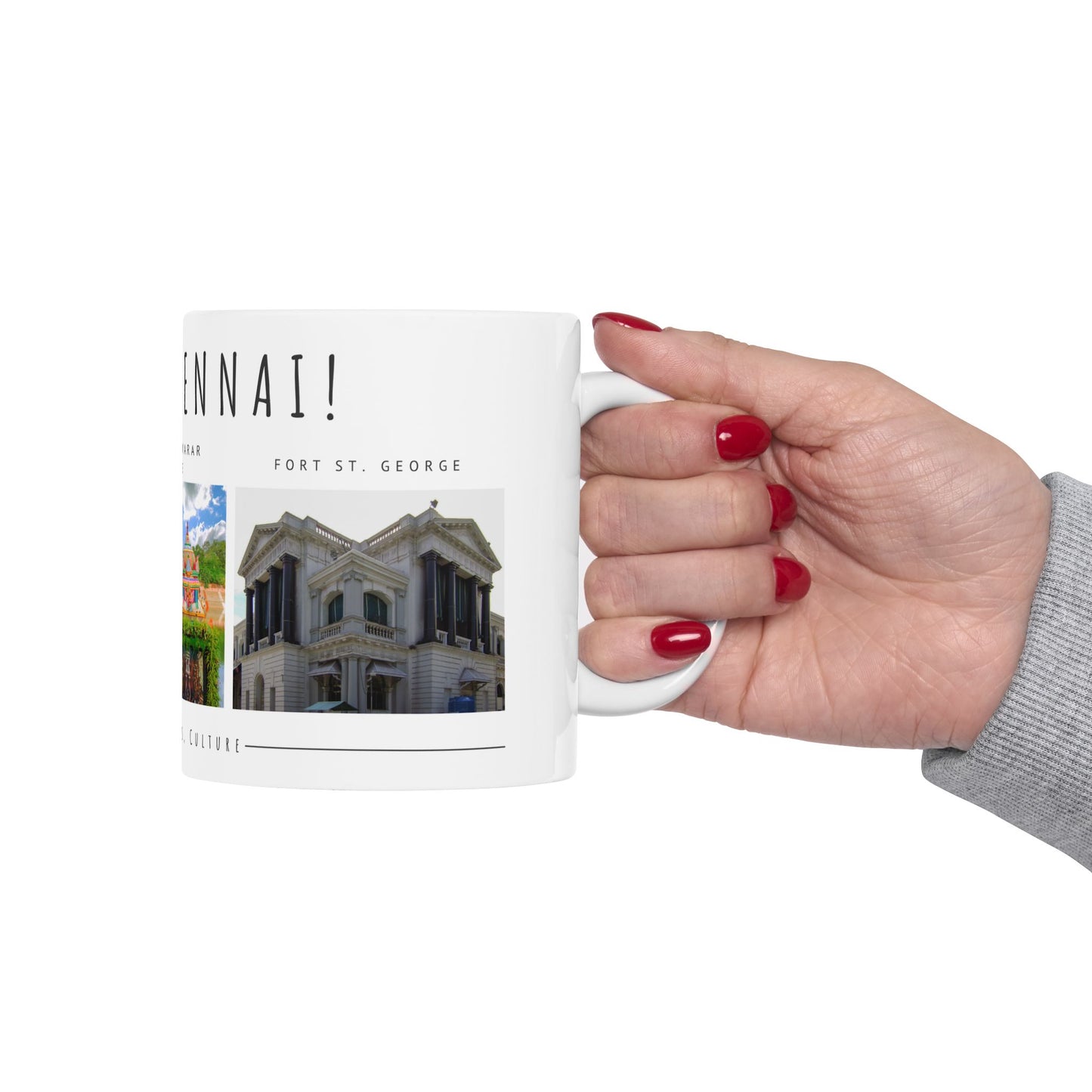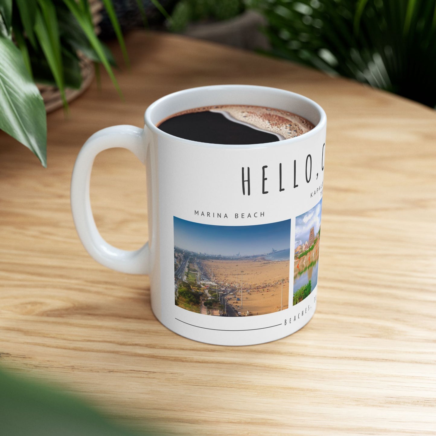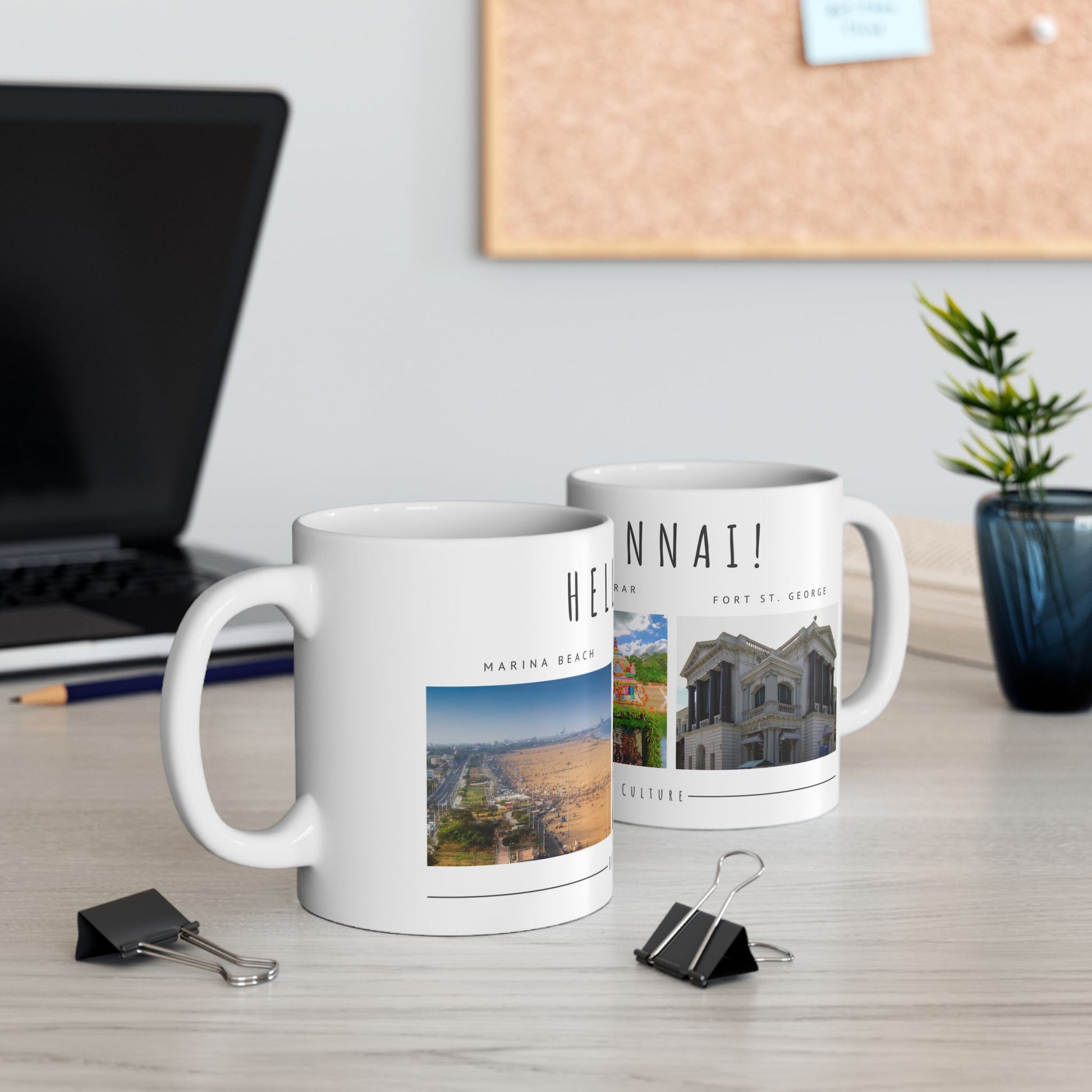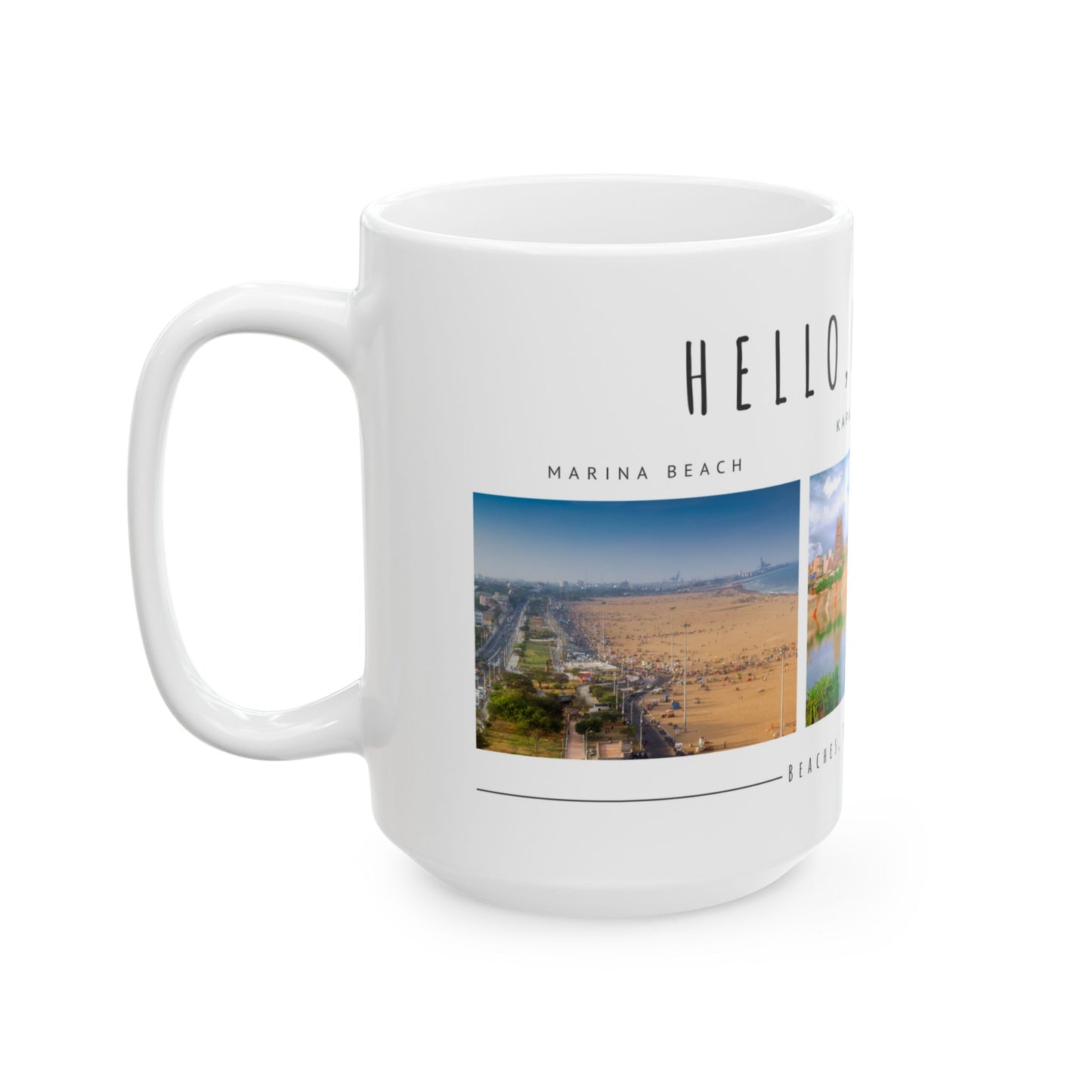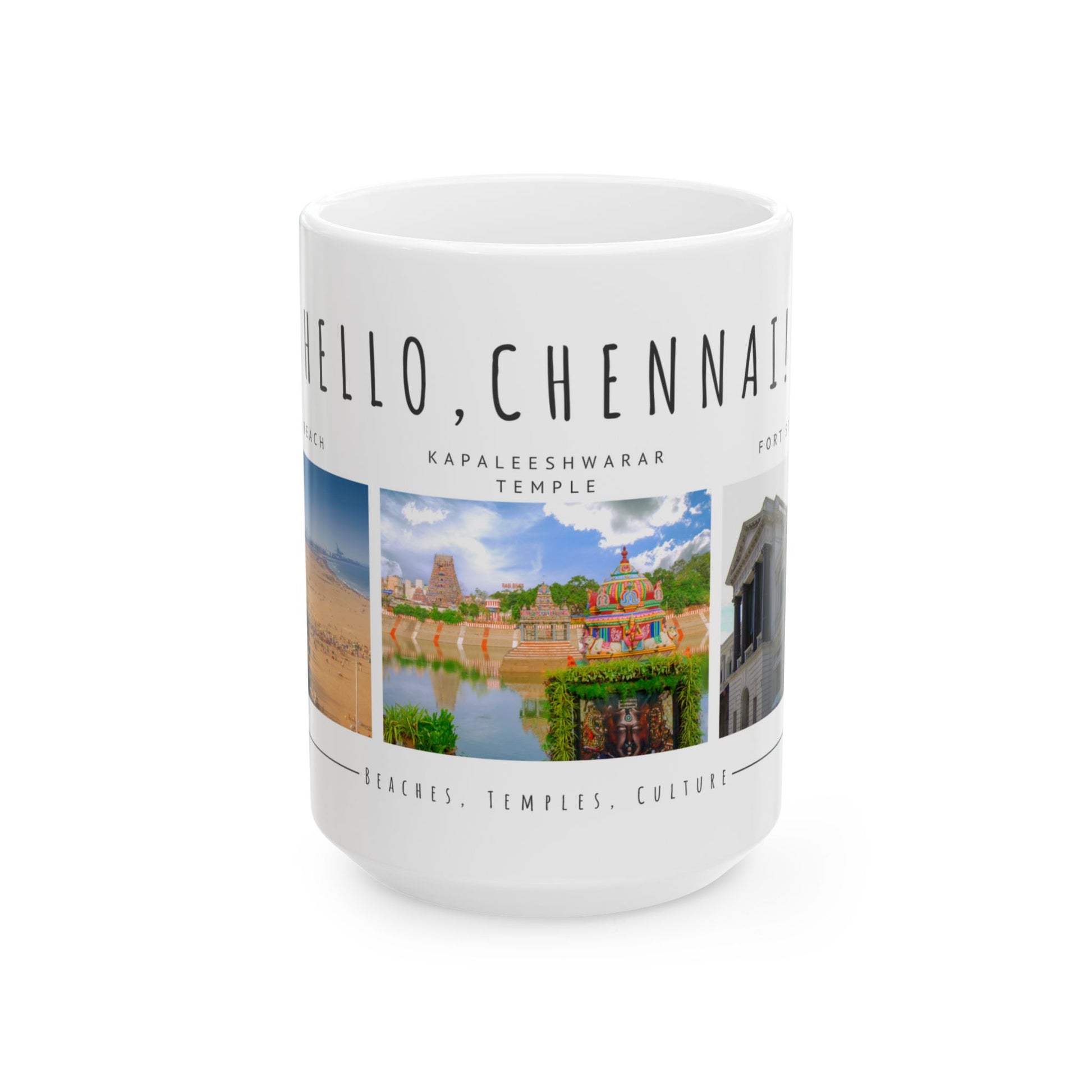 Hello Chennai Ceramic Mug - Unique 11oz & 15oz Designs Featuring Temples and Beaches - 12165