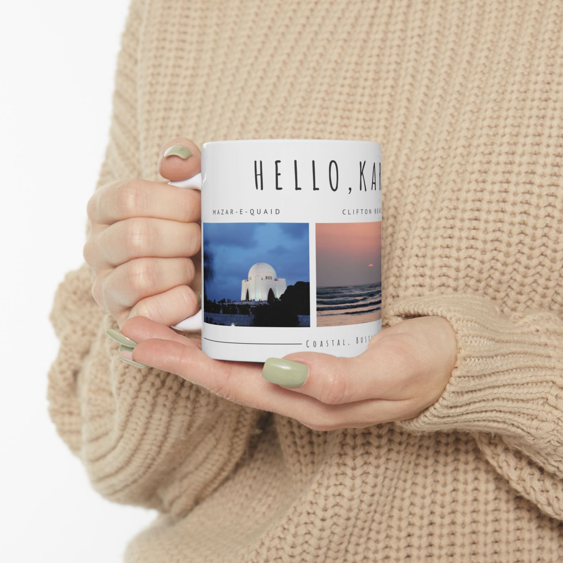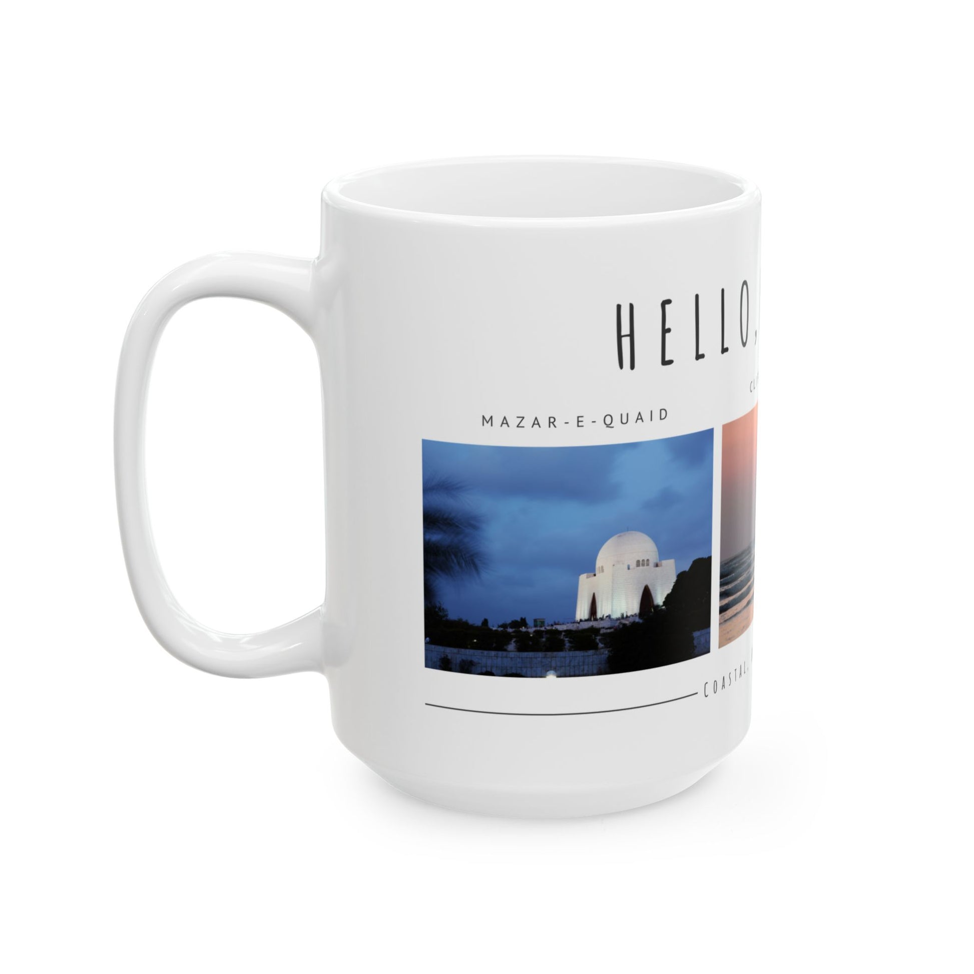 Hello Karachi Ceramic Mug - Coastal Beach Views, Perfect Gift for Travelers - 12214