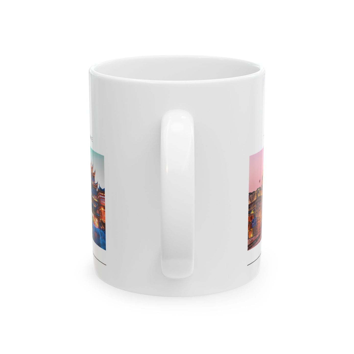Savor your favorite beverages in style with the Hello Shanghai Ceramic Mug, available in both 11oz and 15oz sizes. This mug features a stunning, detailed cityscape design that captures the vibrant spirit of Shanghai, showcasing its iconic skyline, bustling streets, and modern architecture. Whether you're sipping your morning coffee, enjoying tea, or indulging in a cozy hot chocolate, this mug will transport you to the heart of one of the world’s most dynamic cities.