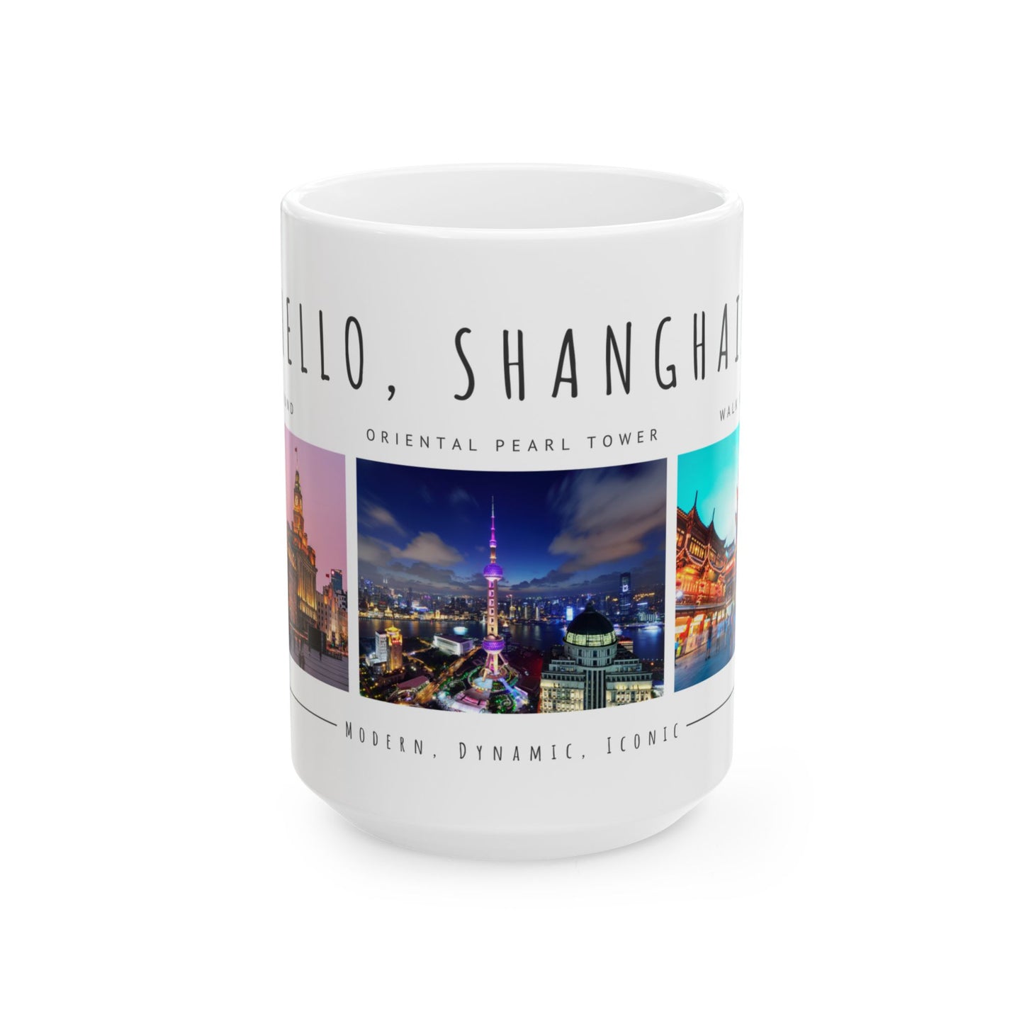 Hello Shanghai Ceramic Mug - 11oz & 15oz | Iconic Cityscape Design - 12014