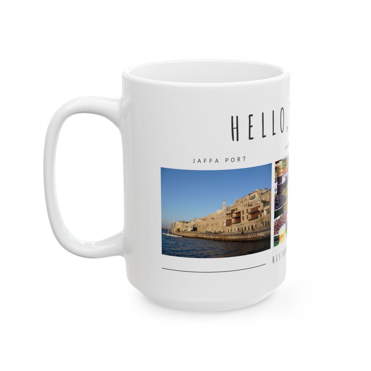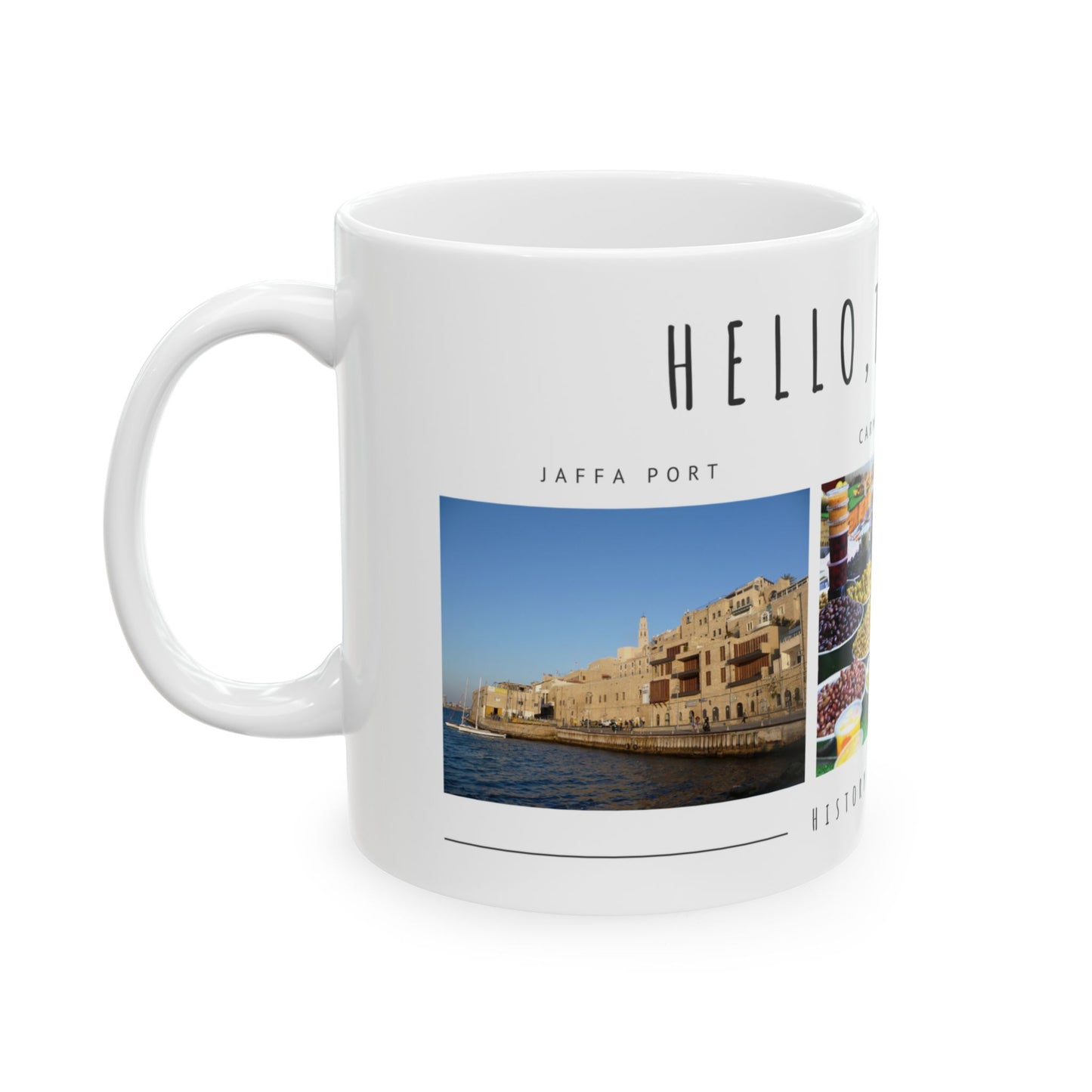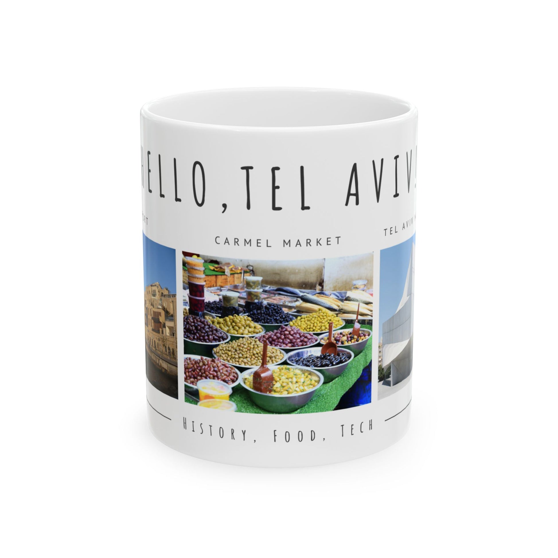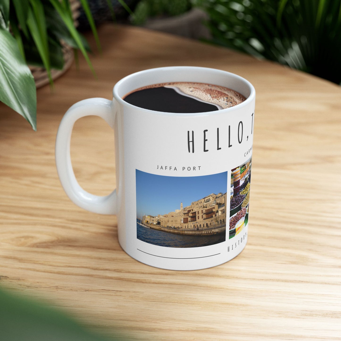 Hello Tel Aviv Ceramic Mug - Unique Travel Souvenir (11oz, 15oz) - Perfect Gift for Foodies & Travelers - 12232